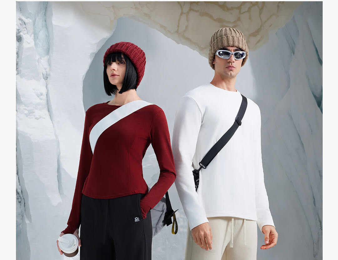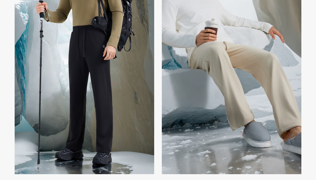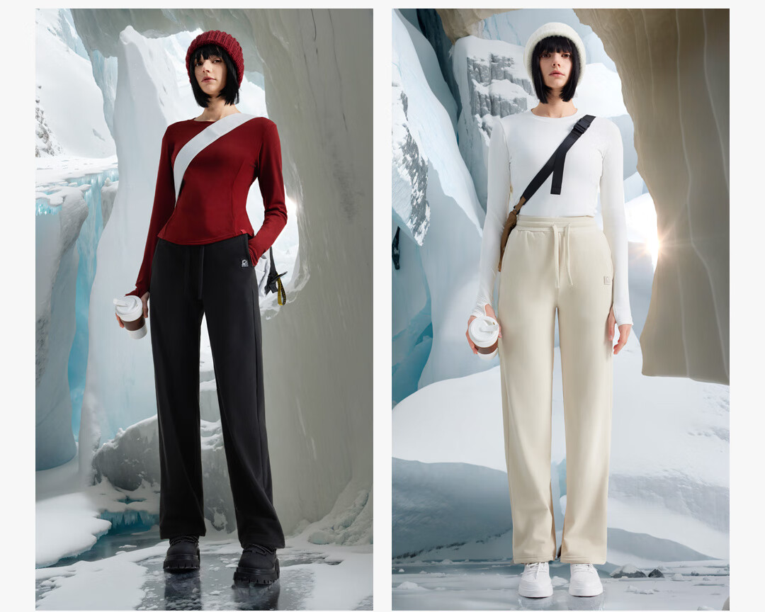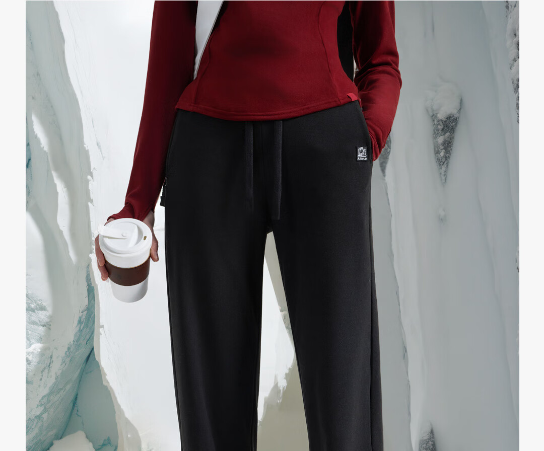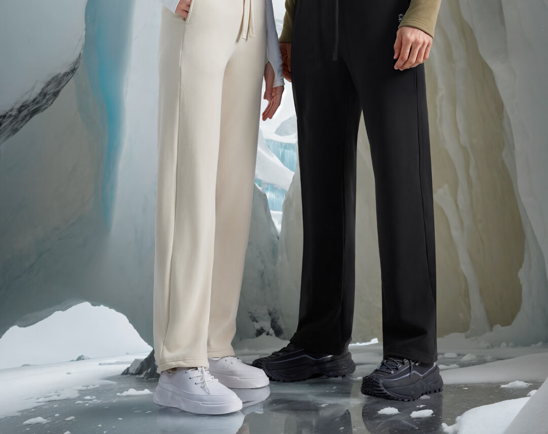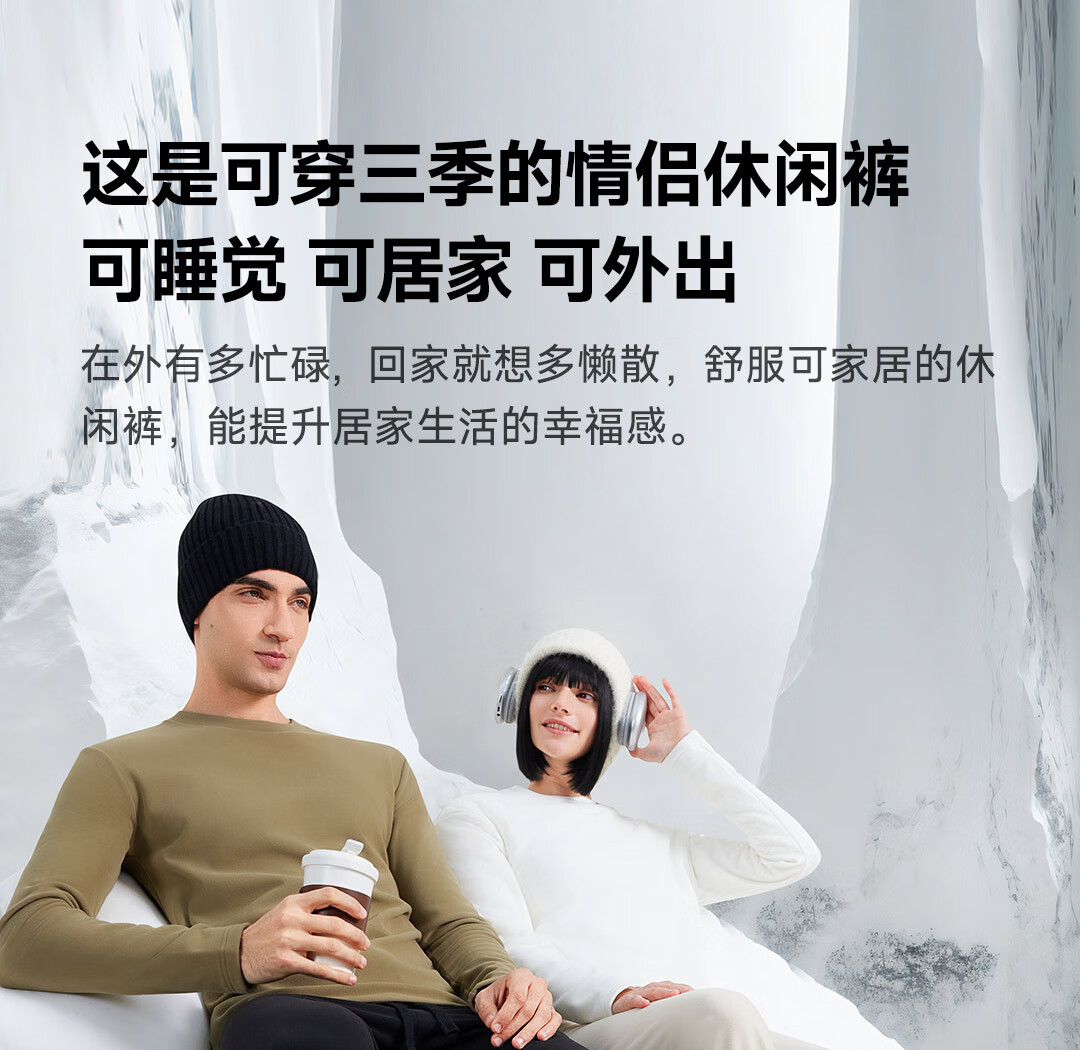 素湃云感热力绒宽松卫裤高弹秋冬保暖休闲裤男女长裤子 奶杏米 M