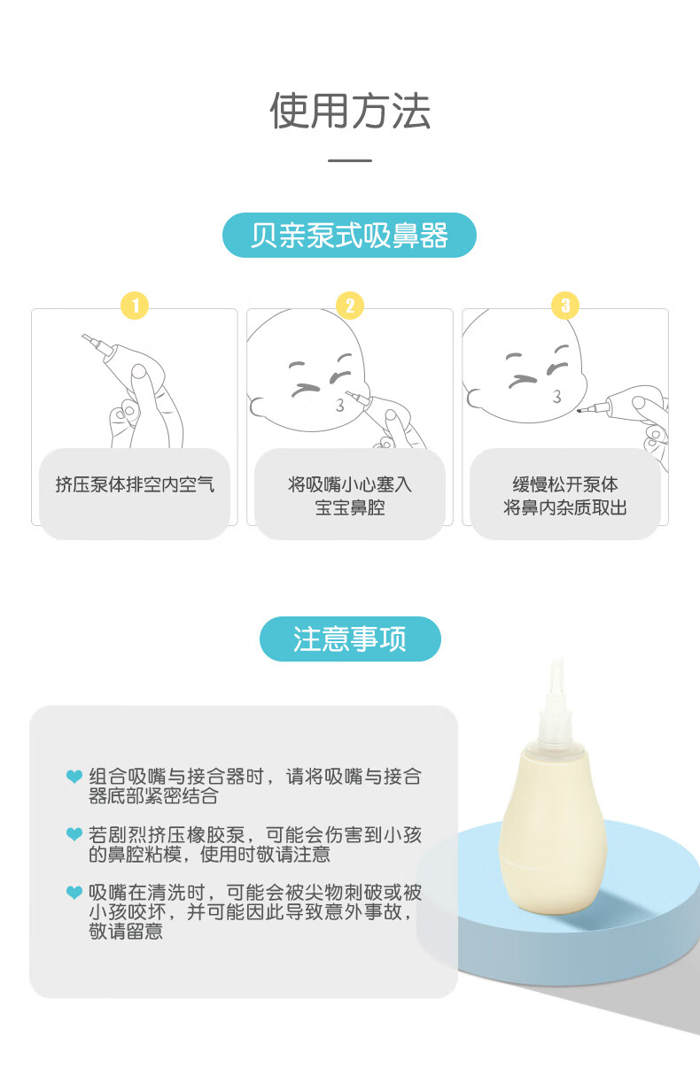 贝亲(Pigeon) 婴儿吸鼻器 婴儿泵式吸鼻器 鼻腔清洁器 10867