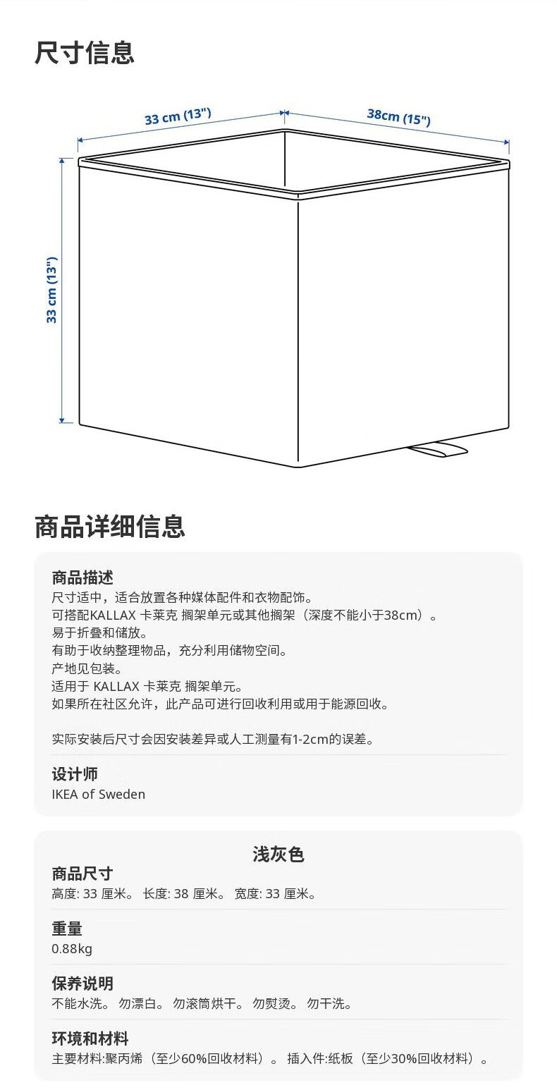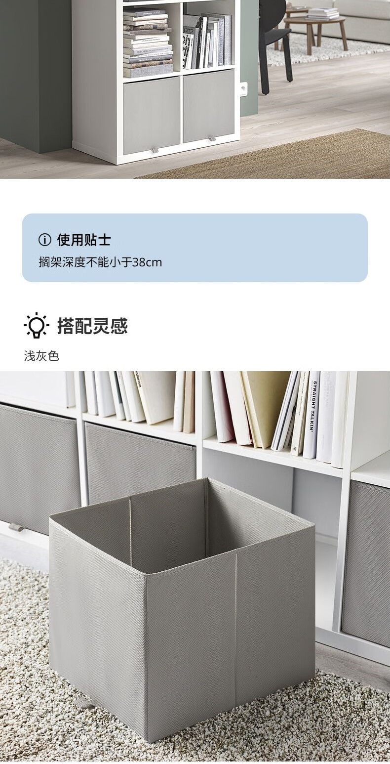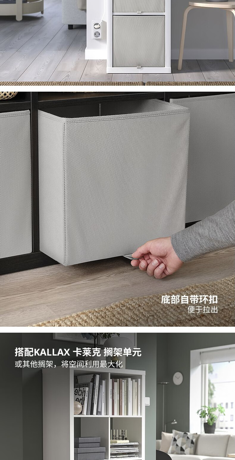 宜家(IKEA)KOSINGEN考辛根可折叠储物盒收纳箱家用衣柜秋服收纳盒 淡灰色33x38x33cm