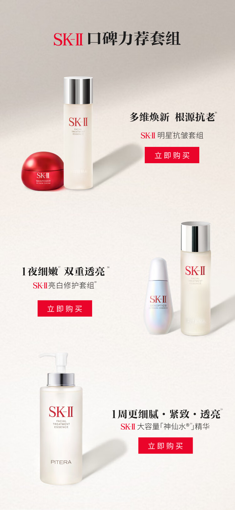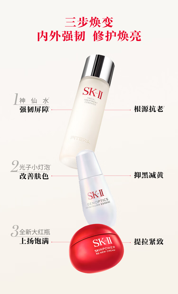 SK-II神仙水230ml+面霜50g+光子小灯泡30ml护肤品套装sk2化妆品skii