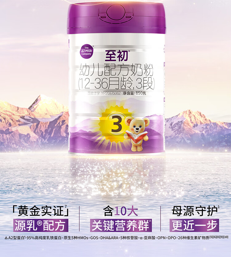 a2至初 幼儿配方奶粉3段12-36月龄适用 850g/罐 新西兰进口 6罐 【有效期至26年10月】