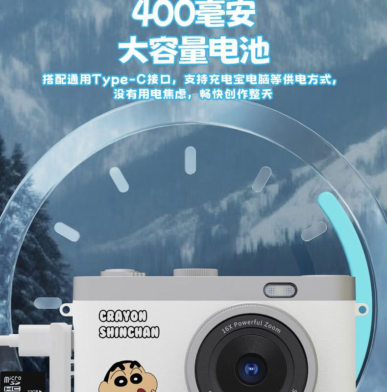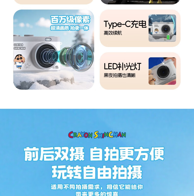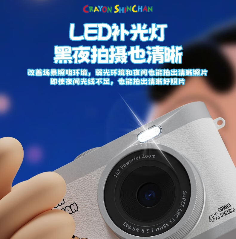 黑猫日记蜡笔小新LB17联名数码相机ccd学生复古校园小相机vlog入门拍摄可爱儿童卡片机随身拍立得礼物白64G