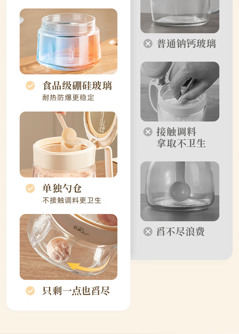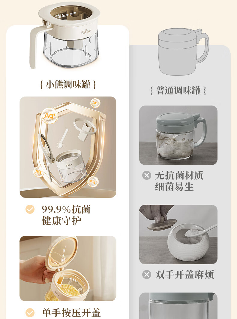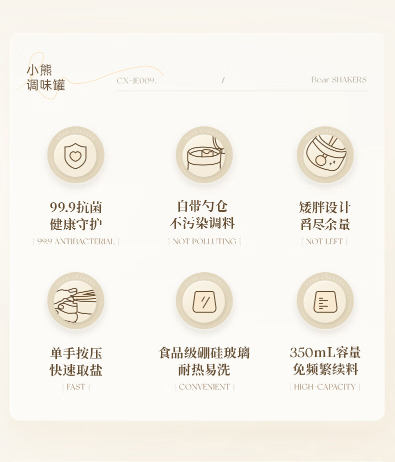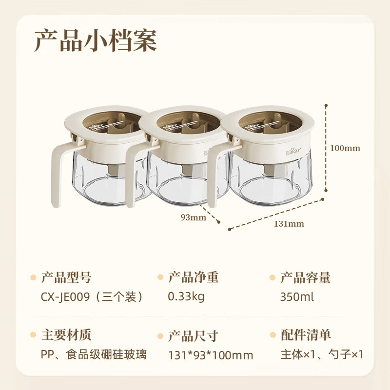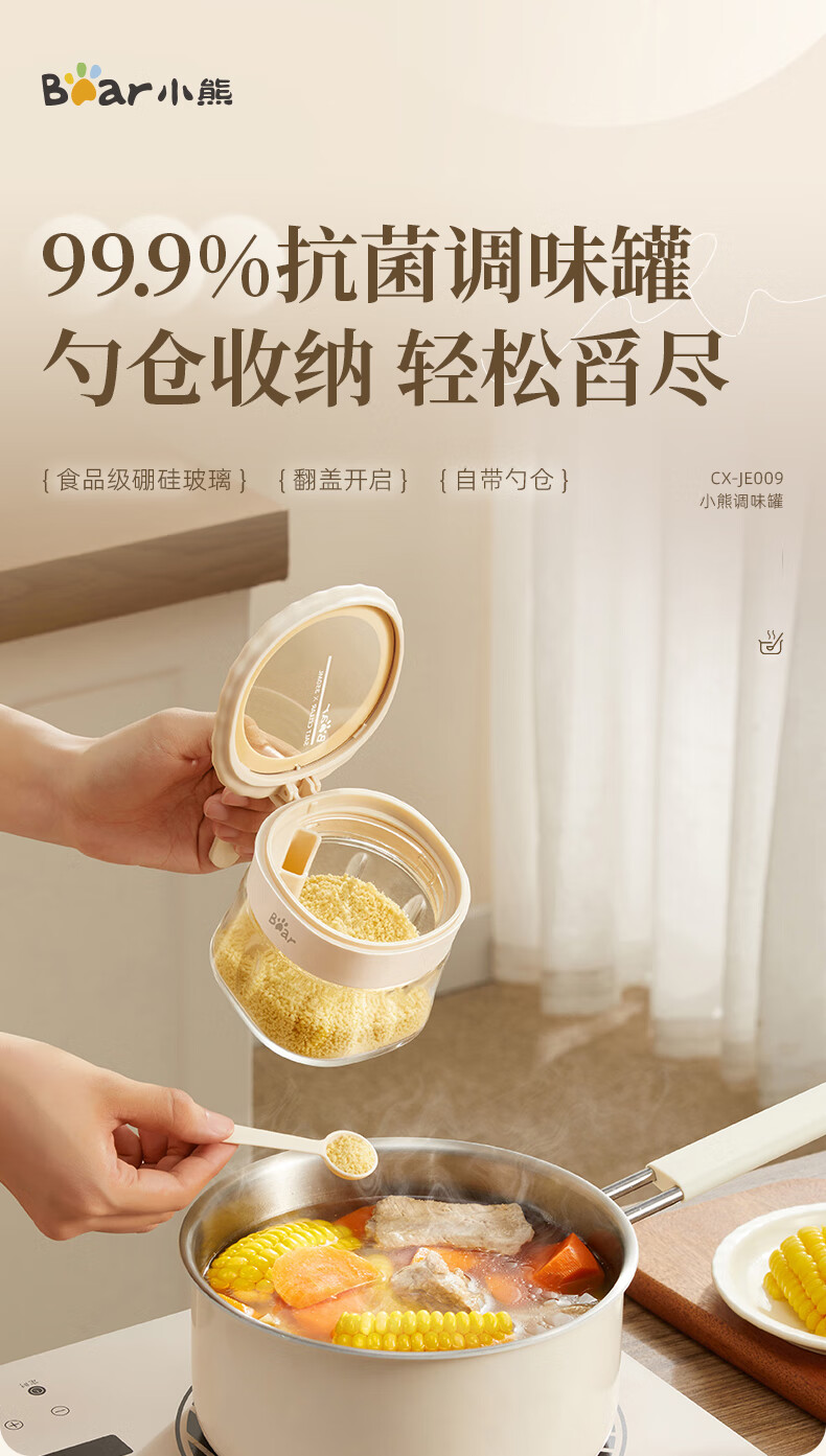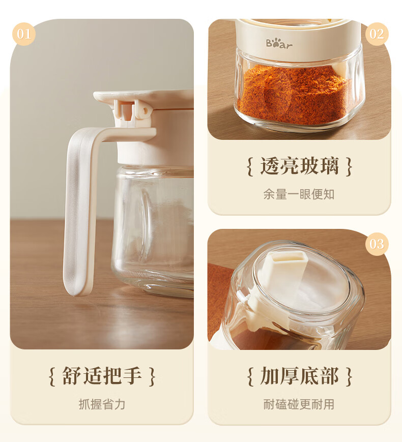 小熊(Bear)调味罐 调料瓶调味瓶厨房盐罐味精调料盒 组合3只装 CX-JE009-02