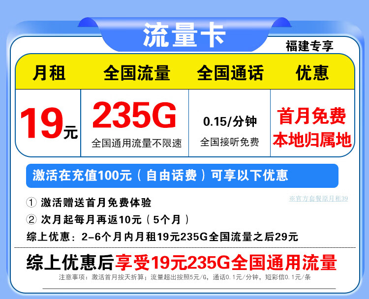 中国移动移动流量卡5G全国不限速手机卡电话卡低月租无限流量卡大流量上网卡大王卡 动心卡丨19元135G全国通用流量丨全国可发