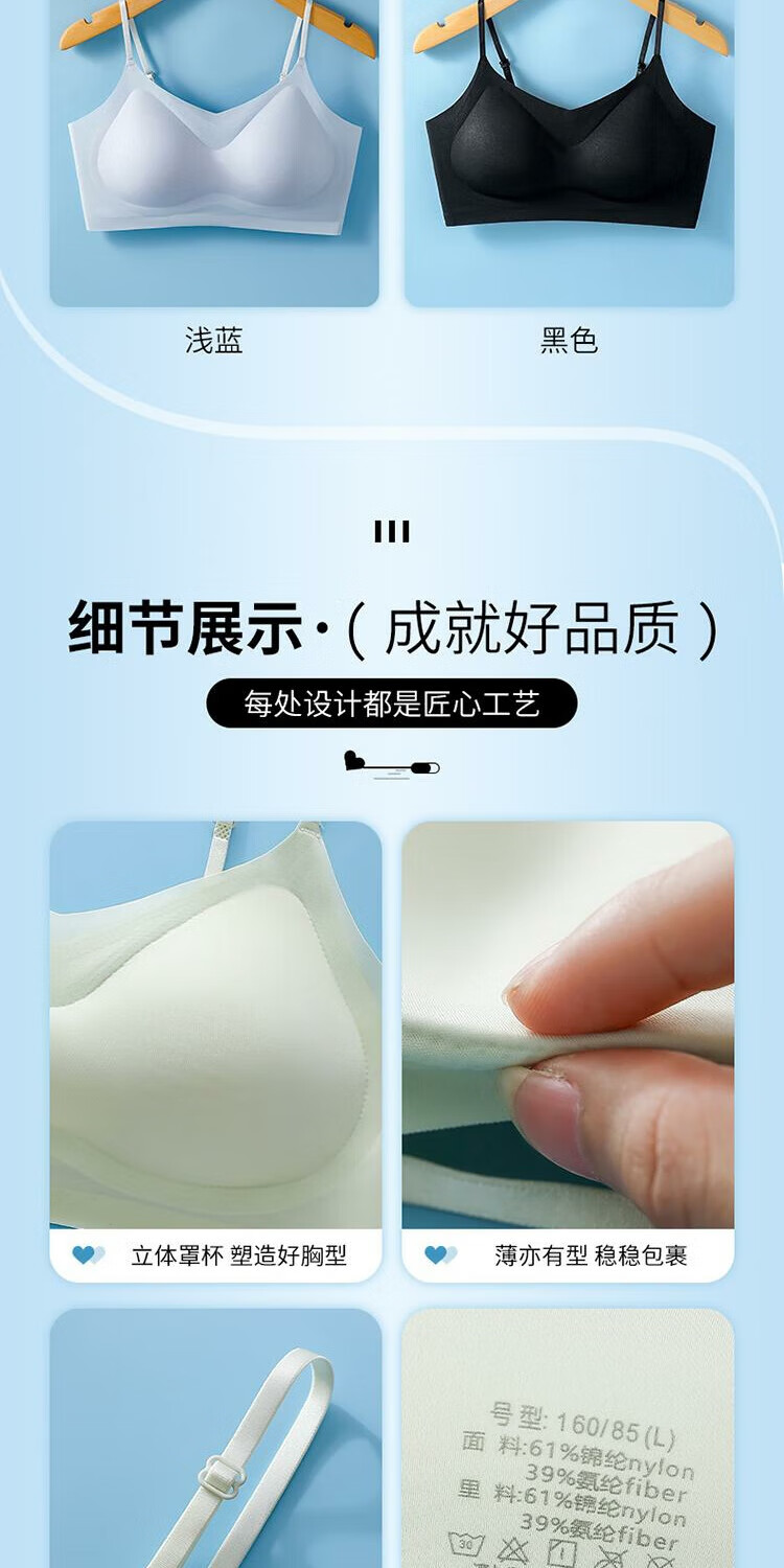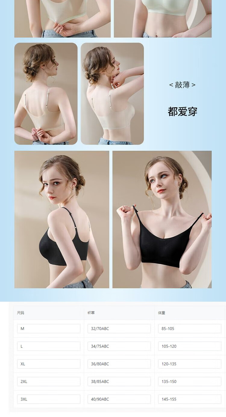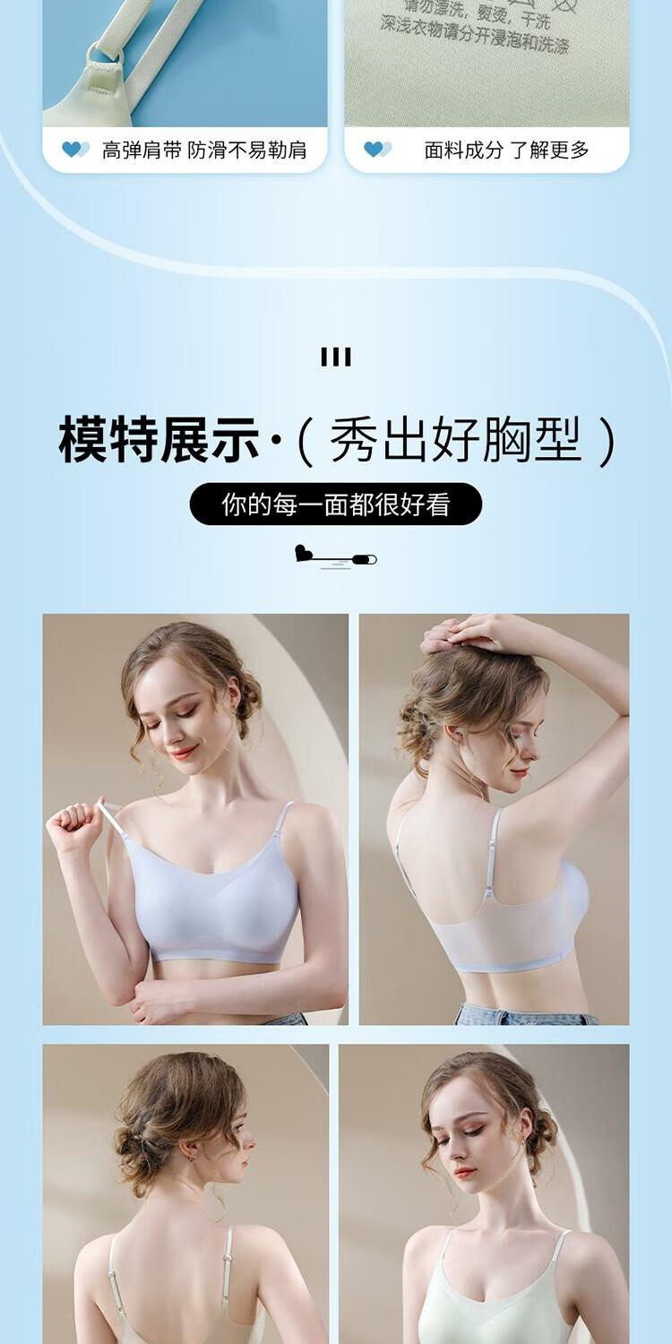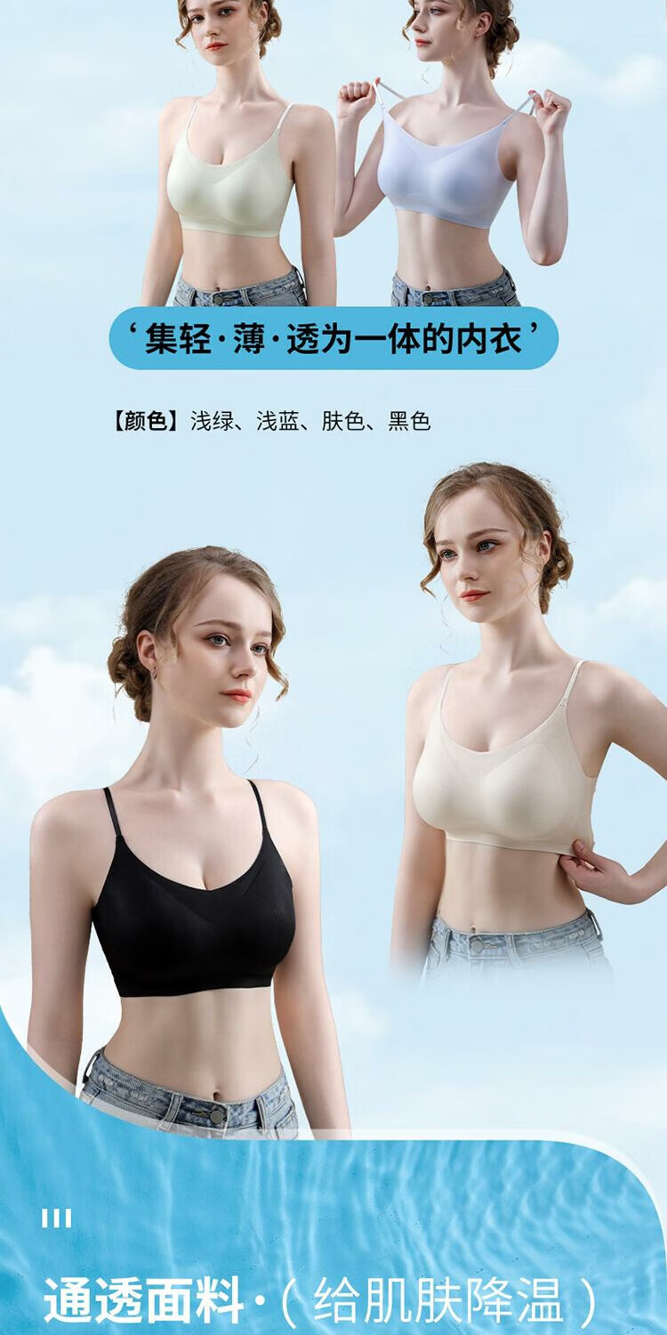 宜而爽聚拢美背夏季运动风抹胸透气女士及胸无钢圈冰丝舒适内衣文胸 肤色 L 34/75ABC