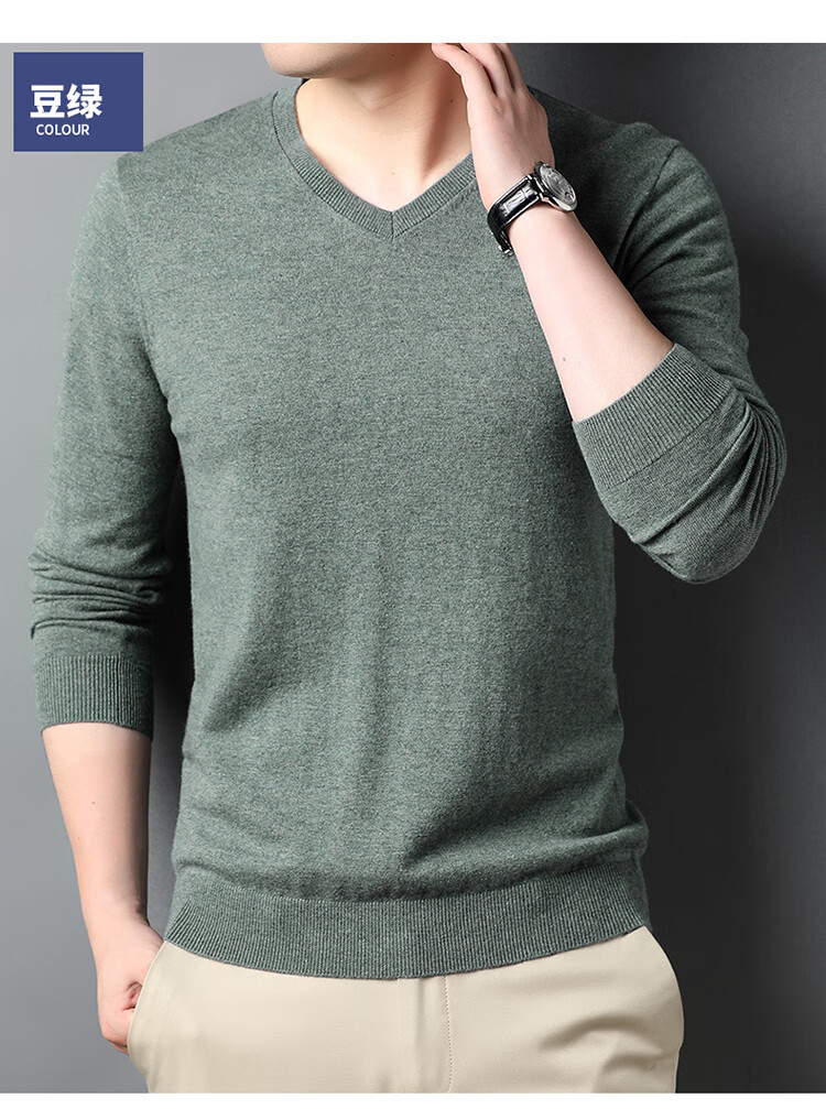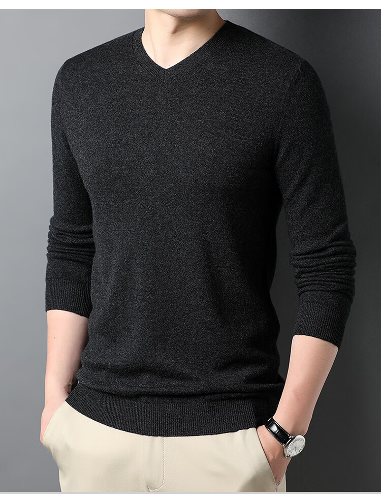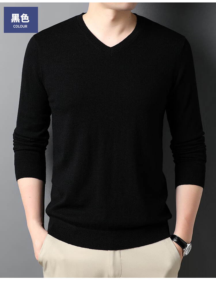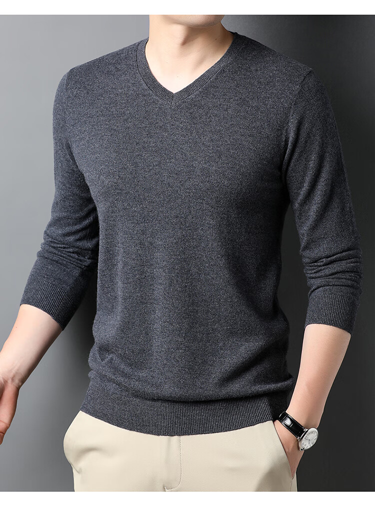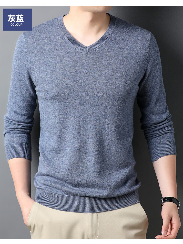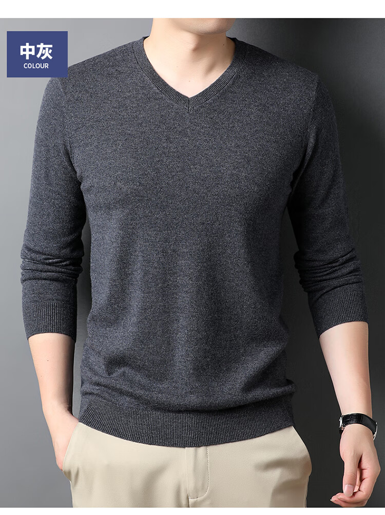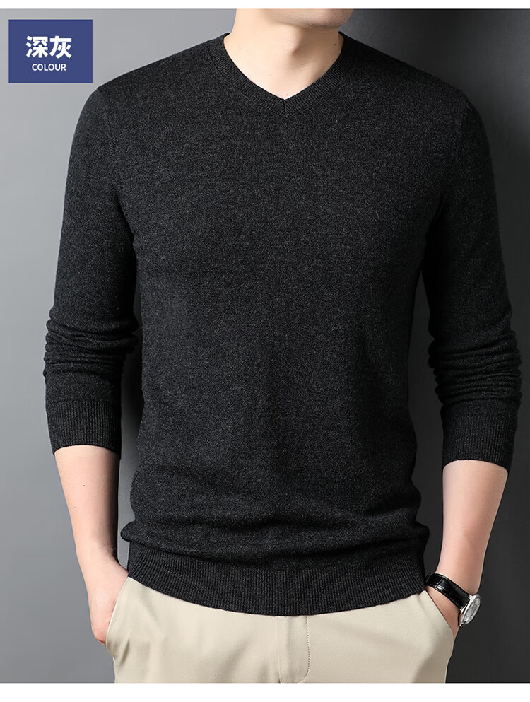 利郎男装羊毛衫V领春秋季男士中青年羊绒针织打底衫薄款毛衣上衣 深灰色 3XL 190码【建议200-220斤】