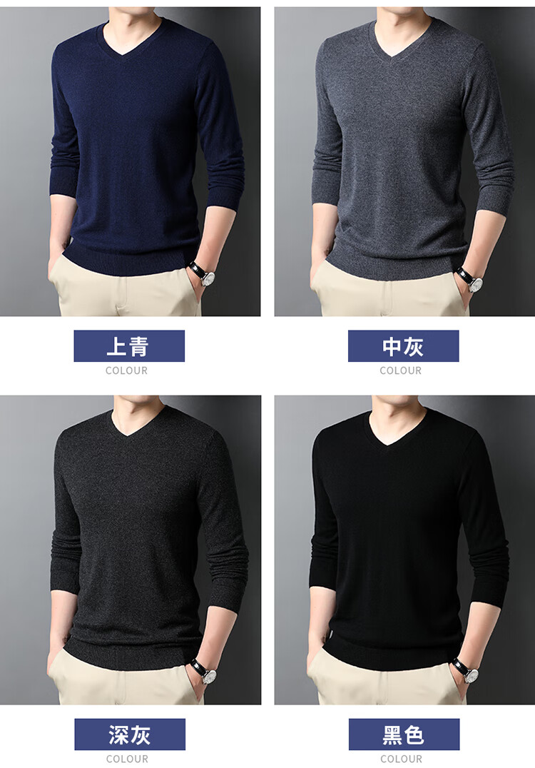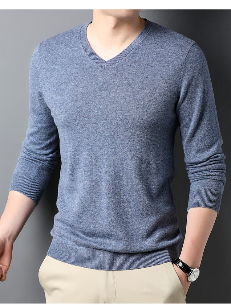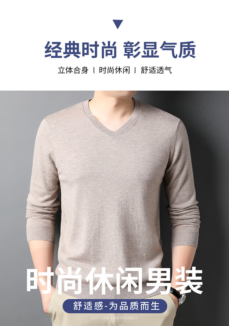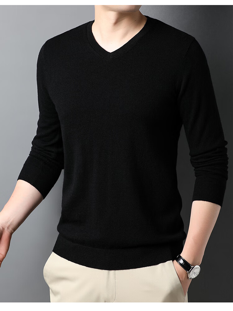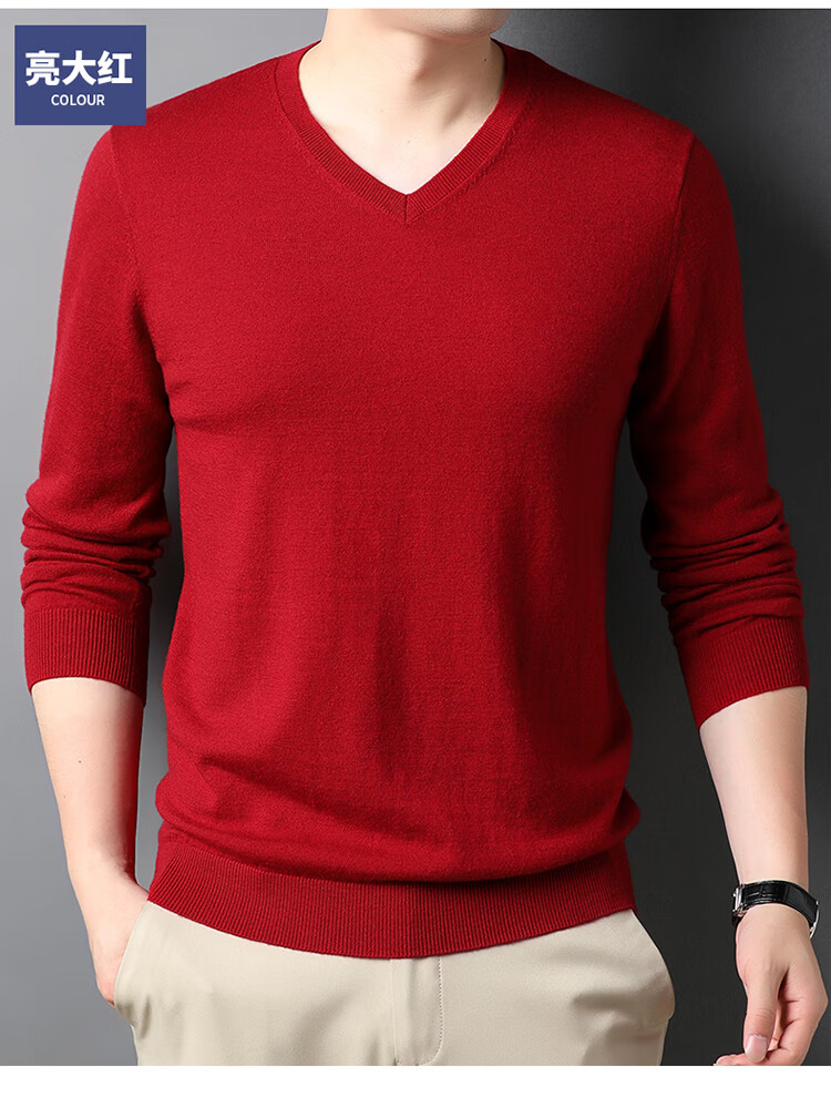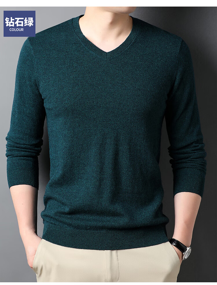 利郎男装羊毛衫V领春秋季男士中青年羊绒针织打底衫薄款毛衣上衣 深灰色 3XL 190码【建议200-220斤】