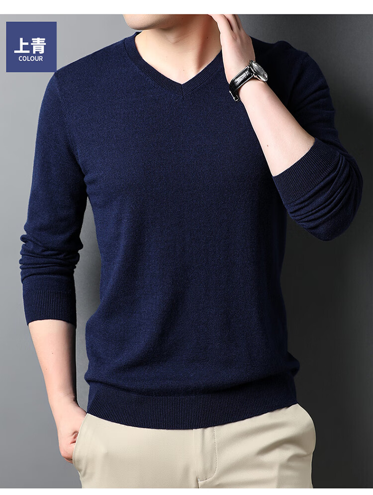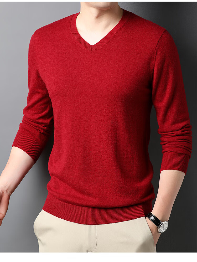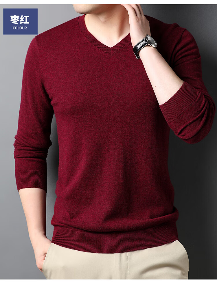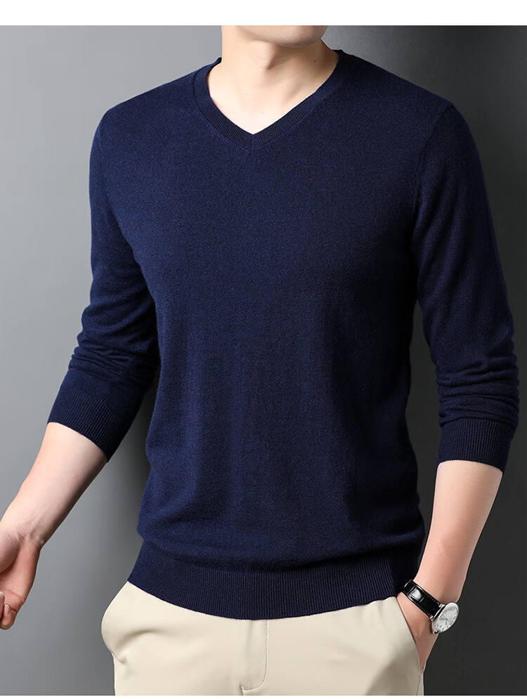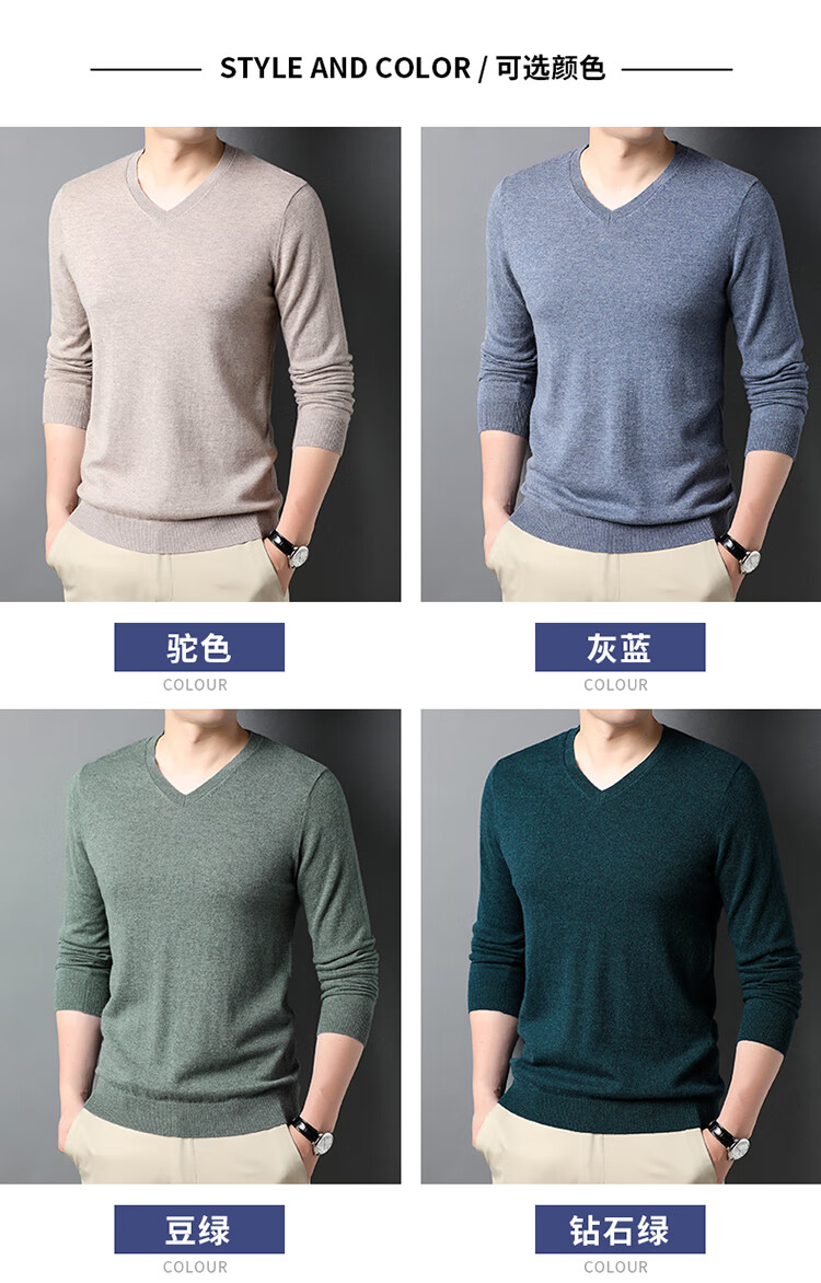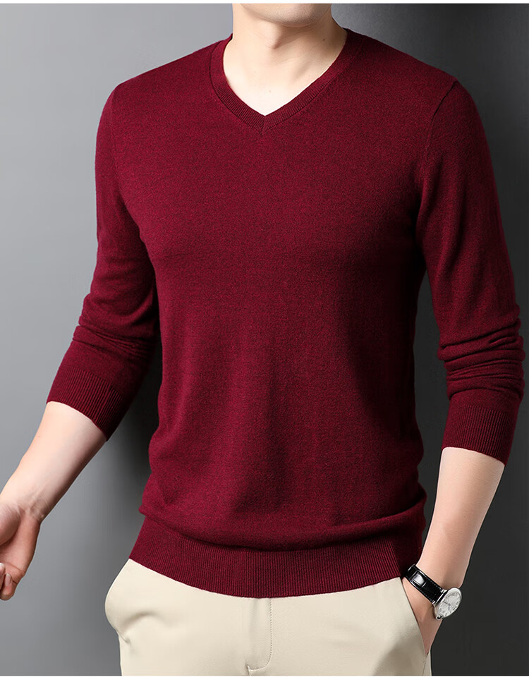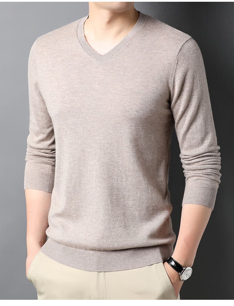 利郎男装羊毛衫V领春秋季男士中青年羊绒针织打底衫薄款毛衣上衣 深灰色 3XL 190码【建议200-220斤】