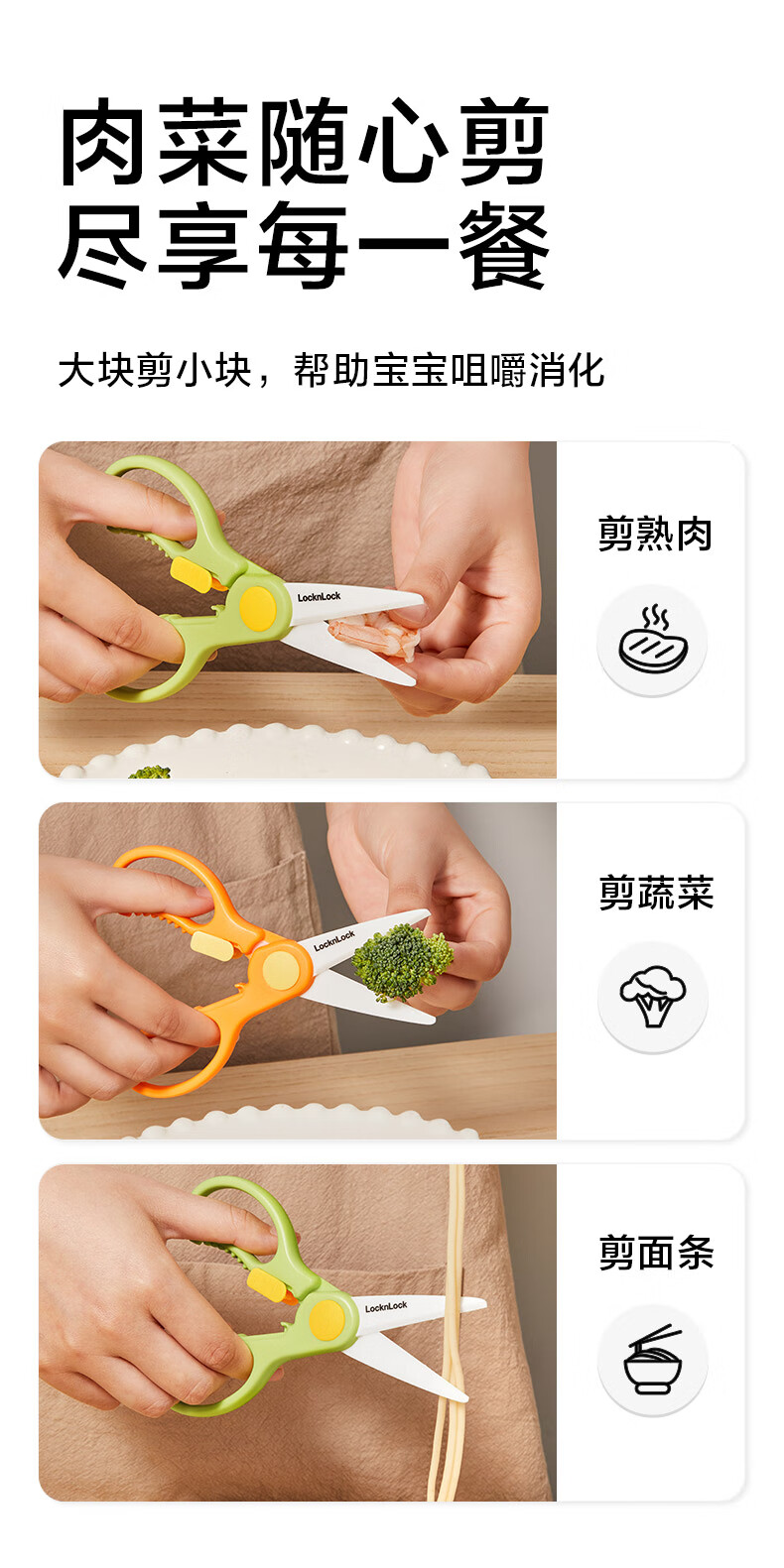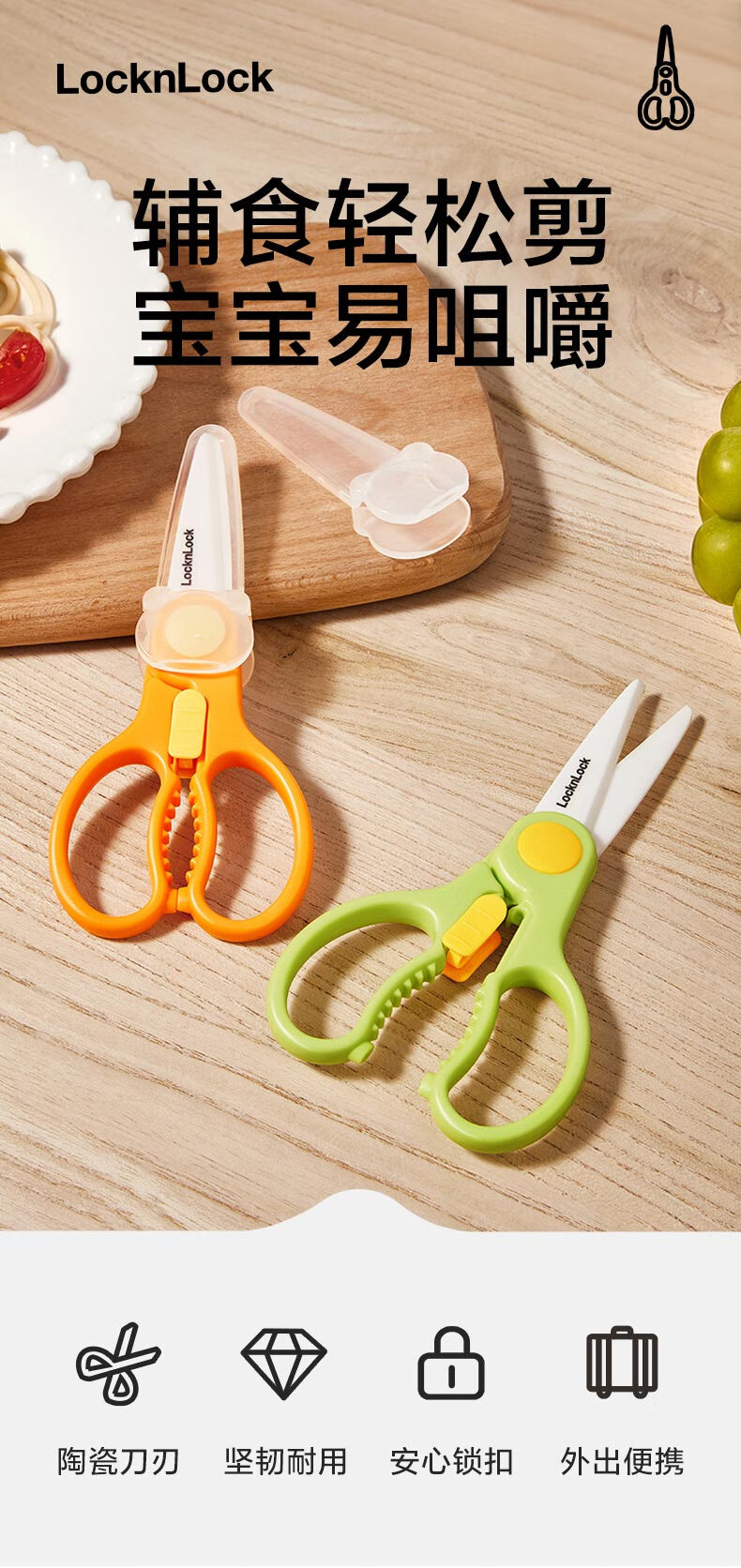 乐扣乐扣辅食剪刀陶瓷辅食剪婴儿ad便携儿童食物剪刀厨房宝宝辅食工具