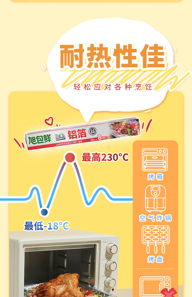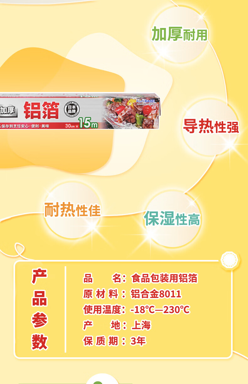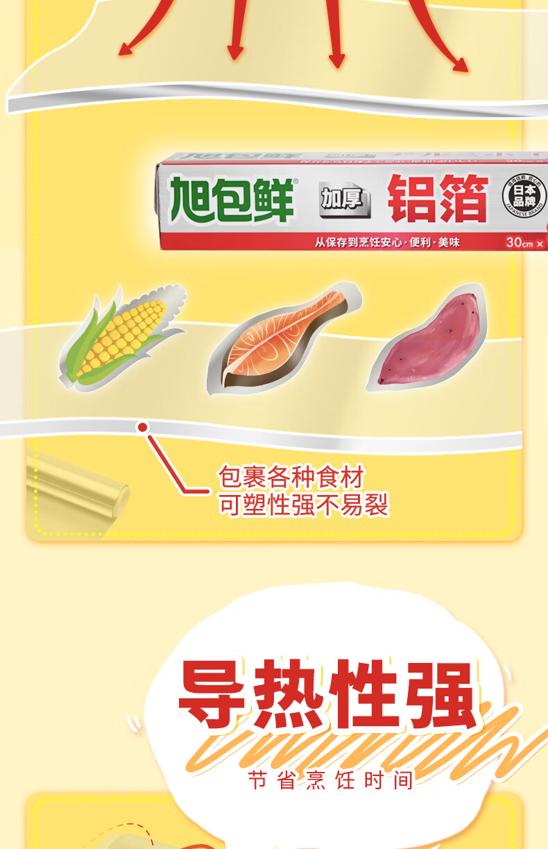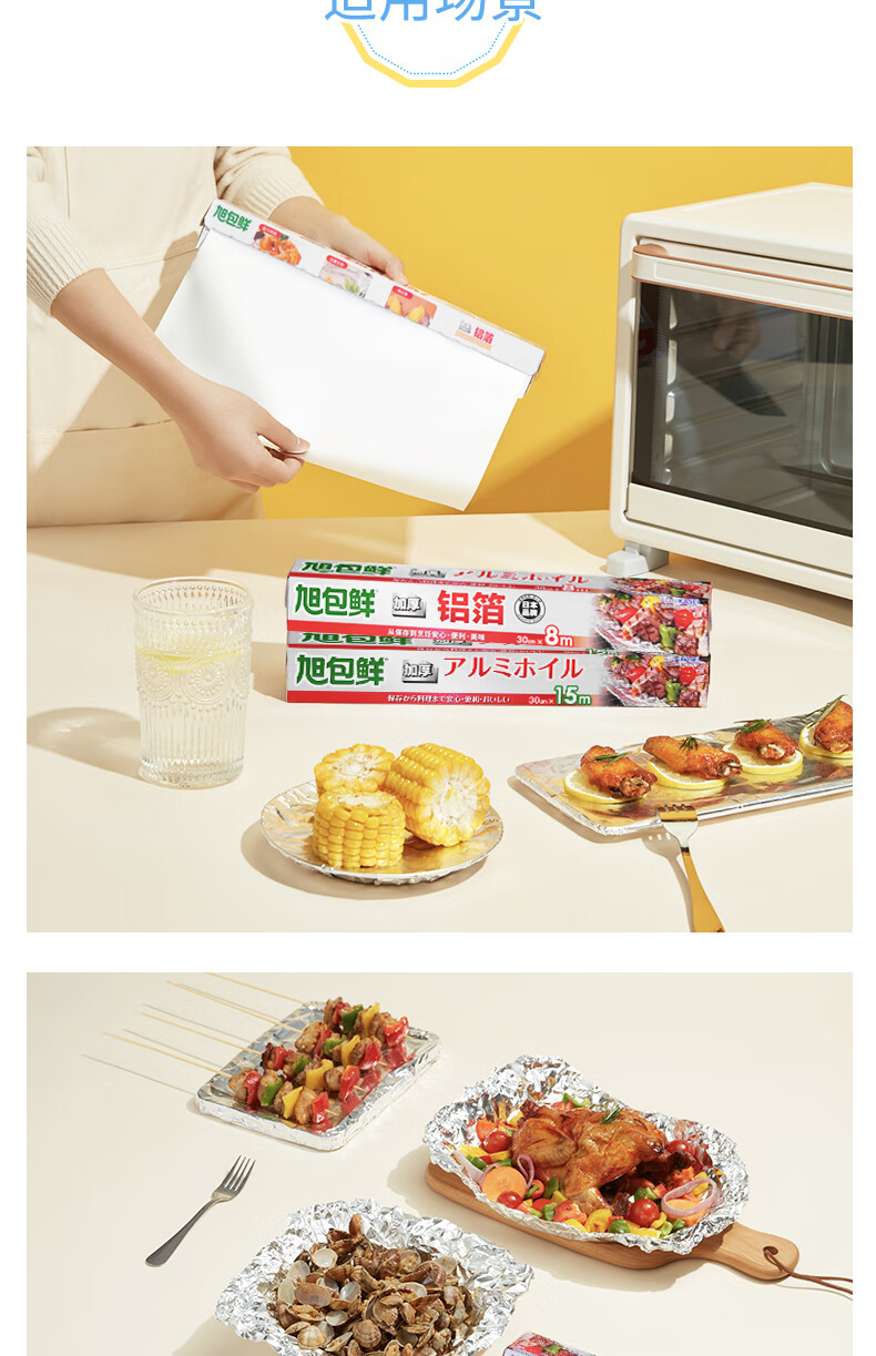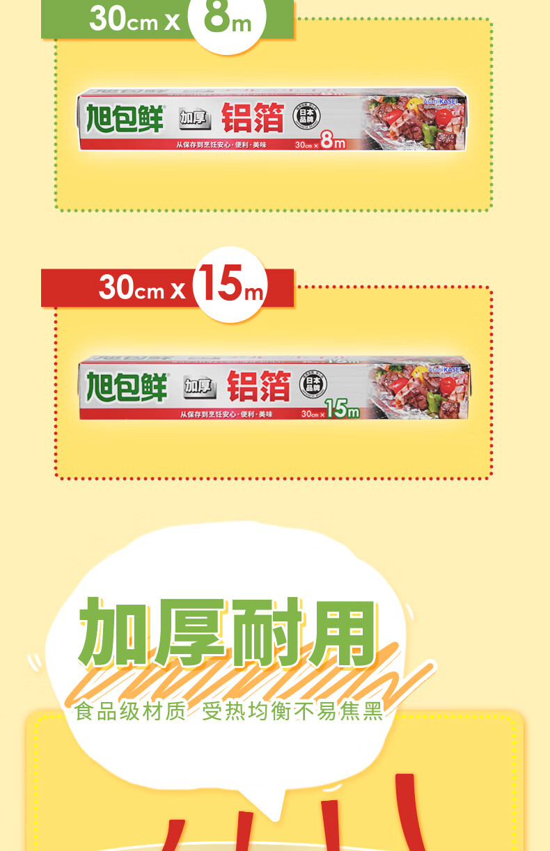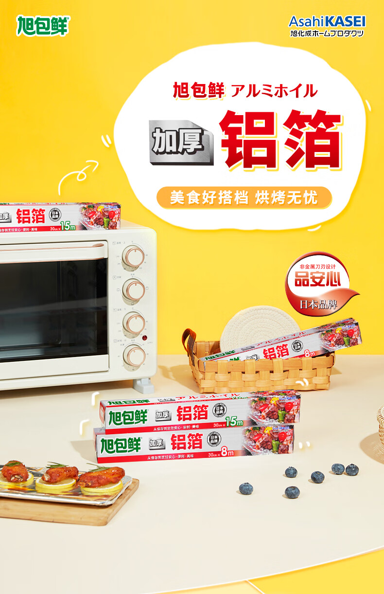 旭包鲜日本品牌加厚铝箔纸30cm*15m锡纸空气炸锅烘培烧烤烤箱烤盘蛋挞托