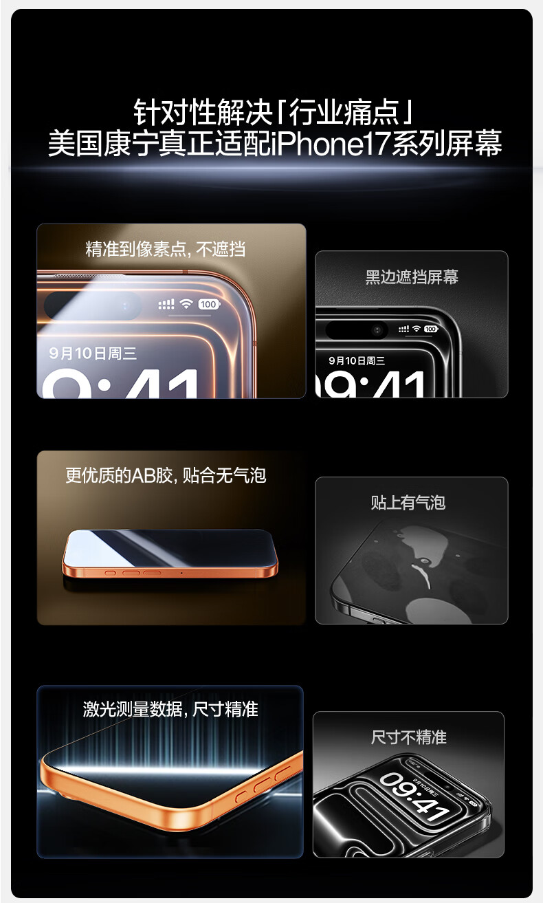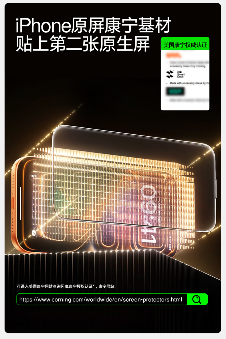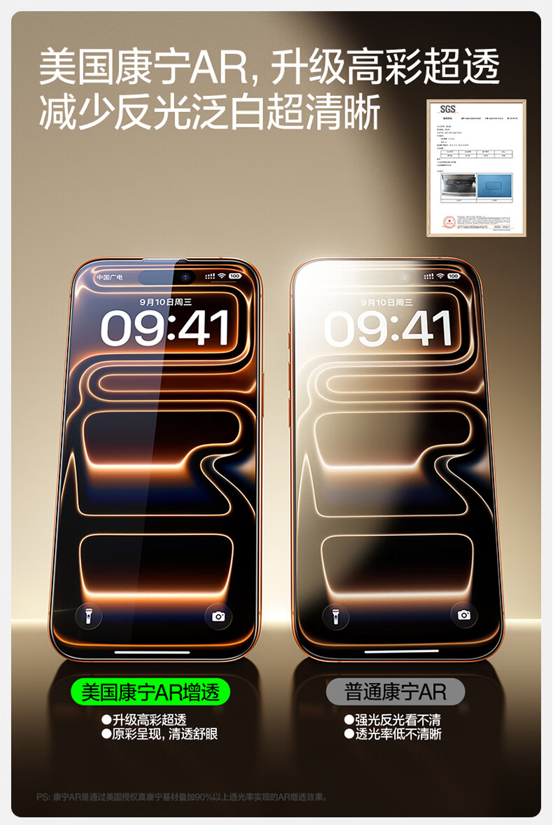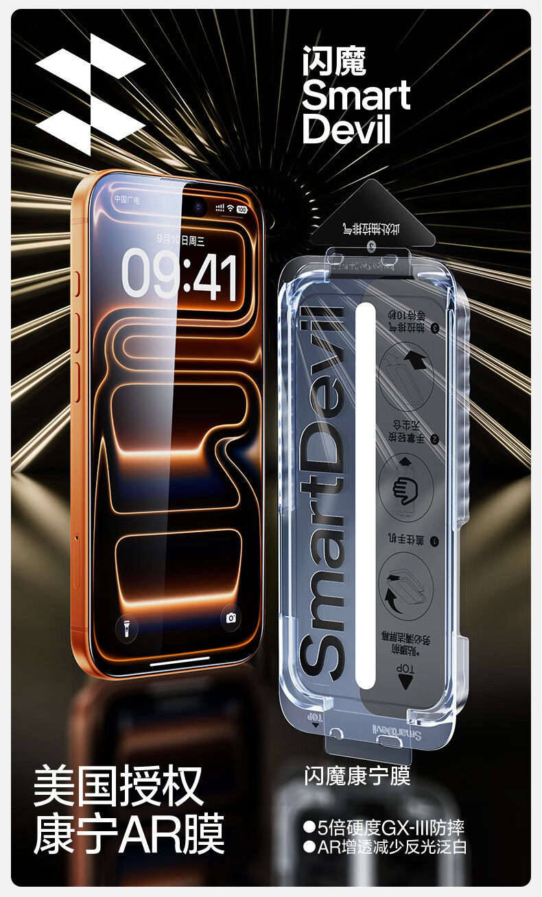 闪魔【美国康宁正版授权】适用iPhone17promax钢化膜苹果17pro手机膜air康宁AR增透抗反射17/16pro防爆 17promax【美国康宁】第2件半价 1:1真机开模+贴坏包赔