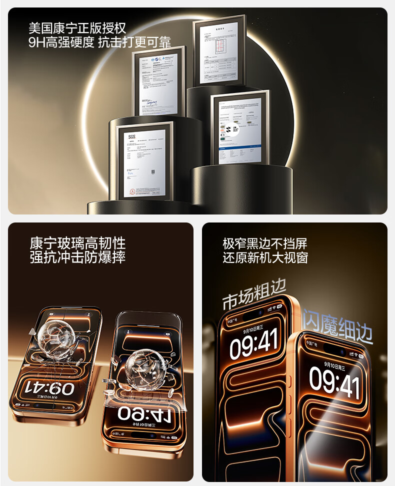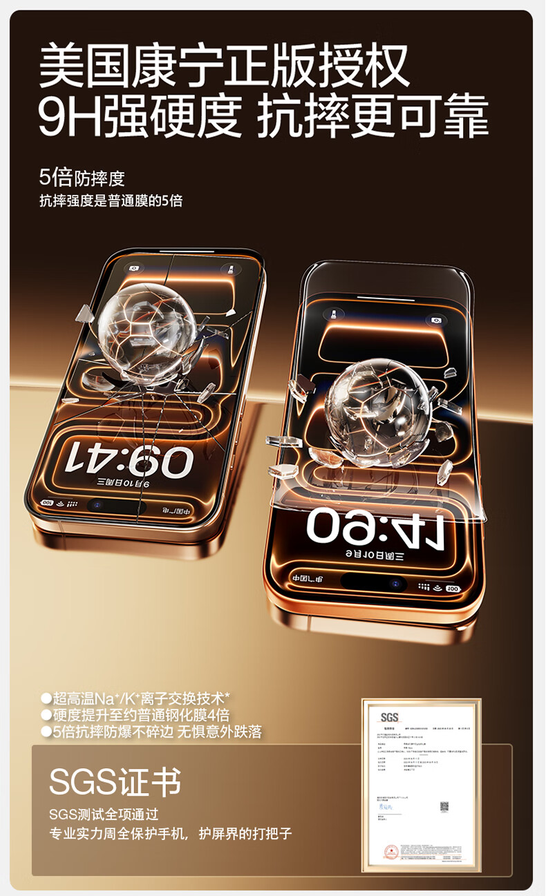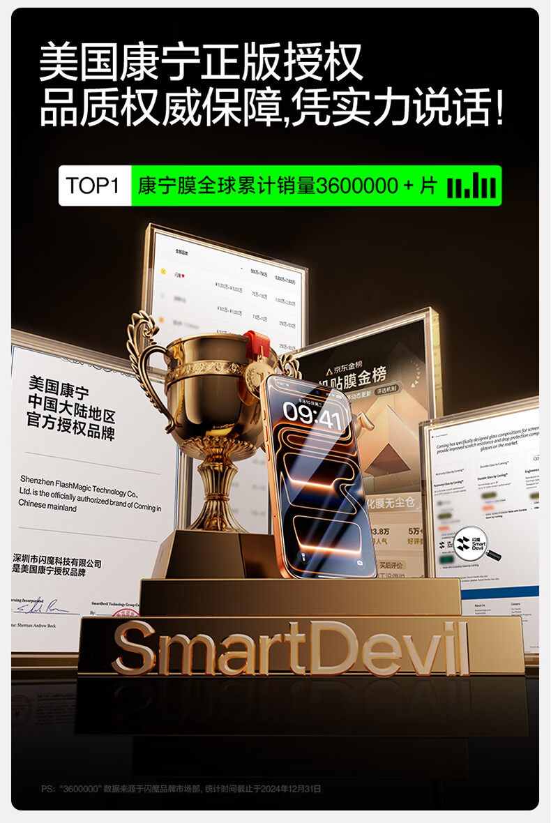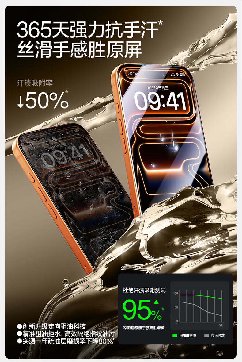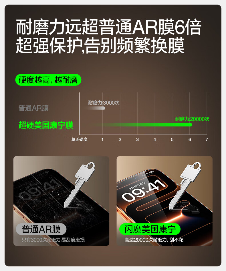 闪魔【美国康宁正版授权】适用iPhone17promax钢化膜苹果17pro手机膜air康宁AR增透抗反射17/16pro防爆 17promax【美国康宁】第2件半价 1:1真机开模+贴坏包赔