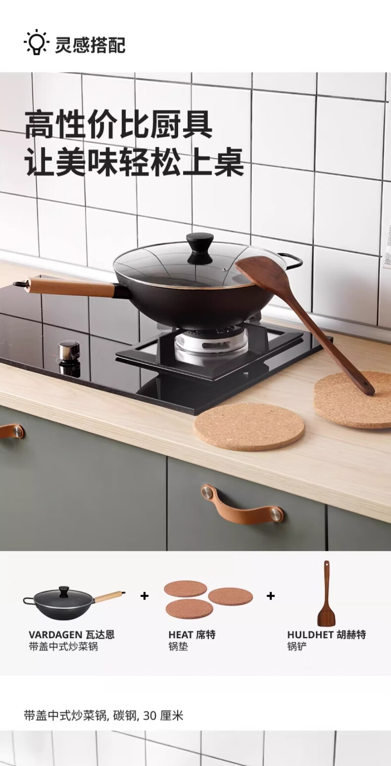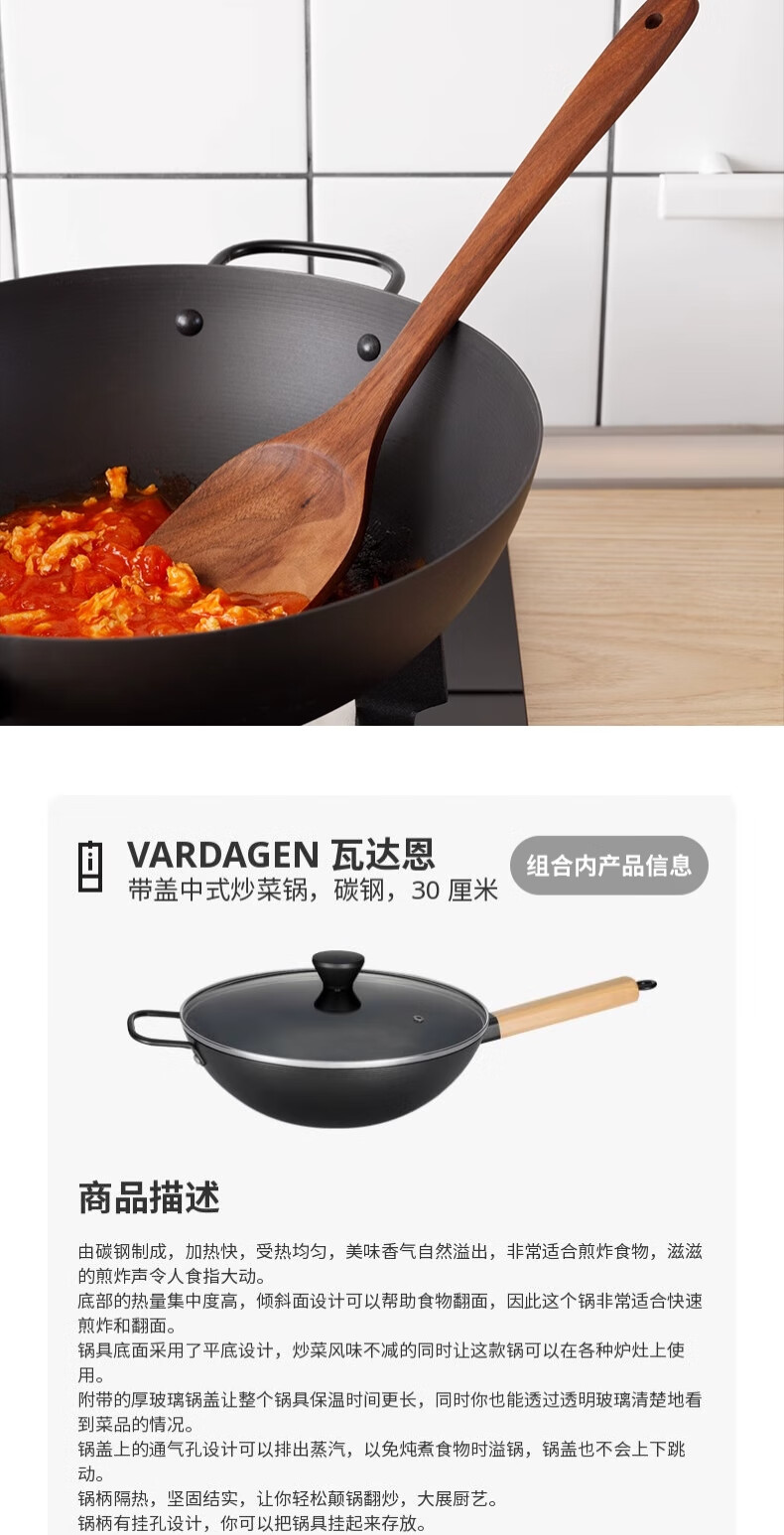 宜家(IKEA)VARDAGEN瓦达恩带盖中式炒菜锅碳钢锅具电磁炉通用厨具 炒菜锅+锅垫+锅铲 1寸 其他