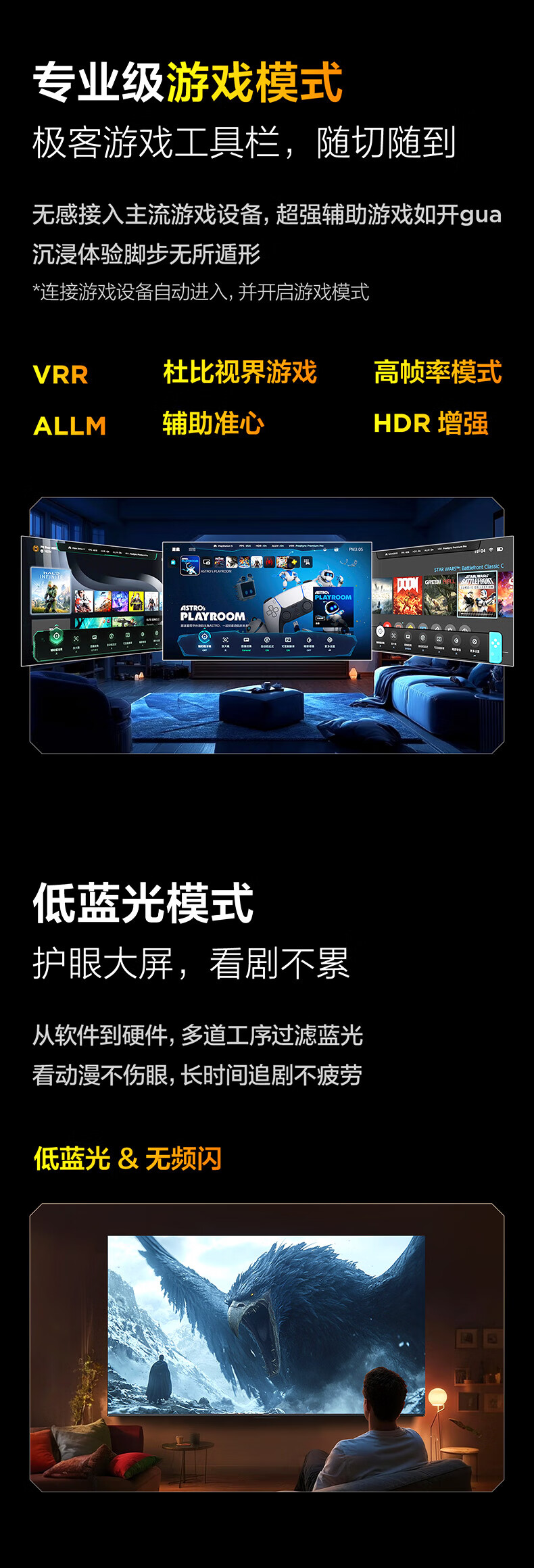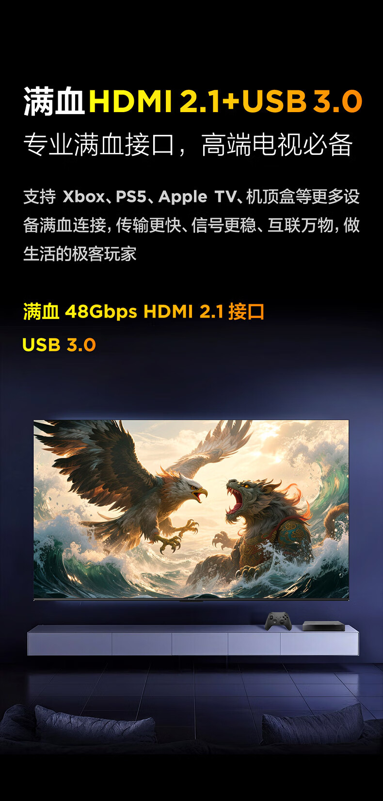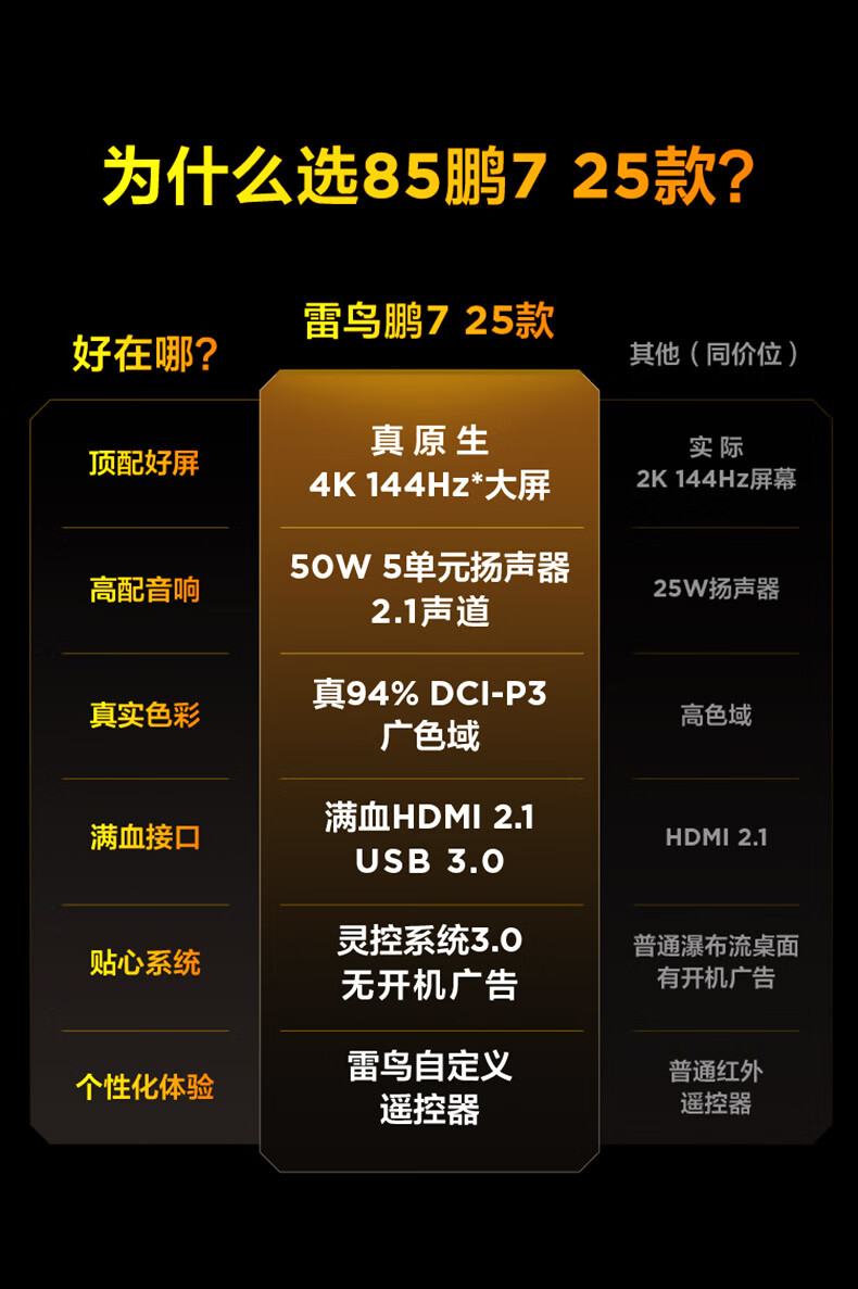 FFALCON雷鸟电视 85鹏7 25款 85英寸 全通道288Hz高刷 满血HDMI2.1 家电国家补贴电视85S385C PRO-J