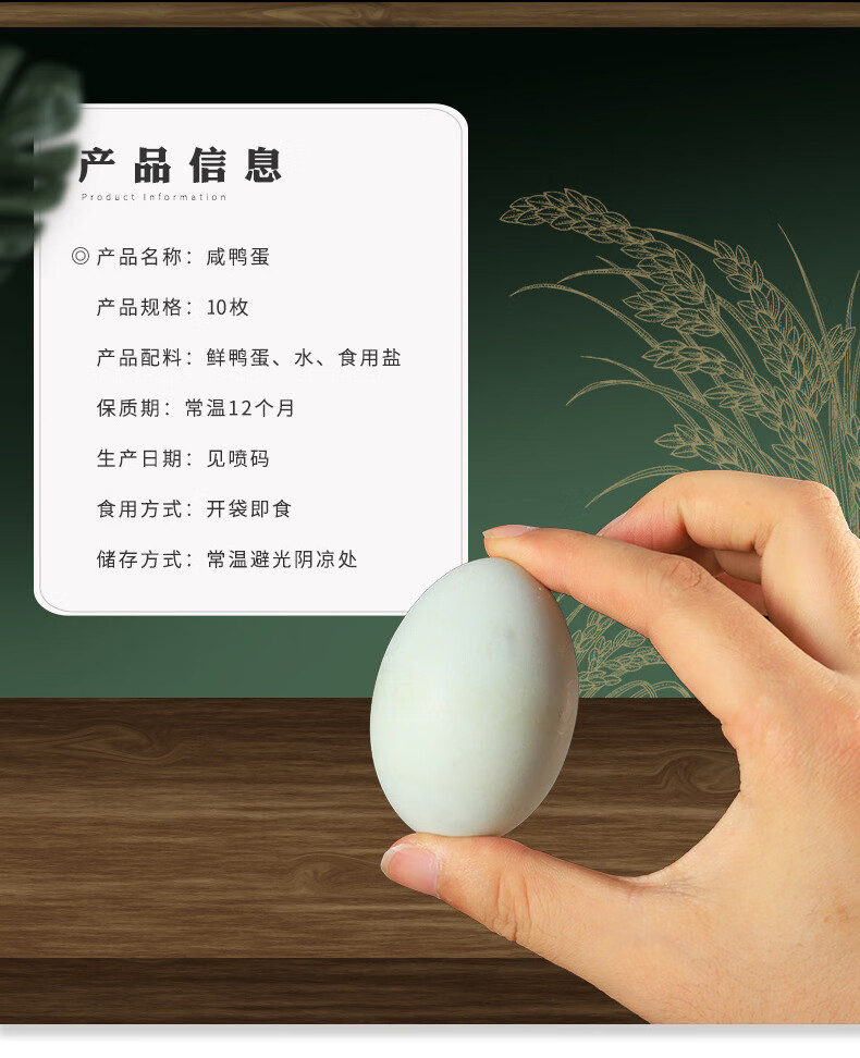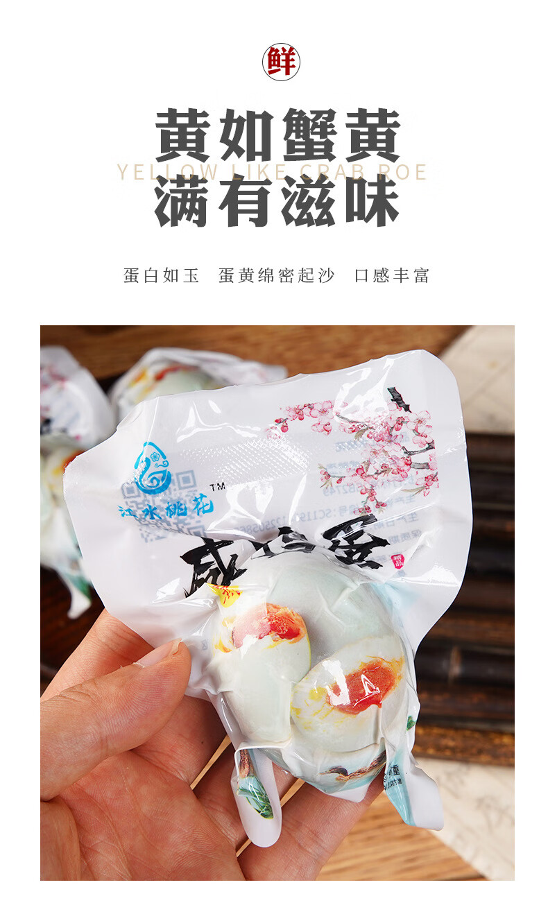 江水桃花咸鸭蛋红心流油起沙熟盐蛋开袋即食 10枚500克 真空独立包装
