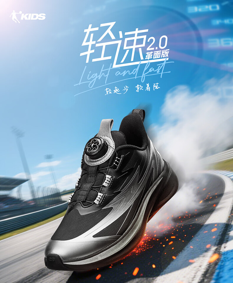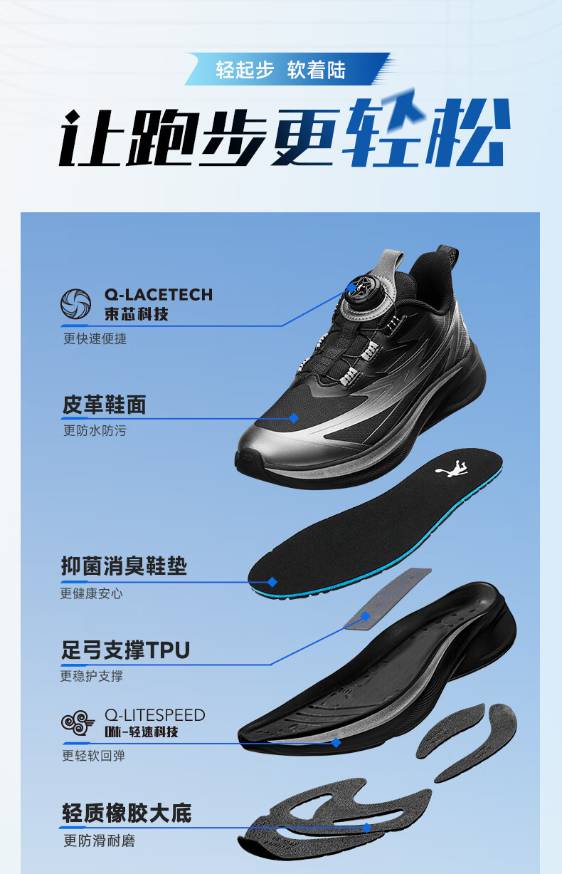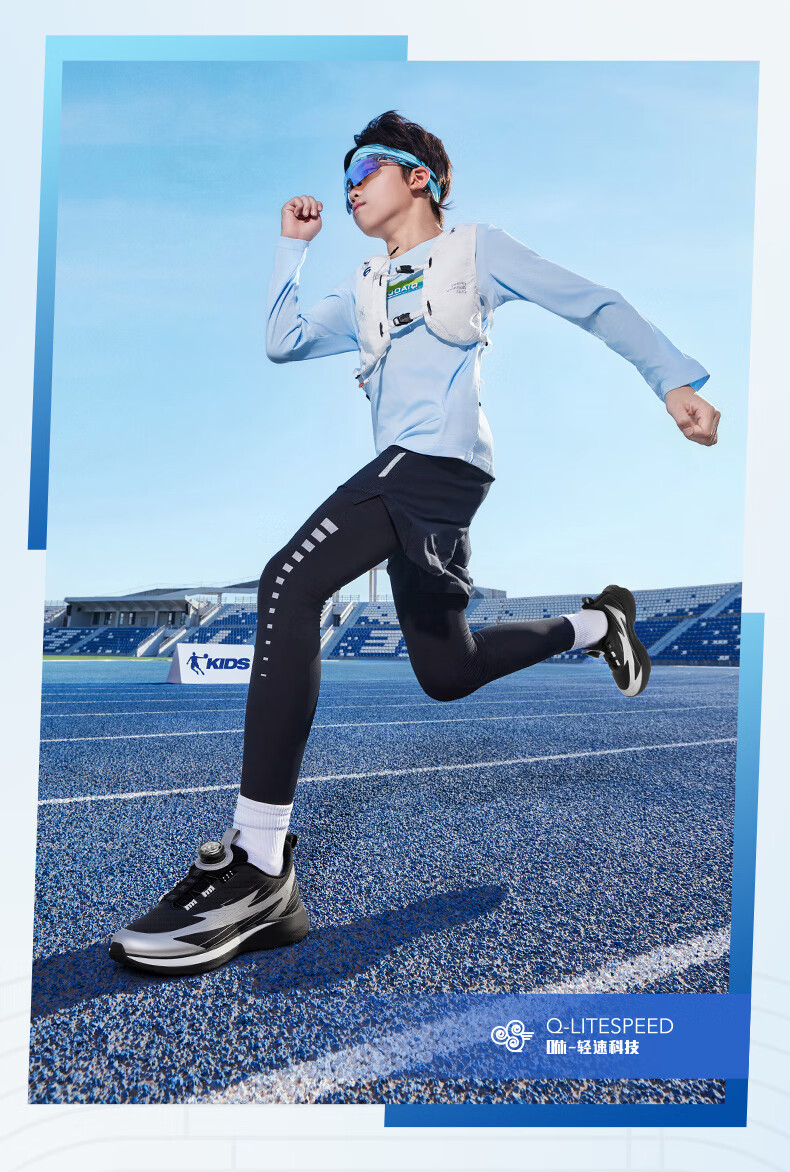 乔丹男大童跑步鞋儿童春秋轻速运动鞋子旋钮扣童鞋 迷蒙蓝/智能蓝 37