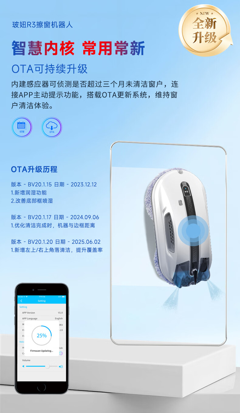 玻妞(HOBOT)全自动家用双向喷水擦窗机器人波妞擦玻璃机器人 干湿两用擦窗擦玻璃神器 玻妞R3