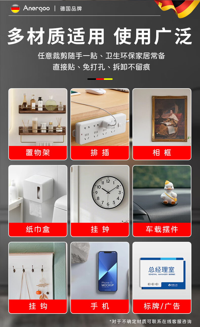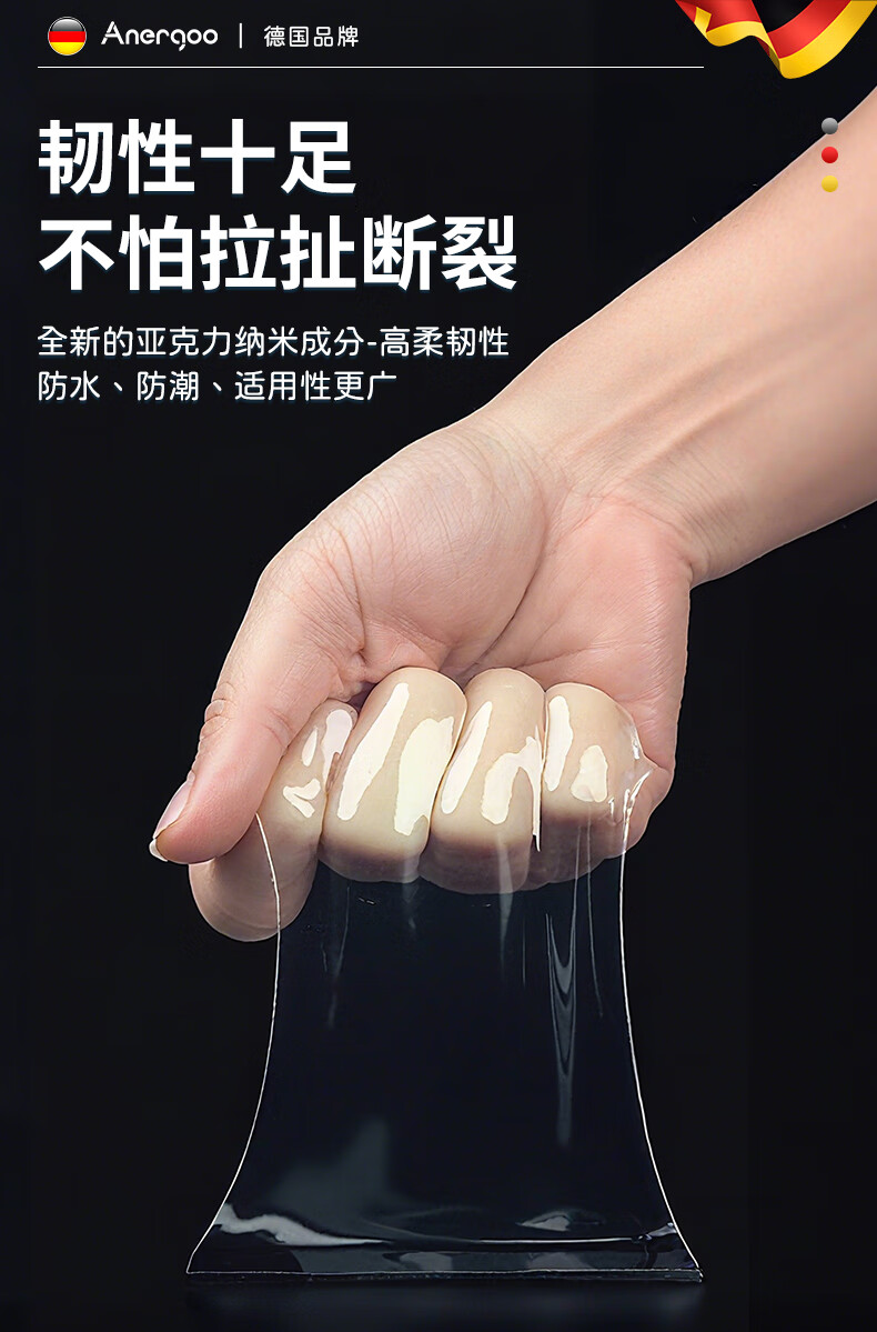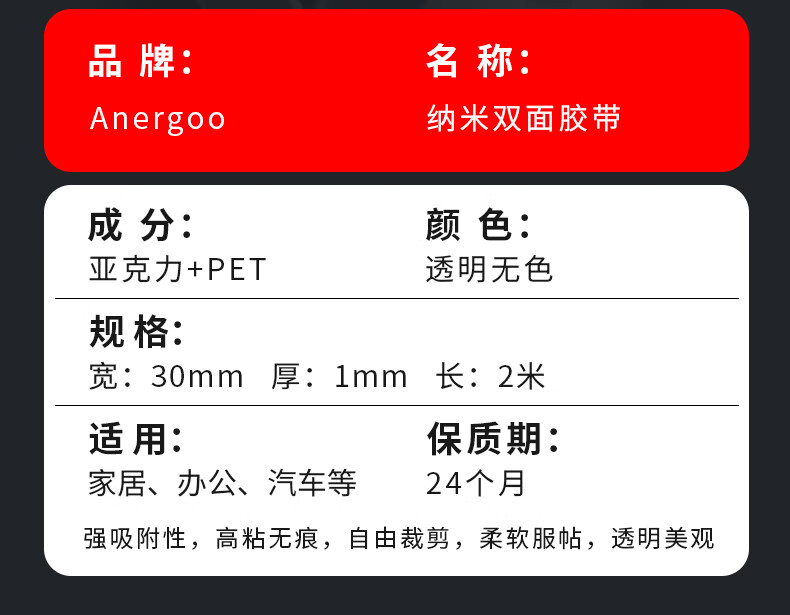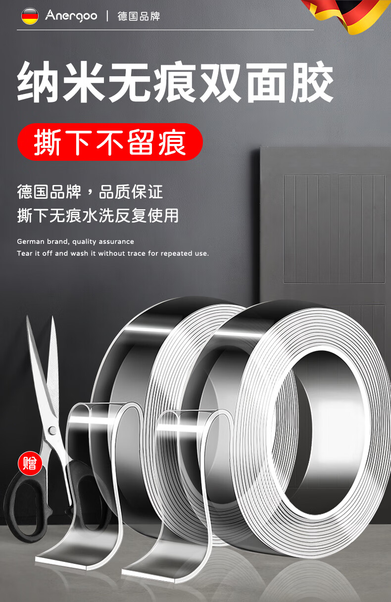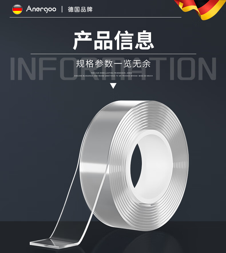 ANERGOO 安尔固强力纳米胶带京东自营无痕双面胶透明胶升级防尘车用家用高粘度不伤墙水洗可重复使用