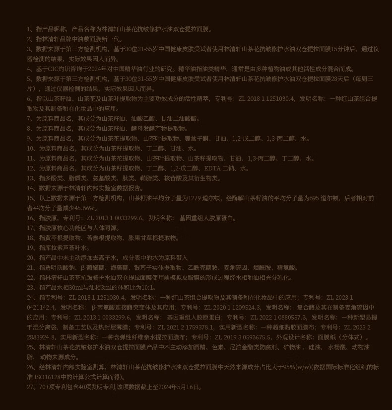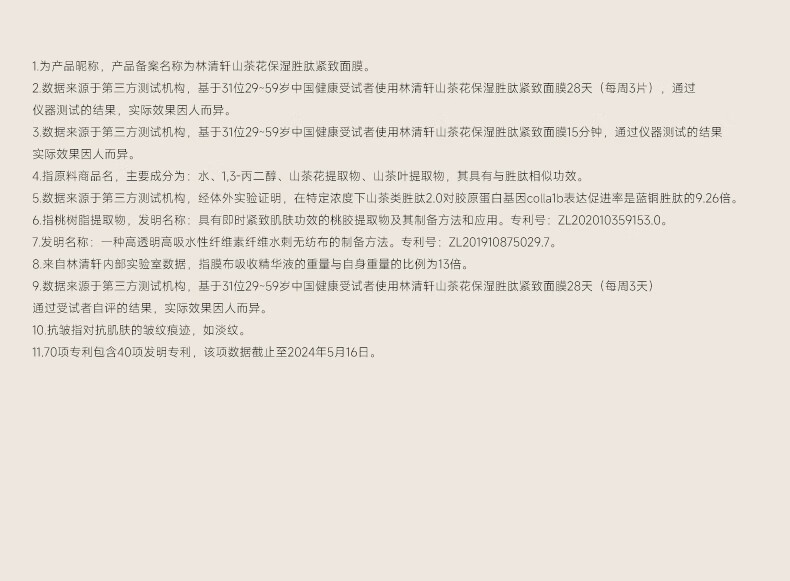 林清轩保湿紧致面膜6片+胶原面膜2片+油膜2片