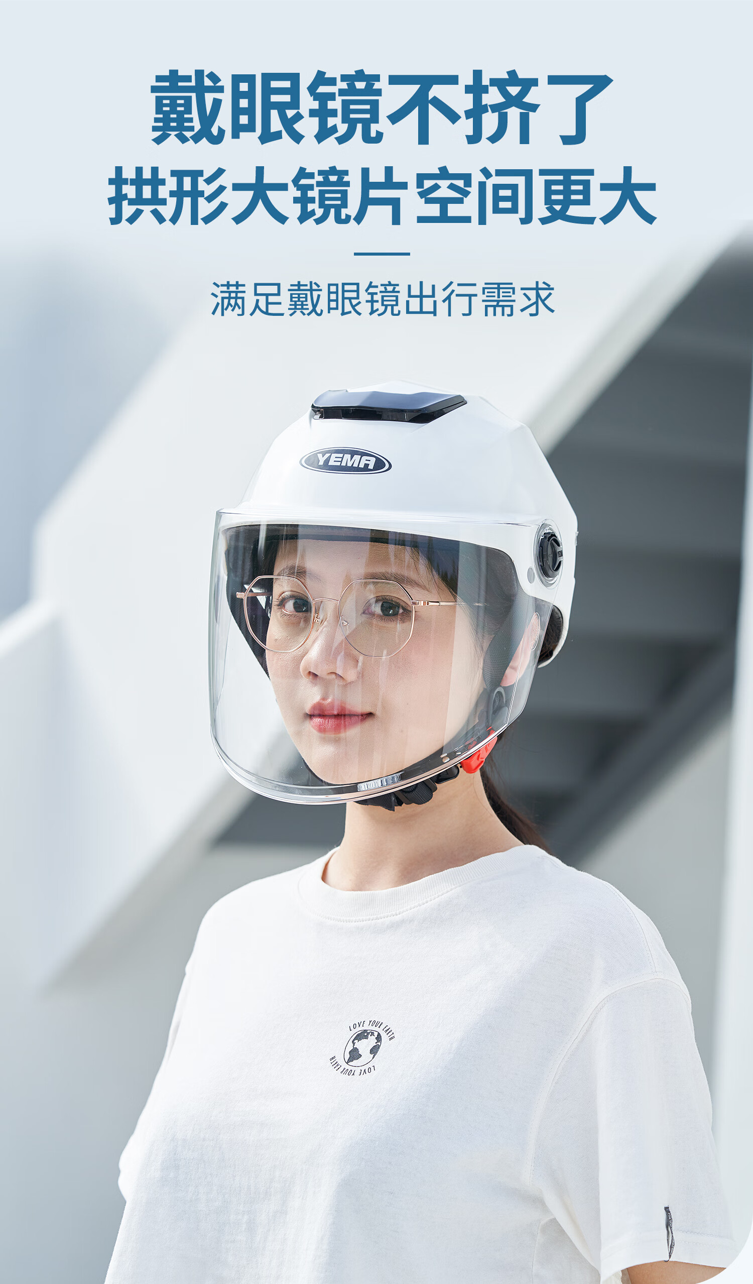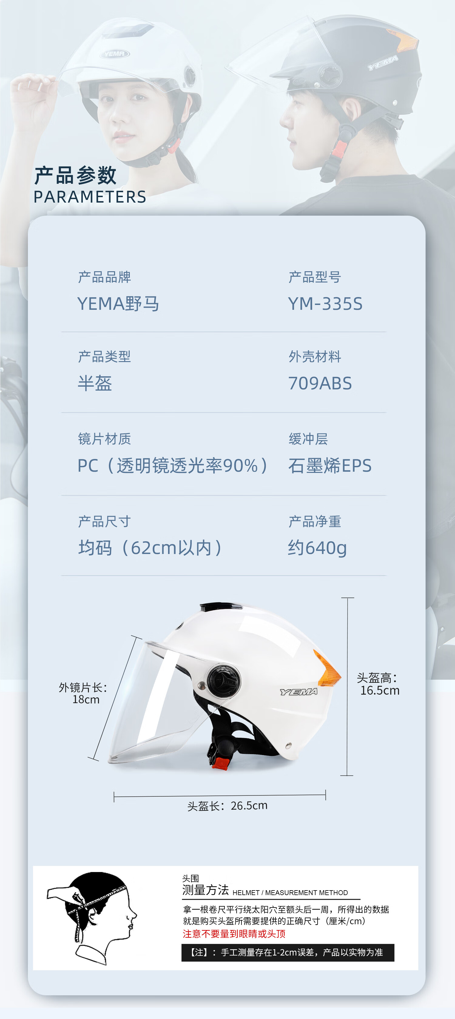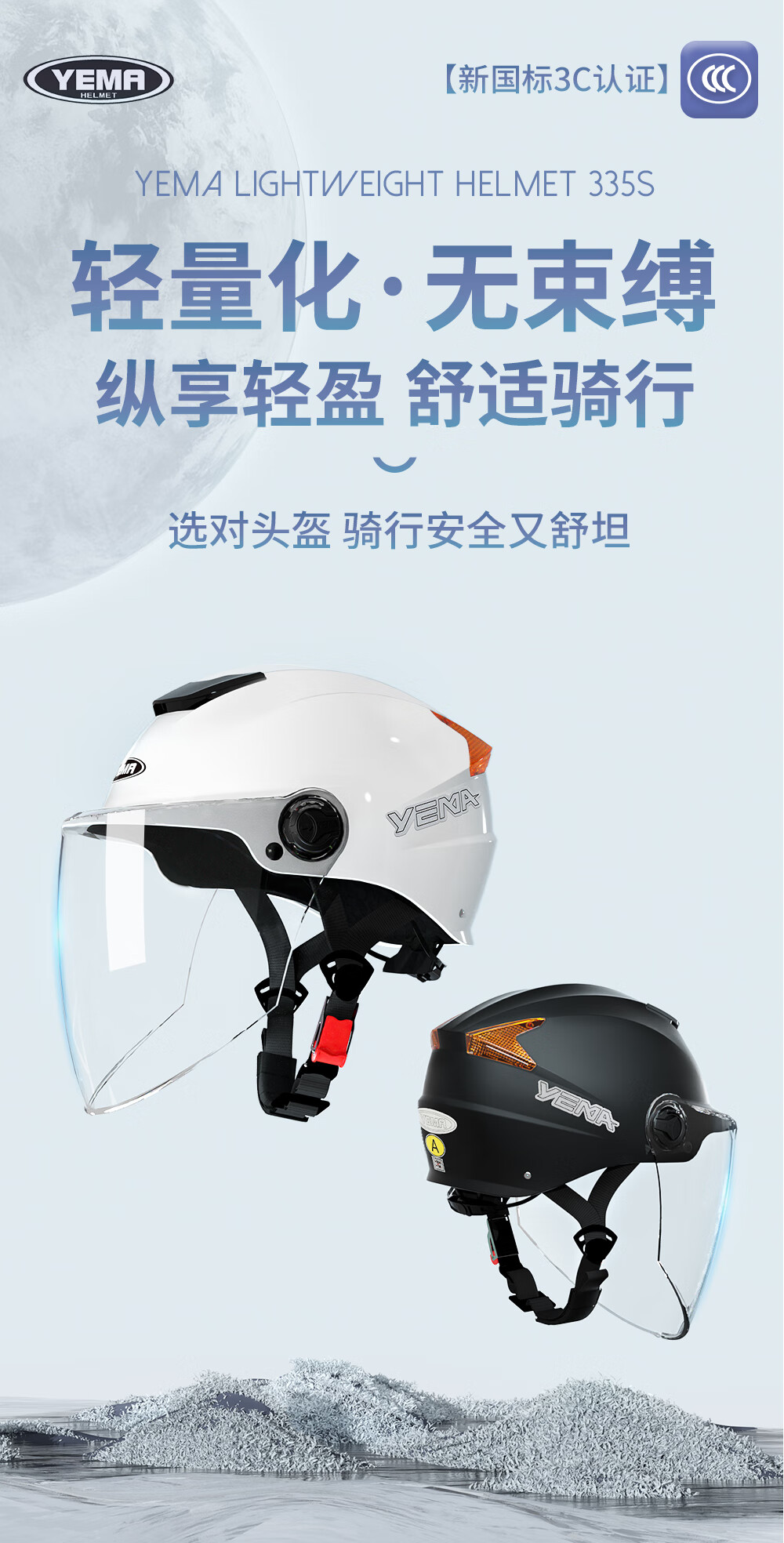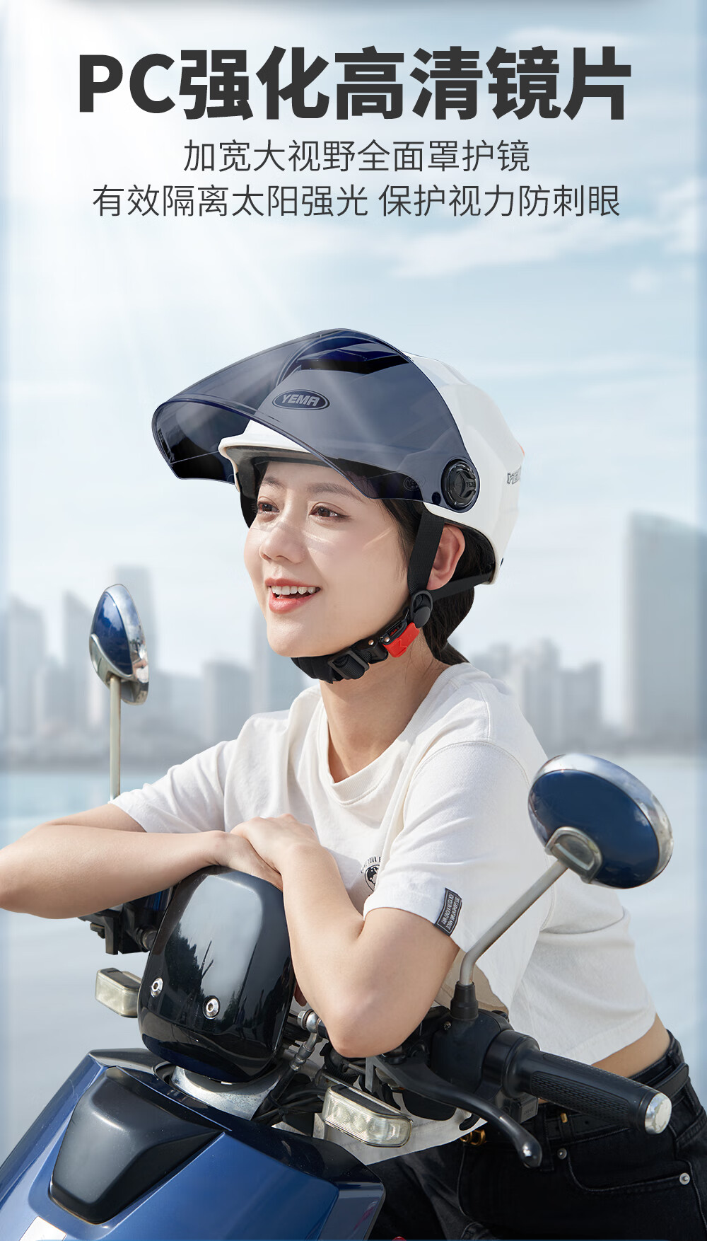 野马(YEMA)头盔夏季女电动车男3C认证轻便式四季半盔摩托车电瓶车夏盔安全帽 皮亚黑【透明镜】 均码