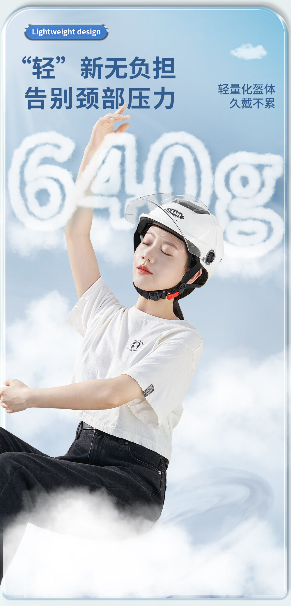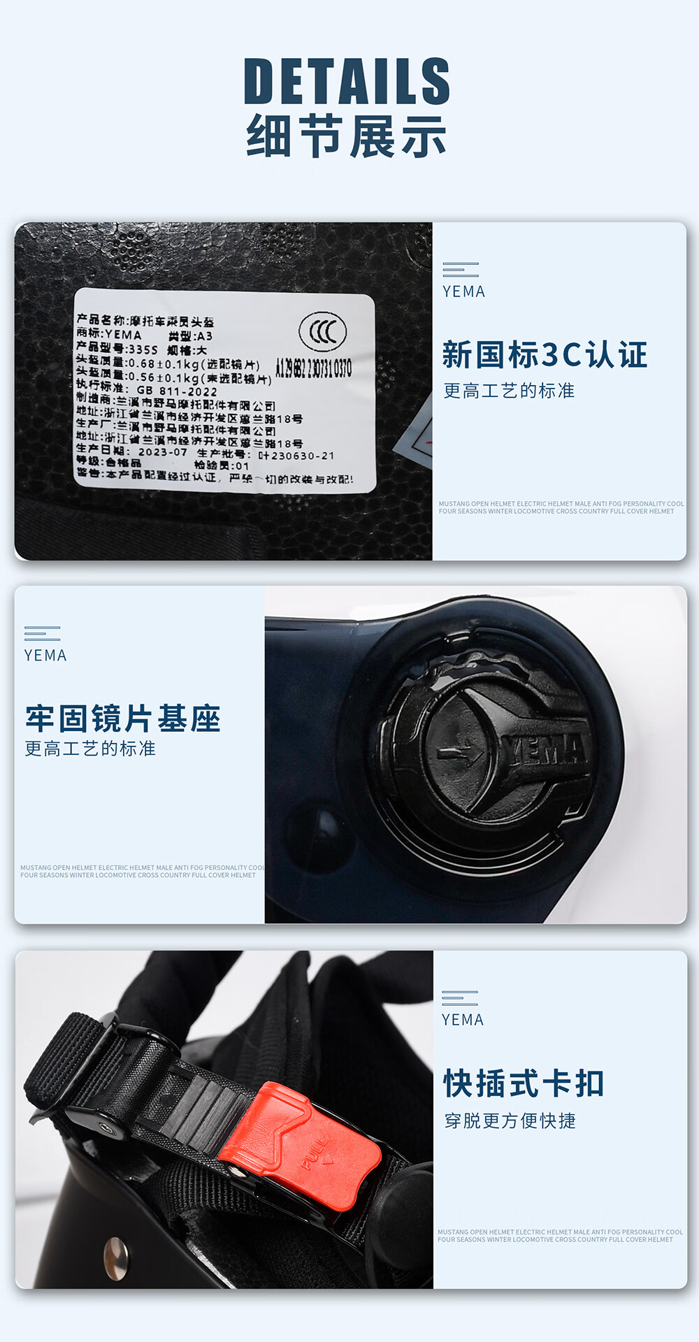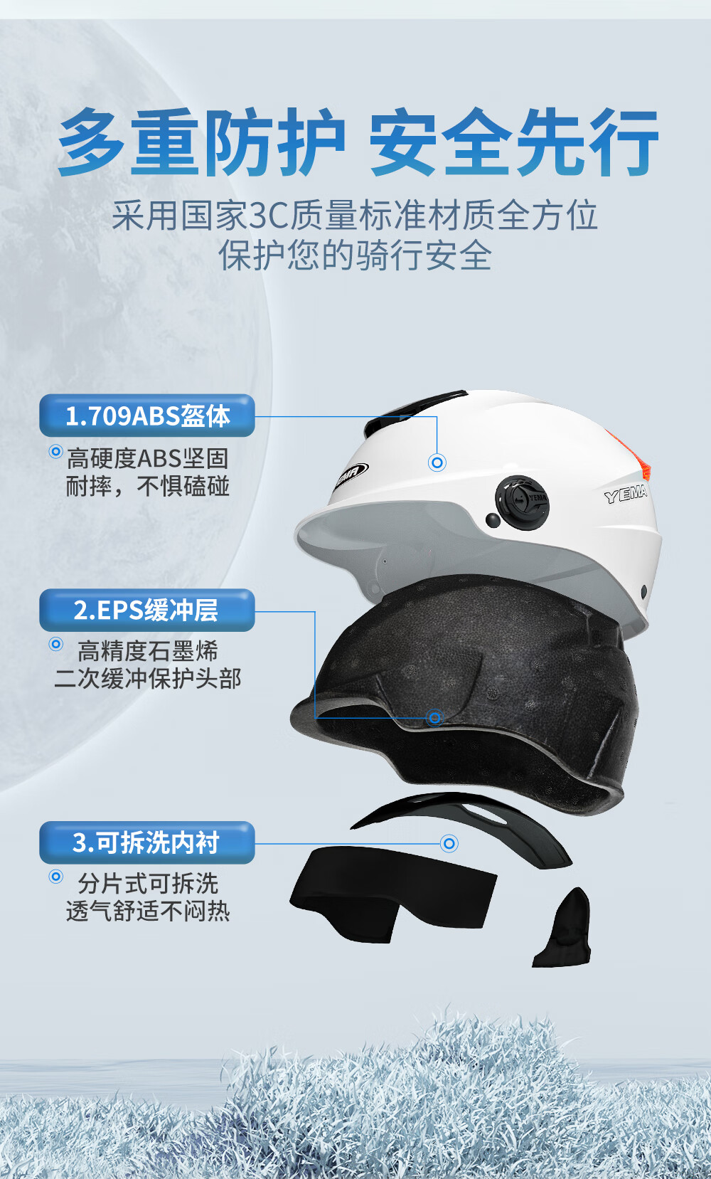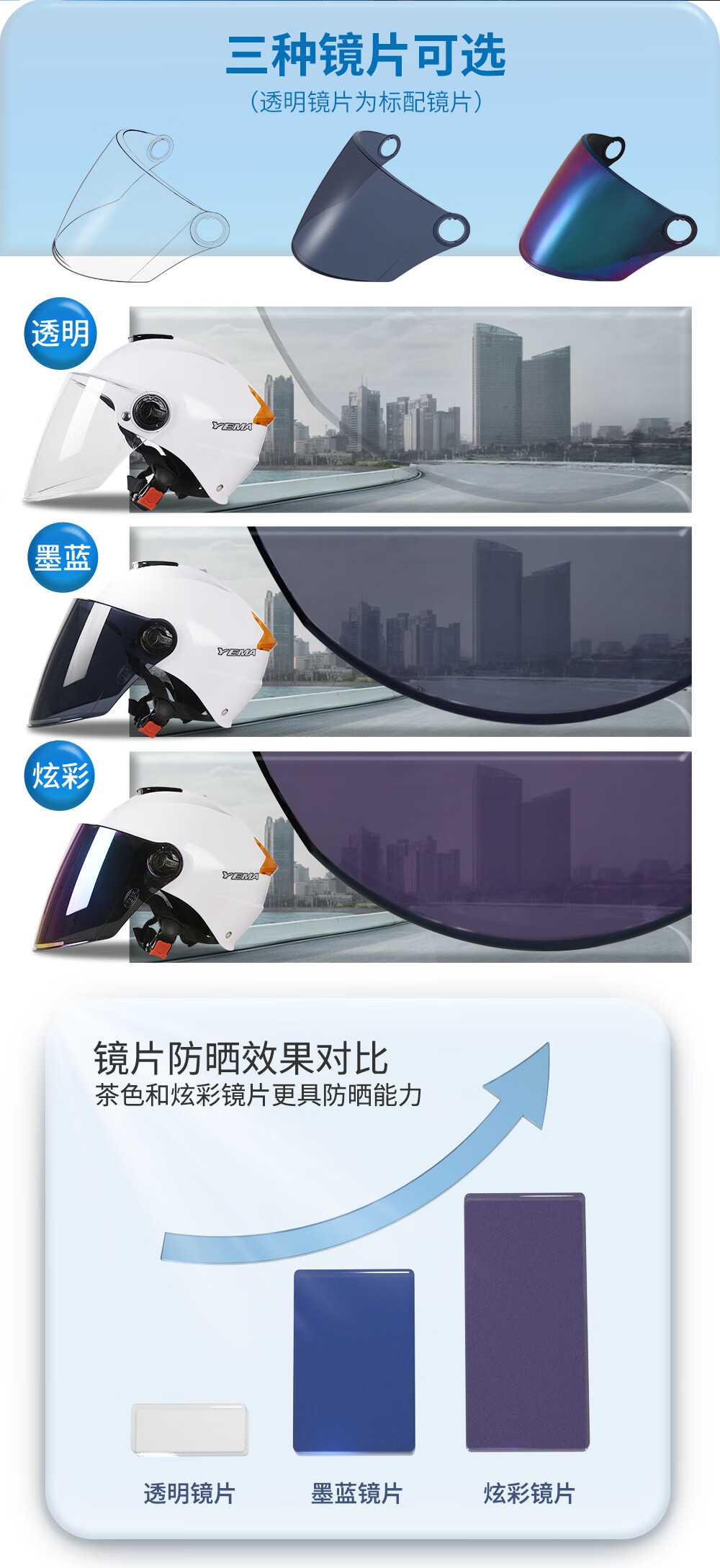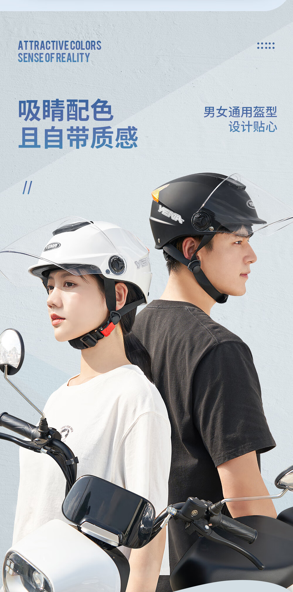 野马(YEMA)头盔夏季女电动车男3C认证轻便式四季半盔摩托车电瓶车夏盔安全帽 皮亚黑【透明镜】 均码