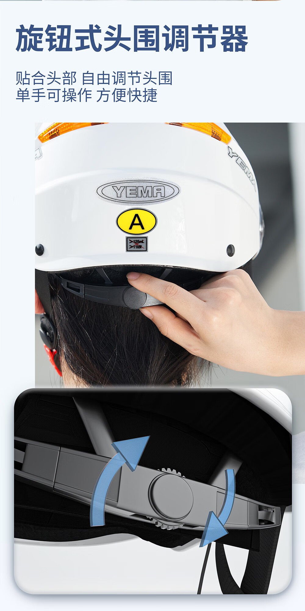 野马(YEMA)3C认证电动摩托车头盔男女四季通用半盔夏季防晒新国标电瓶车安全帽 四季-卡其白轮滑【透明长镜+墨蓝长镜】 均码-可调节
