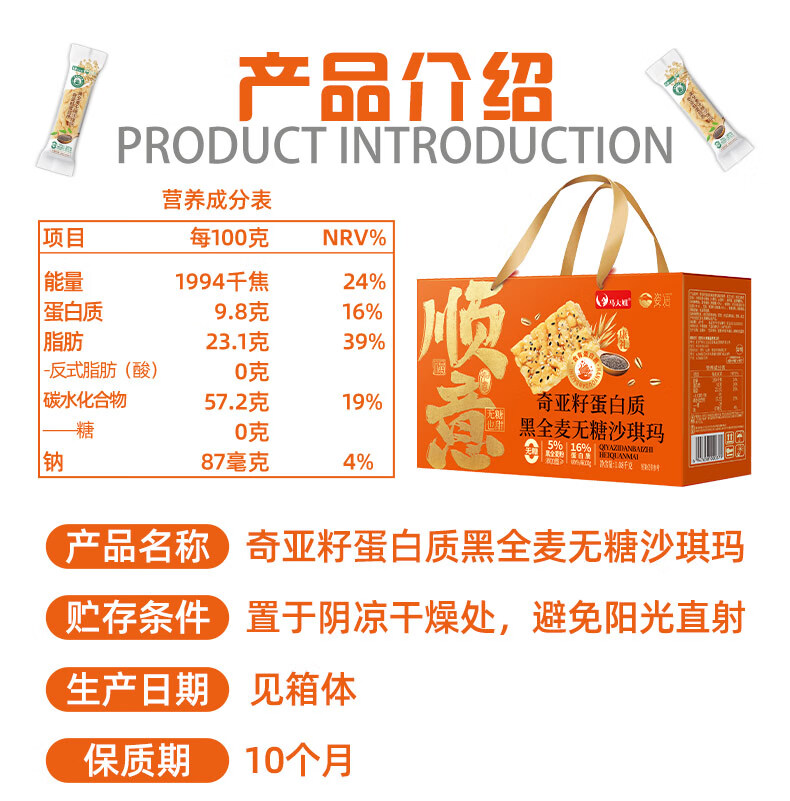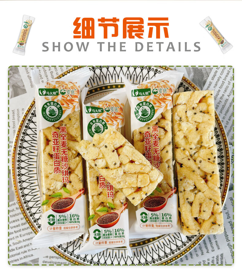 马大姐 无糖沙琪玛礼盒1.08kg 奇亚籽蛋白质黑全麦糕点礼盒零食早餐