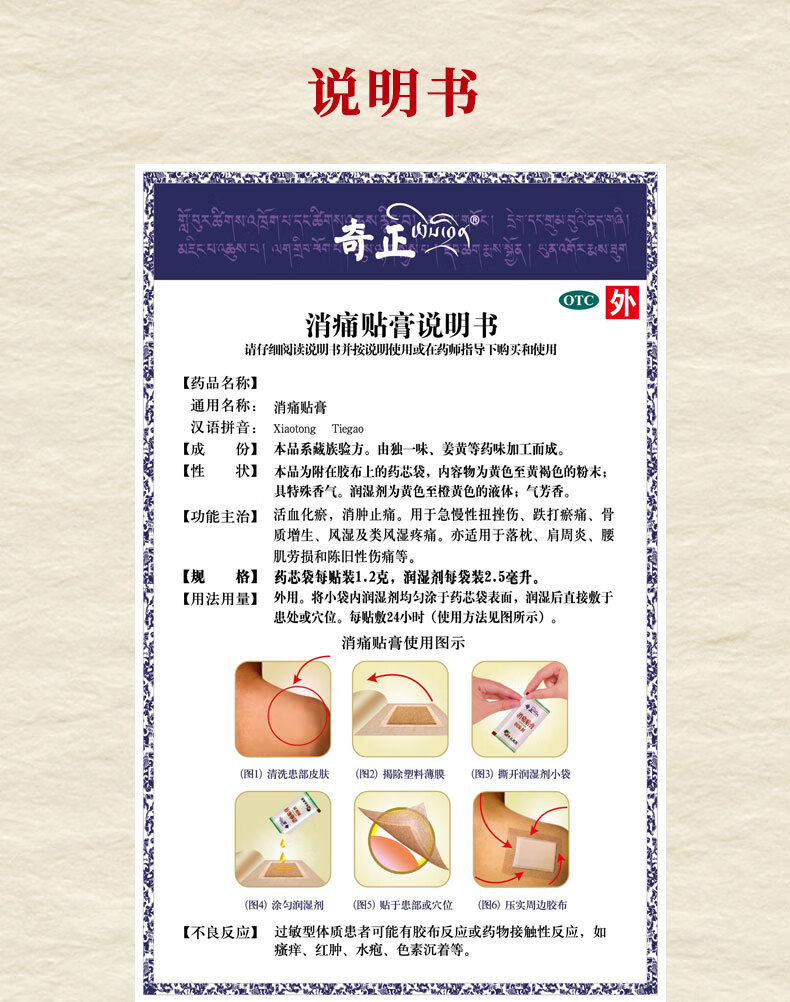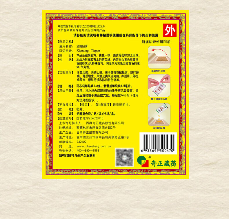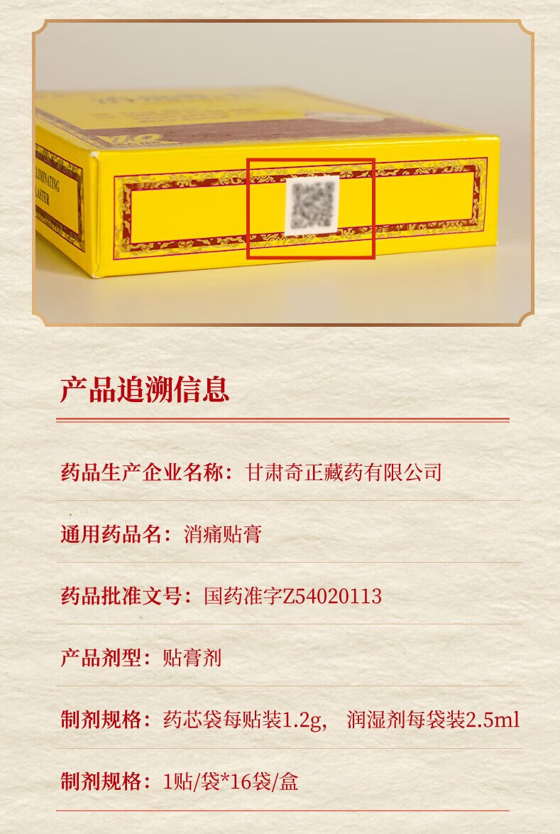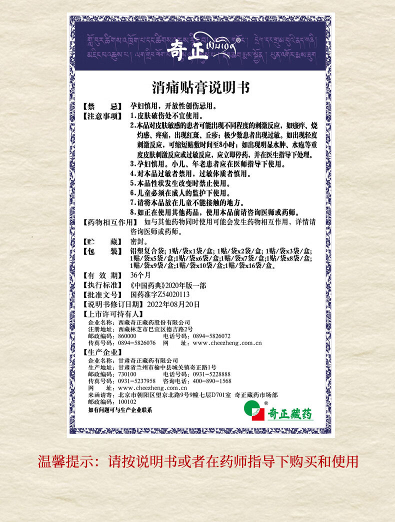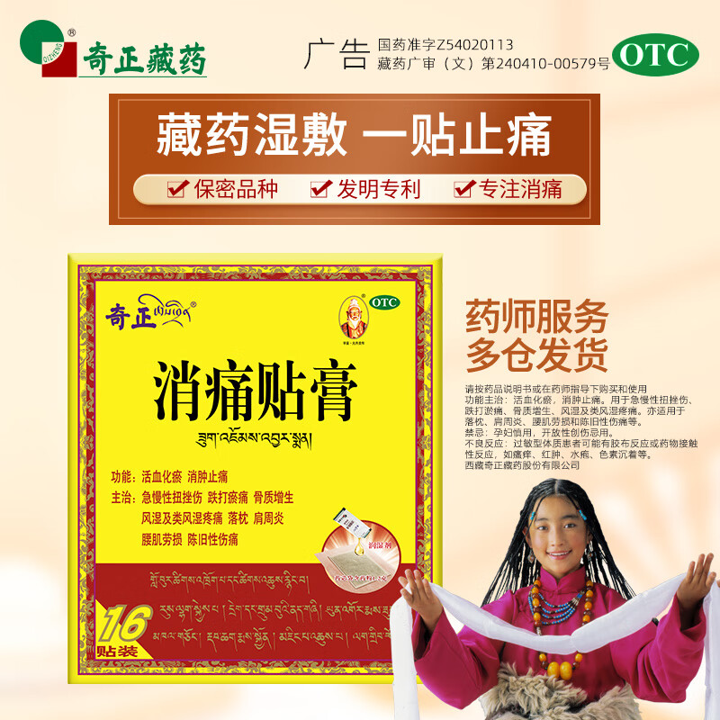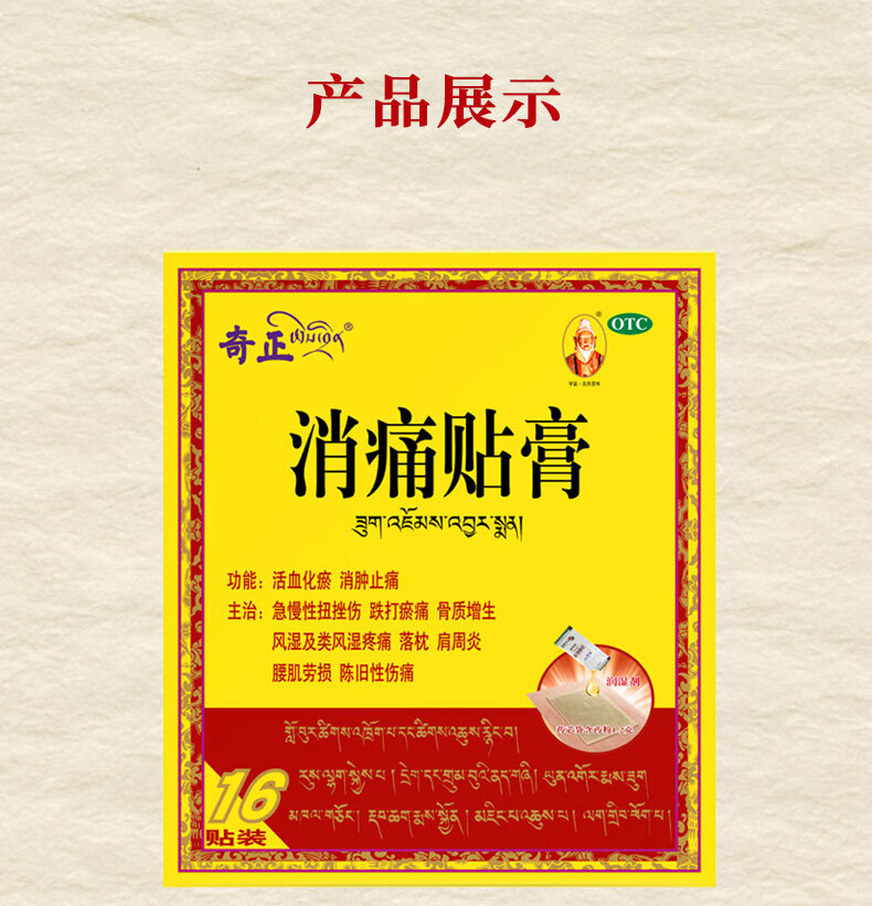 奇正藏药 消痛贴膏1贴/袋*16贴/盒膏药 活血化瘀 消肿止痛贴 风湿类风湿疼痛 腰肌劳损 骨质增生 陈旧性伤痛