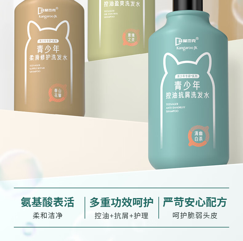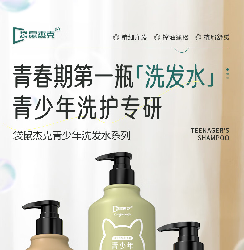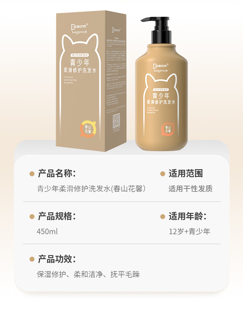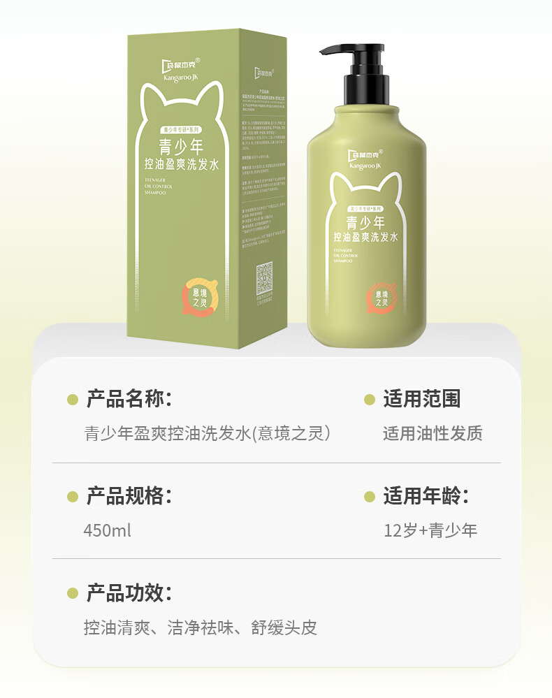 袋鼠杰克青少年儿童洗发水青春期专用控油抗屑修护初中学生男孩女孩洗发露 【意境之灵】控油洗发水450ml*1