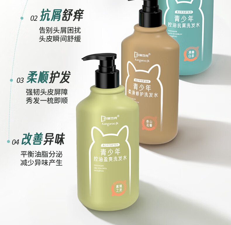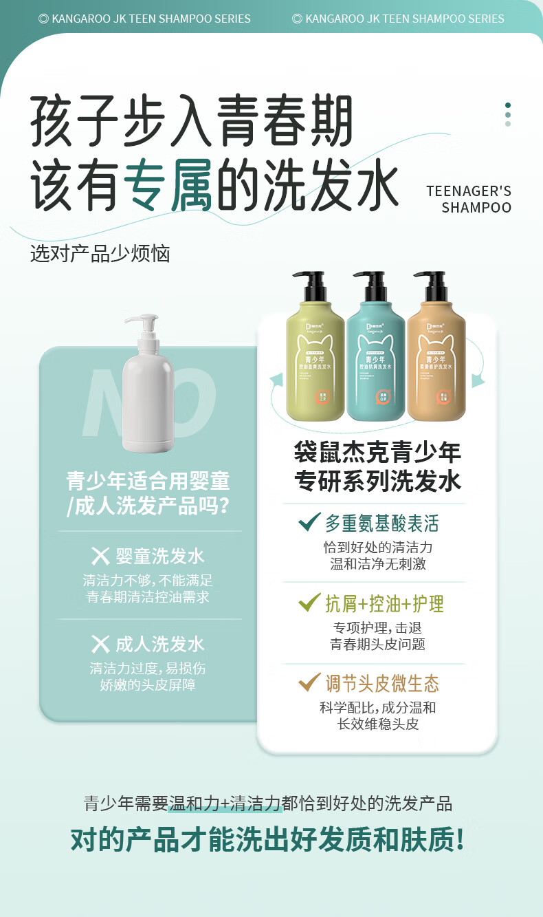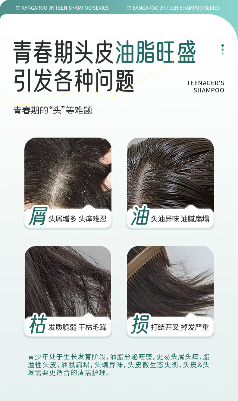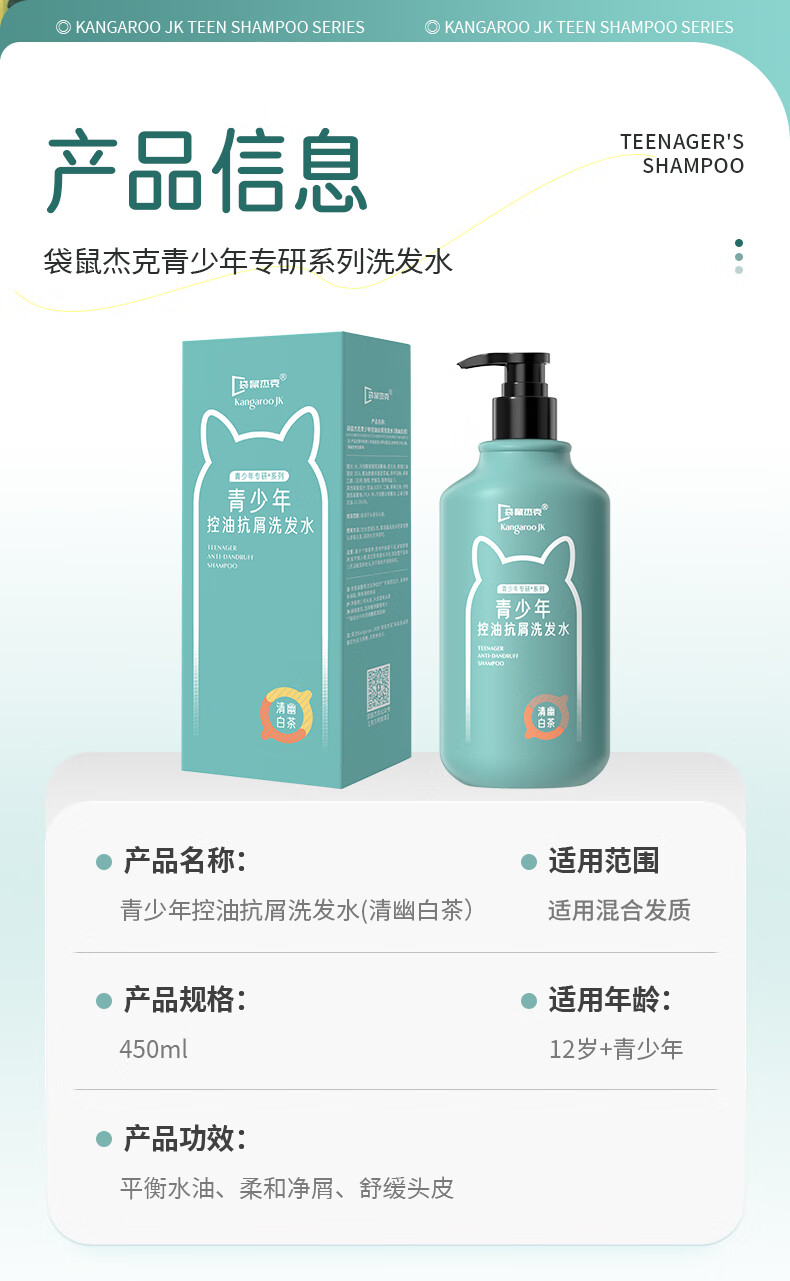 袋鼠杰克青少年儿童洗发水青春期专用控油抗屑修护初中学生男孩女孩洗发露 【意境之灵】控油洗发水450ml*1