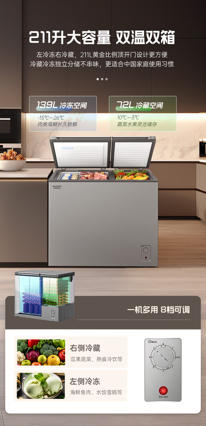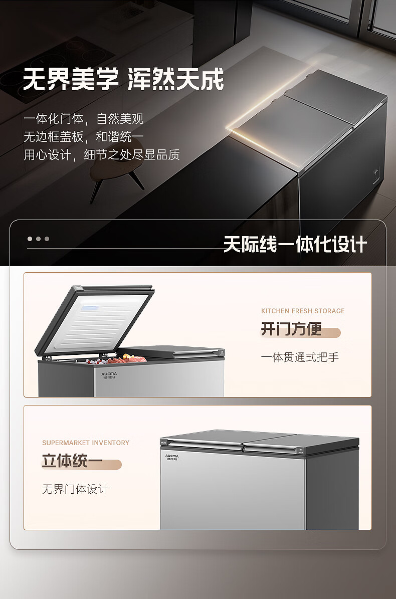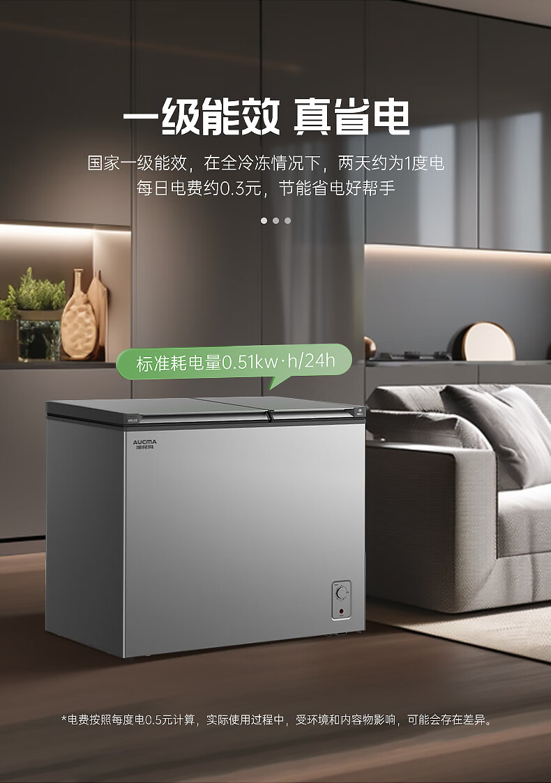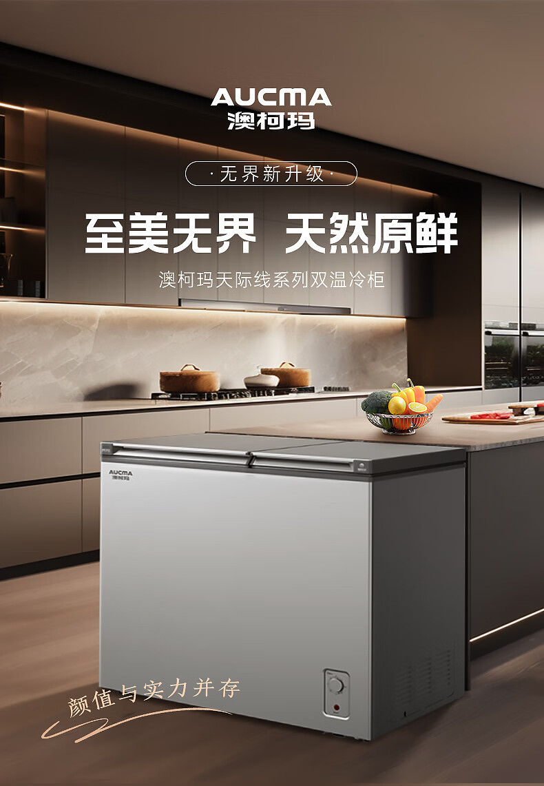 澳柯玛(AUCMA)211升家用冰柜 双温双箱冷柜 冷藏冷冻卧式冰箱 一级能效 无界天际线 BCD-211CSNE 国家补贴20%
