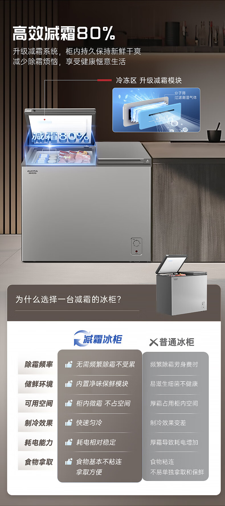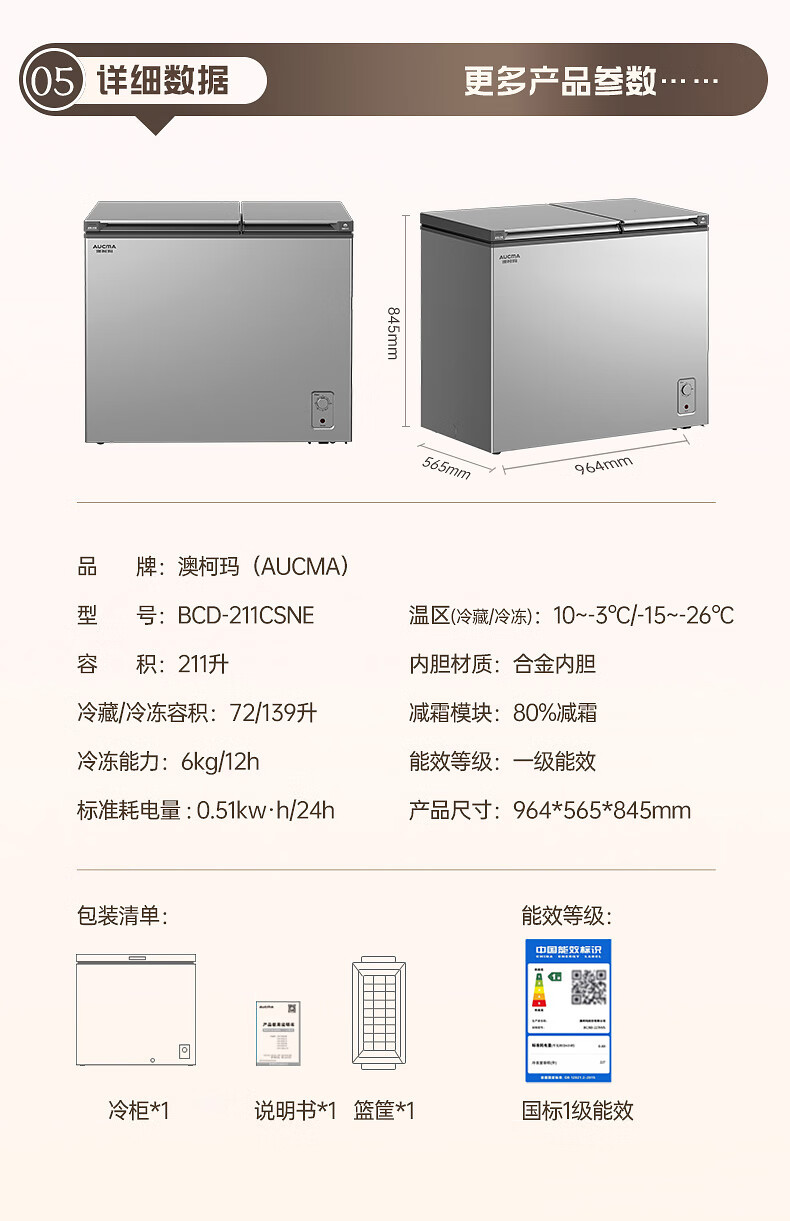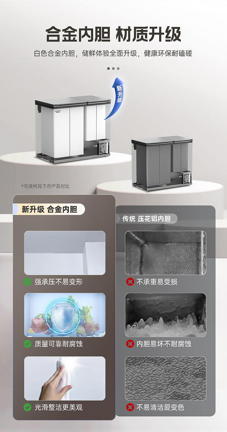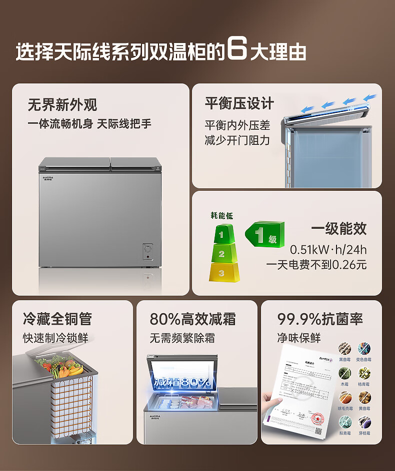 澳柯玛(AUCMA)211升家用冰柜 双温双箱冷柜 冷藏冷冻卧式冰箱 一级能效 无界天际线 BCD-211CSNE 国家补贴20%