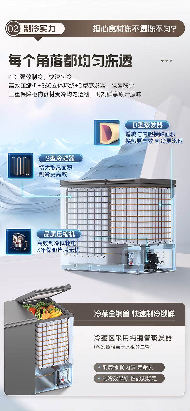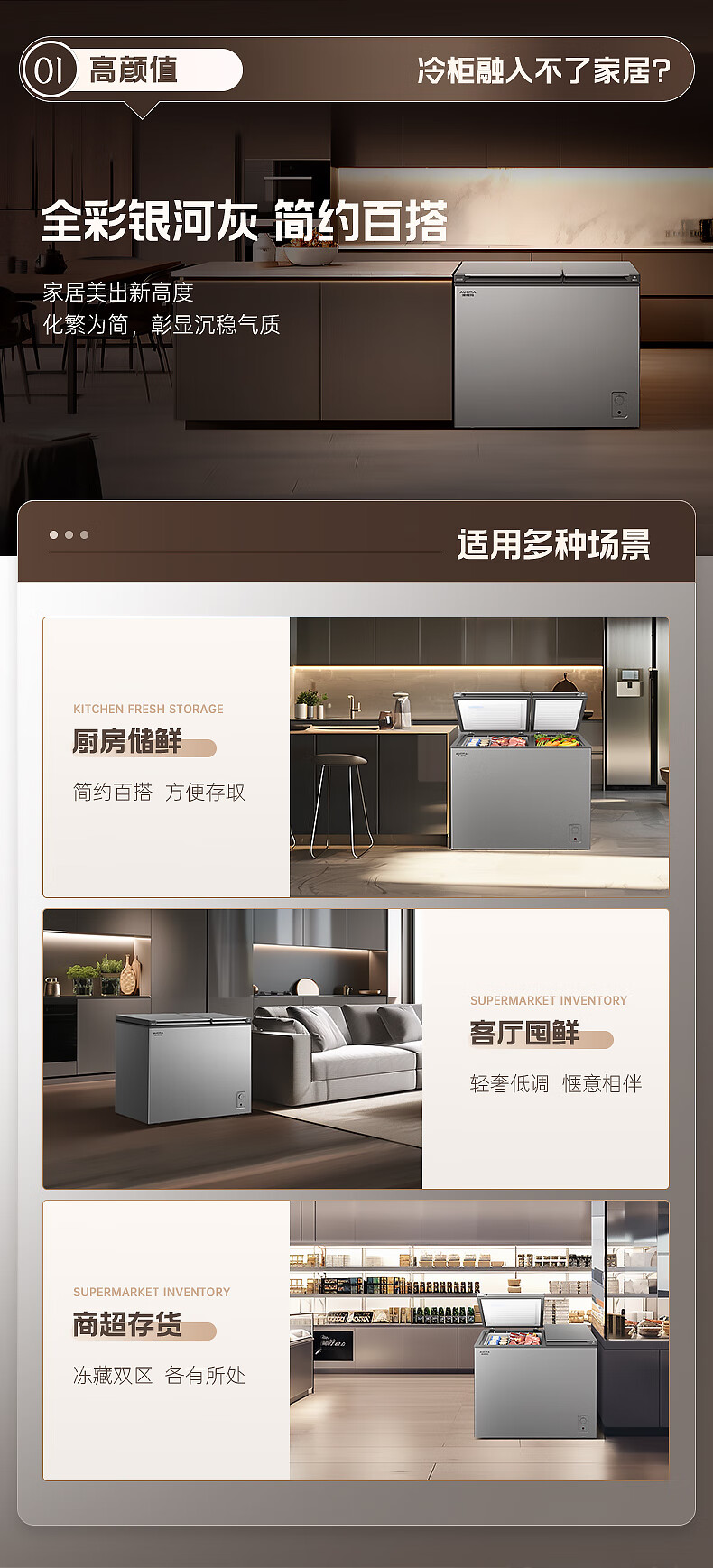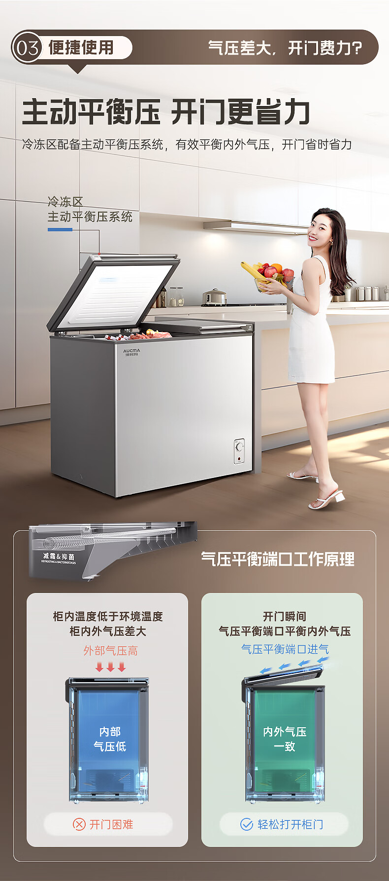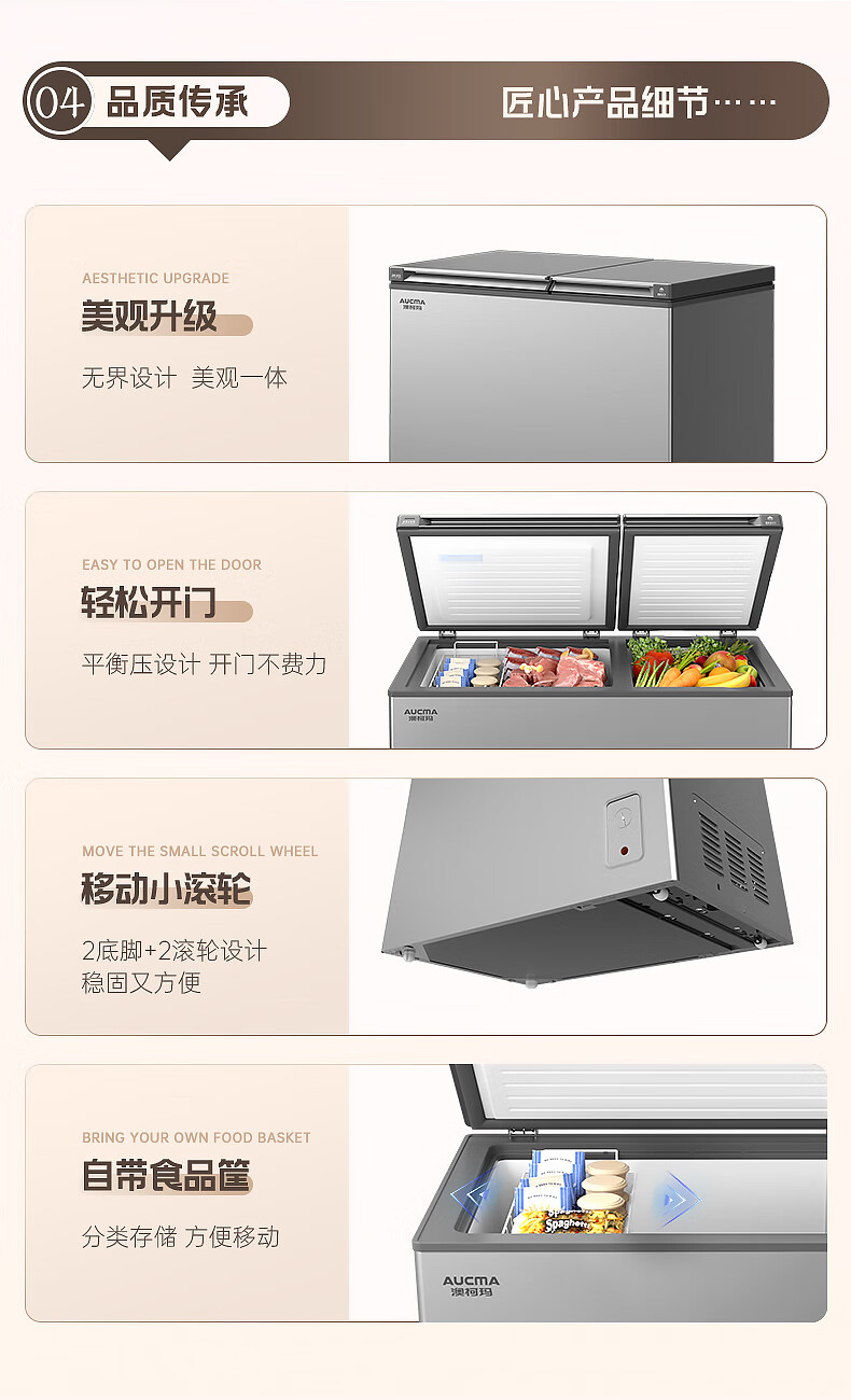 澳柯玛(AUCMA)211升家用冰柜 双温双箱冷柜 冷藏冷冻卧式冰箱 一级能效 无界天际线 BCD-211CSNE 国家补贴20%