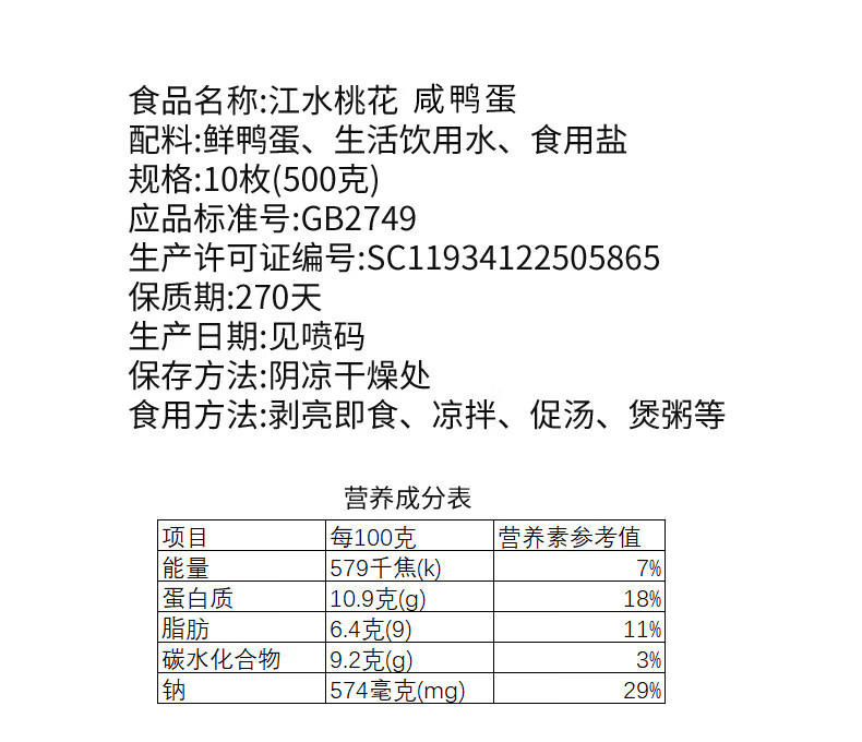 江水桃花咸鸭蛋红心流油起沙熟盐蛋开袋即食 10枚500克 真空独立包装