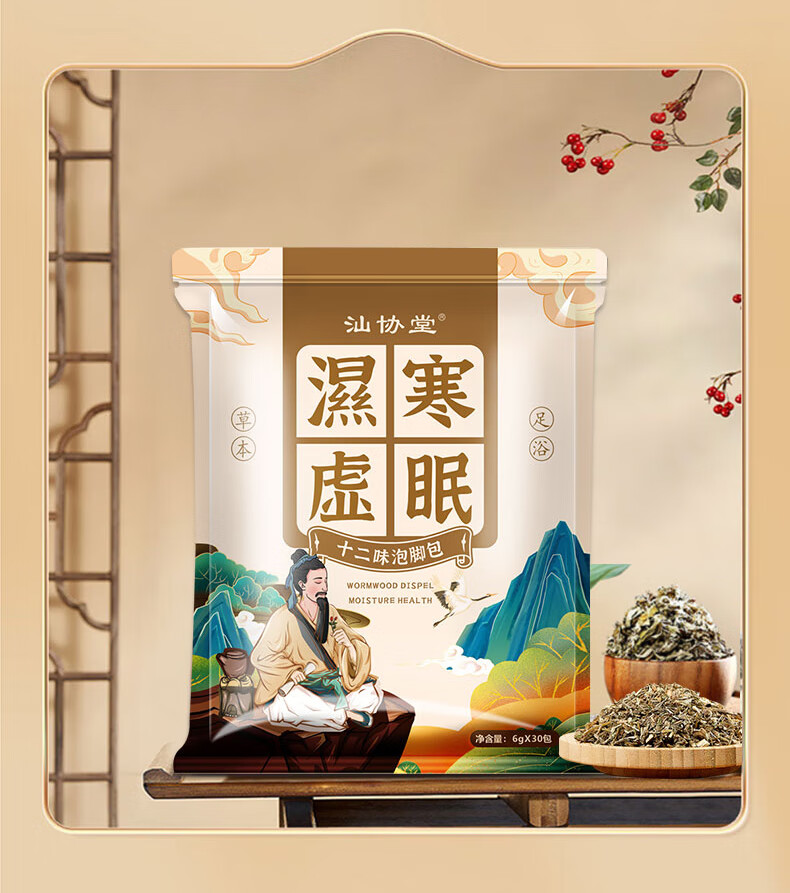 汕协堂十二味泡脚药包中草本艾草叶养生足浴包泡脚粉瑶浴湿气寒疲劳男女 6g*90包 养生泡脚药包