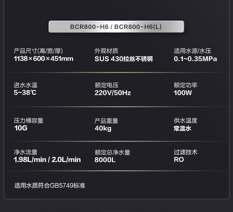 AO商用中央净水主机800G大流量反渗透净水器商用净水设备 BCR800-H6101