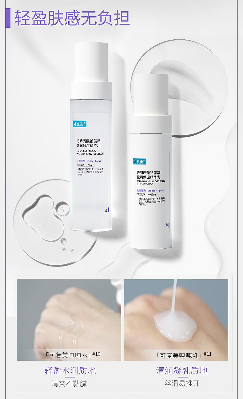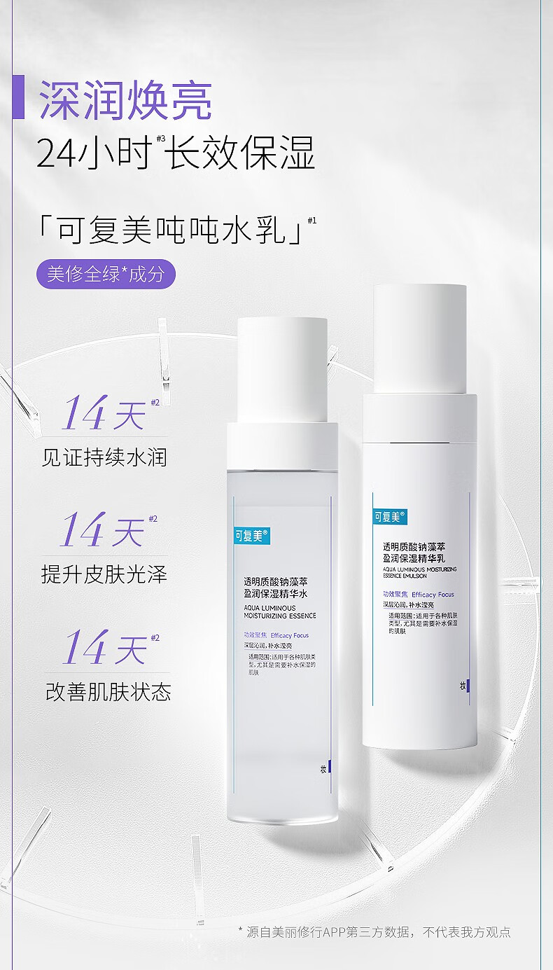 可复美吨吨水乳套装补水保湿水乳女换季干燥敏感肌适用护肤品爽肤水乳液 水120ml+乳80ml 特惠