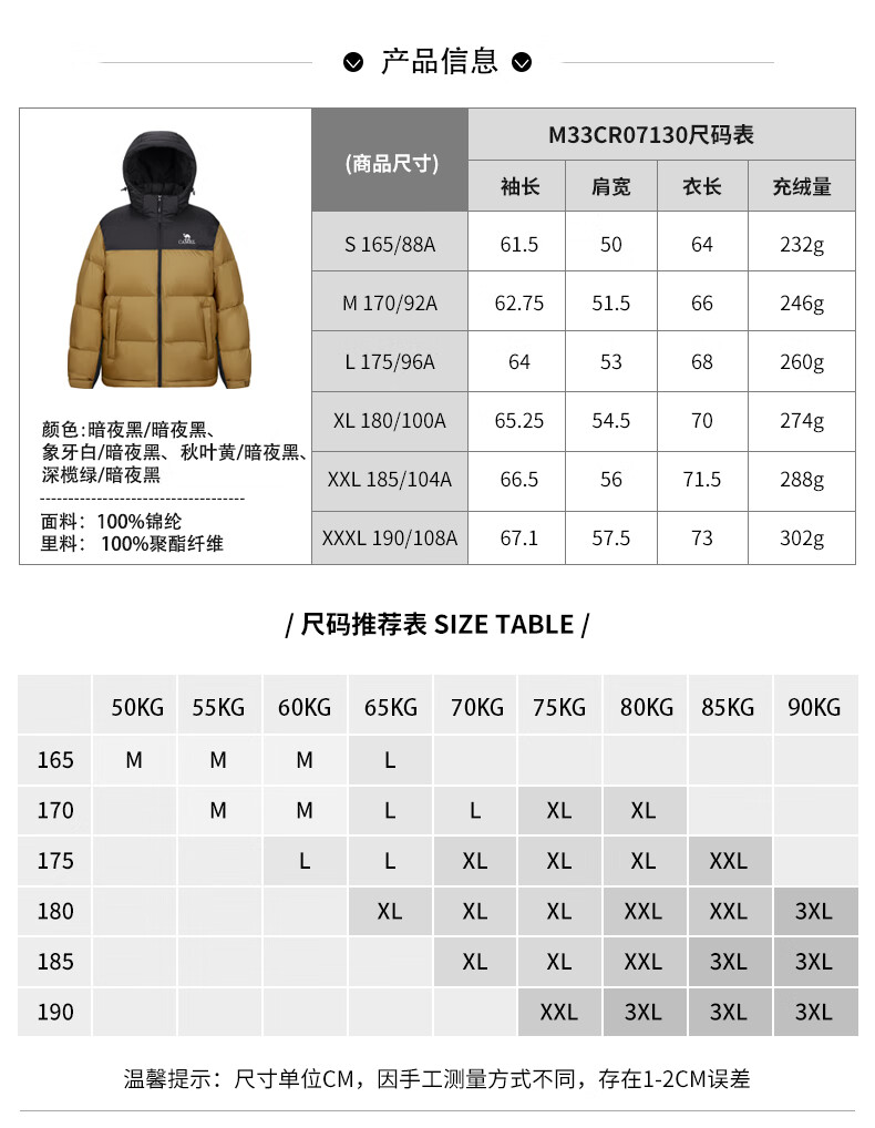 骆驼火山羽绒服2.0王俊凯同款【王者凯甲】男士加厚抗寒保暖外套冬季