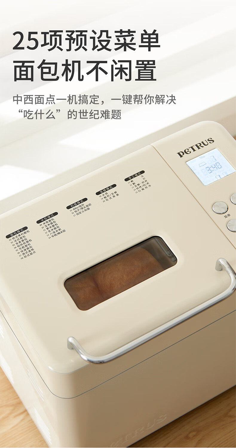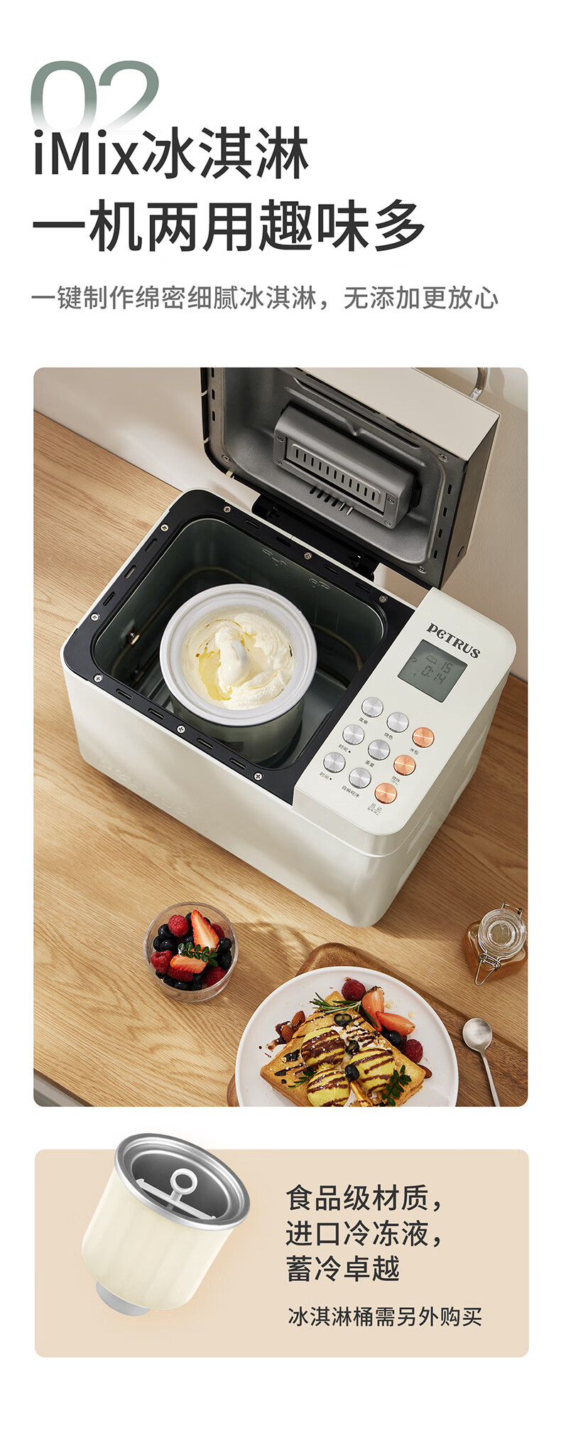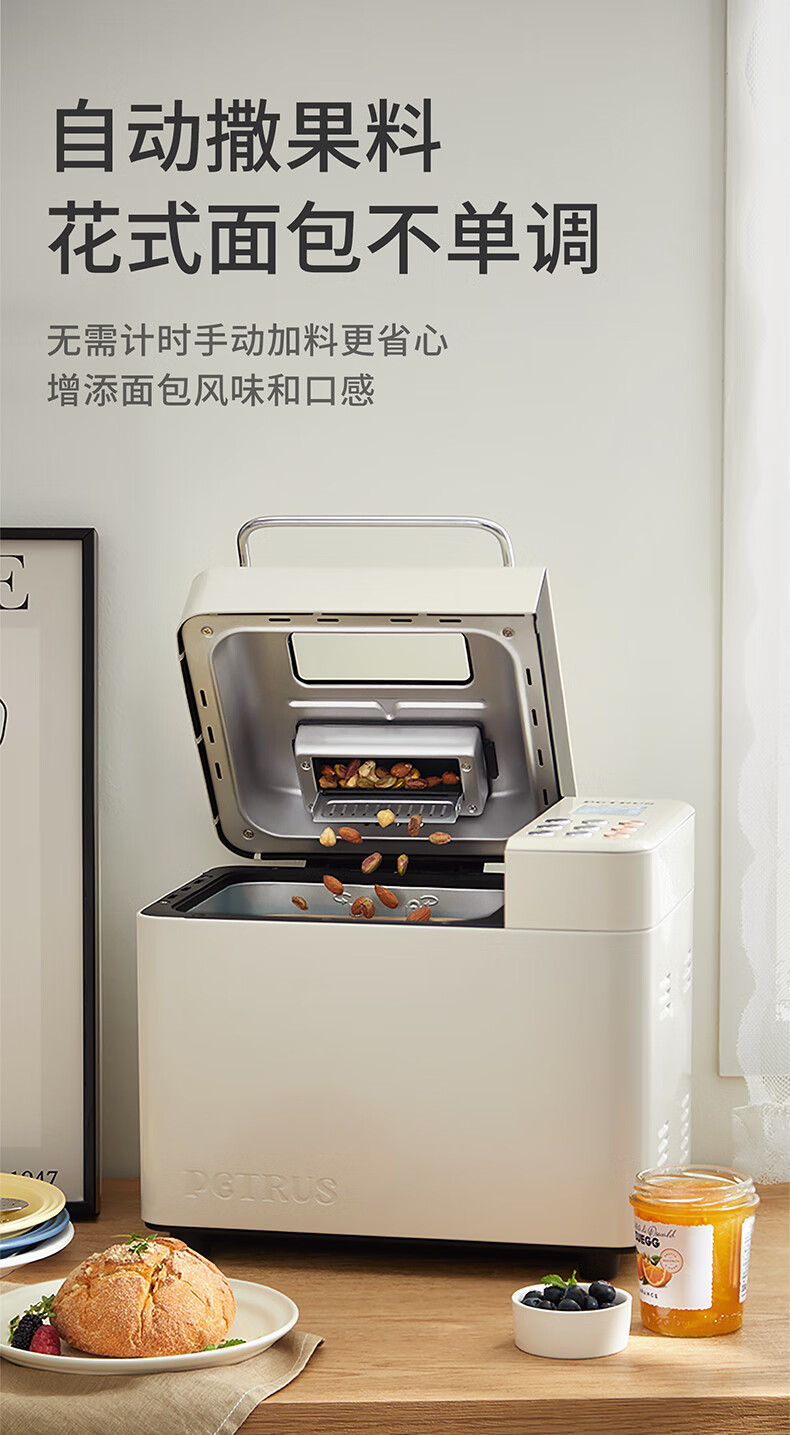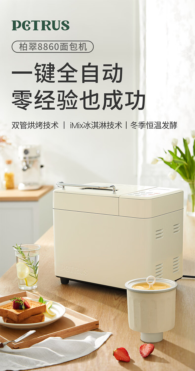 柏翠烤面包机家用全自动三明治早餐揉面和面机多士炉多功能双管撒果料冰淇淋PE8860 节日礼物 米白色【咨询有大惊喜】
