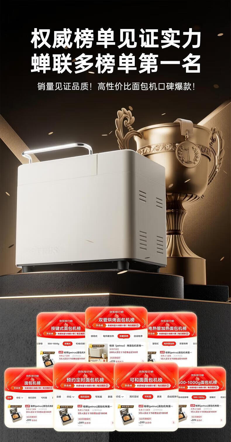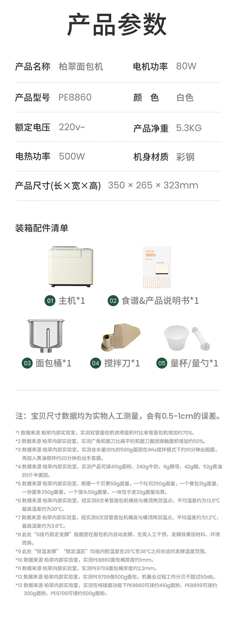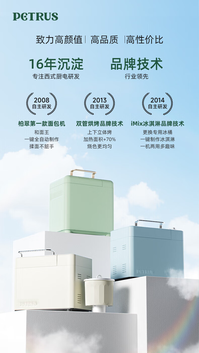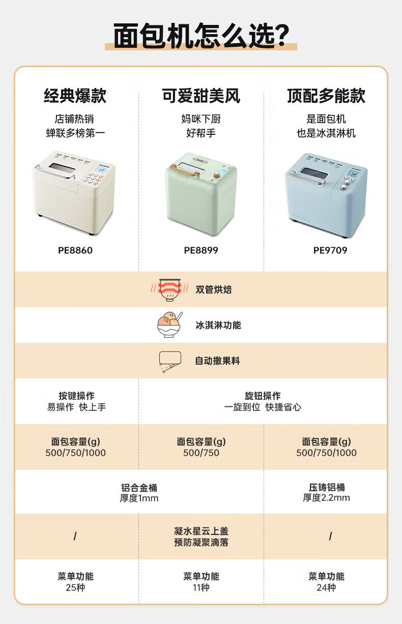 柏翠烤面包机家用全自动三明治早餐揉面和面机多士炉多功能双管撒果料冰淇淋PE8860 节日礼物 米白色【咨询有大惊喜】