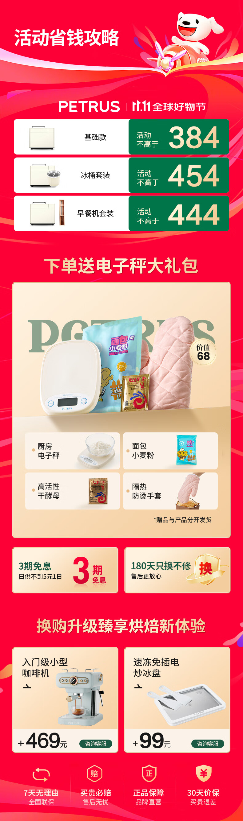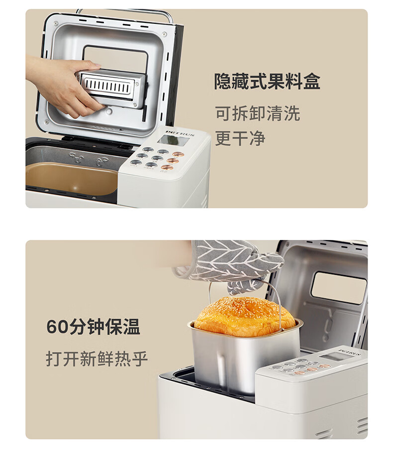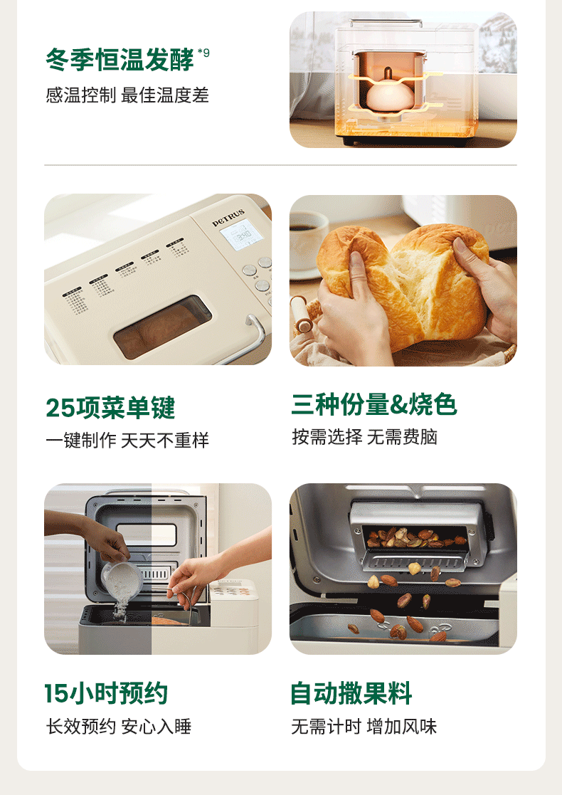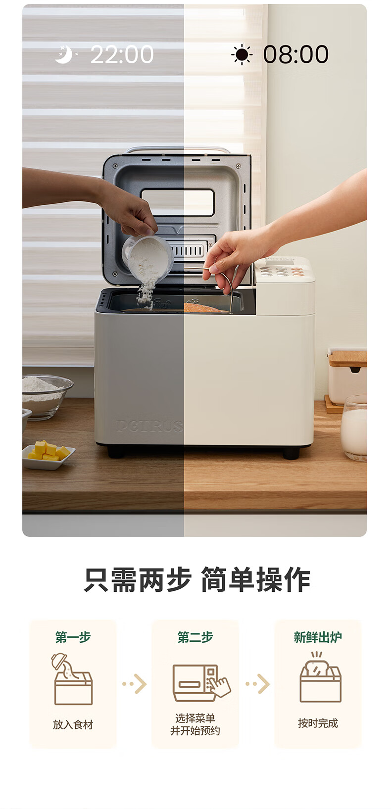 柏翠烤面包机家用全自动三明治早餐揉面和面机多士炉多功能双管撒果料冰淇淋PE8860 节日礼物 米白色【咨询有大惊喜】