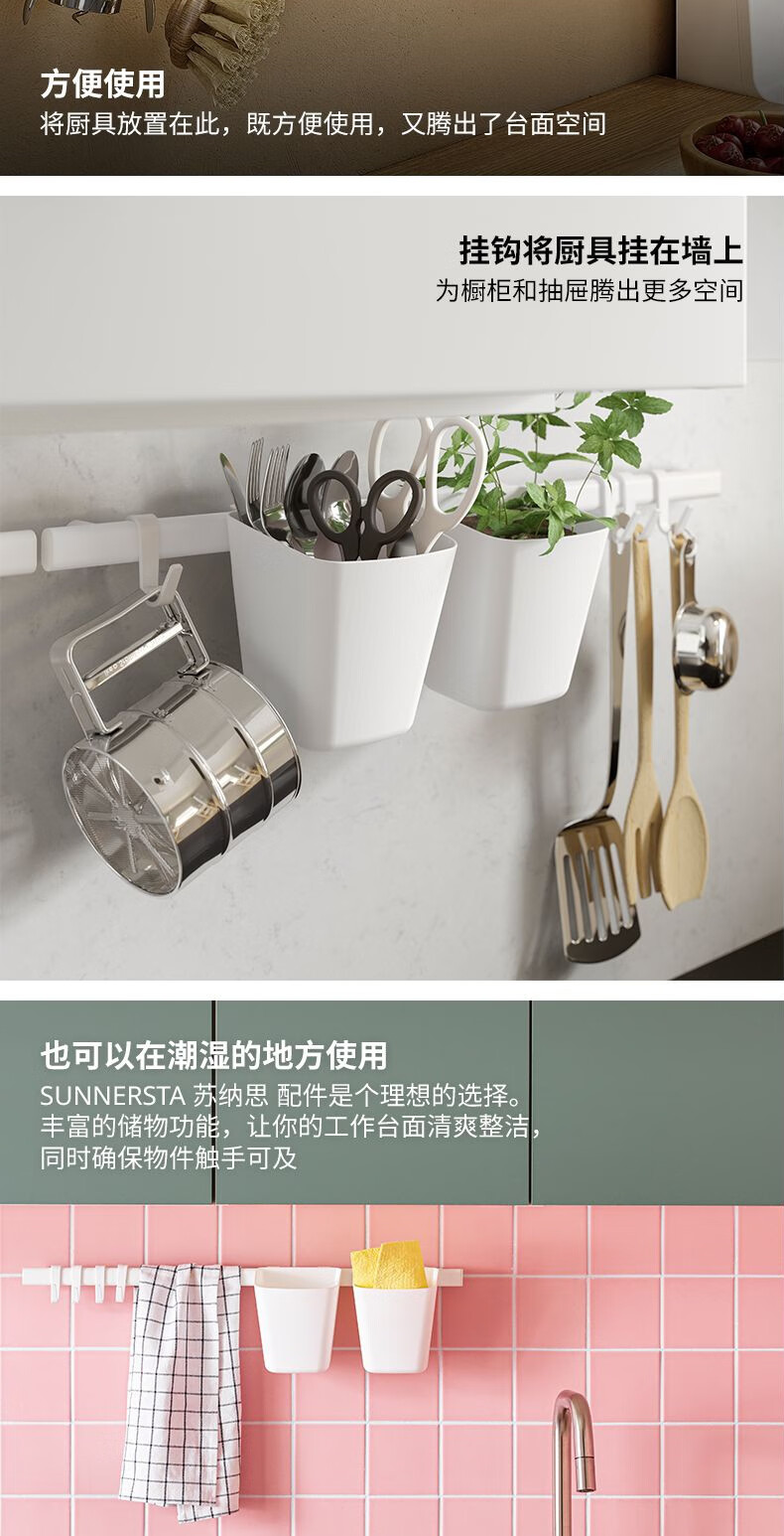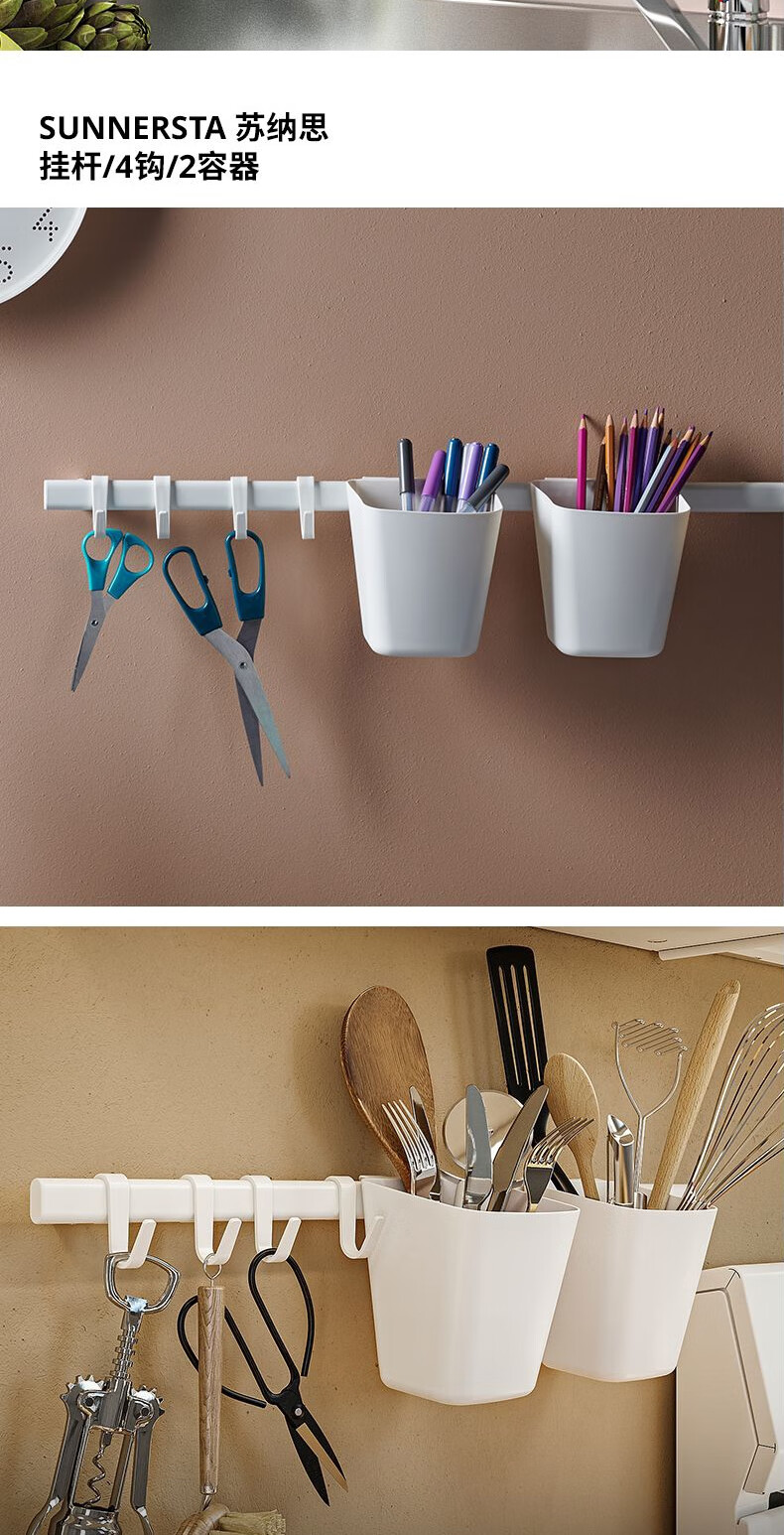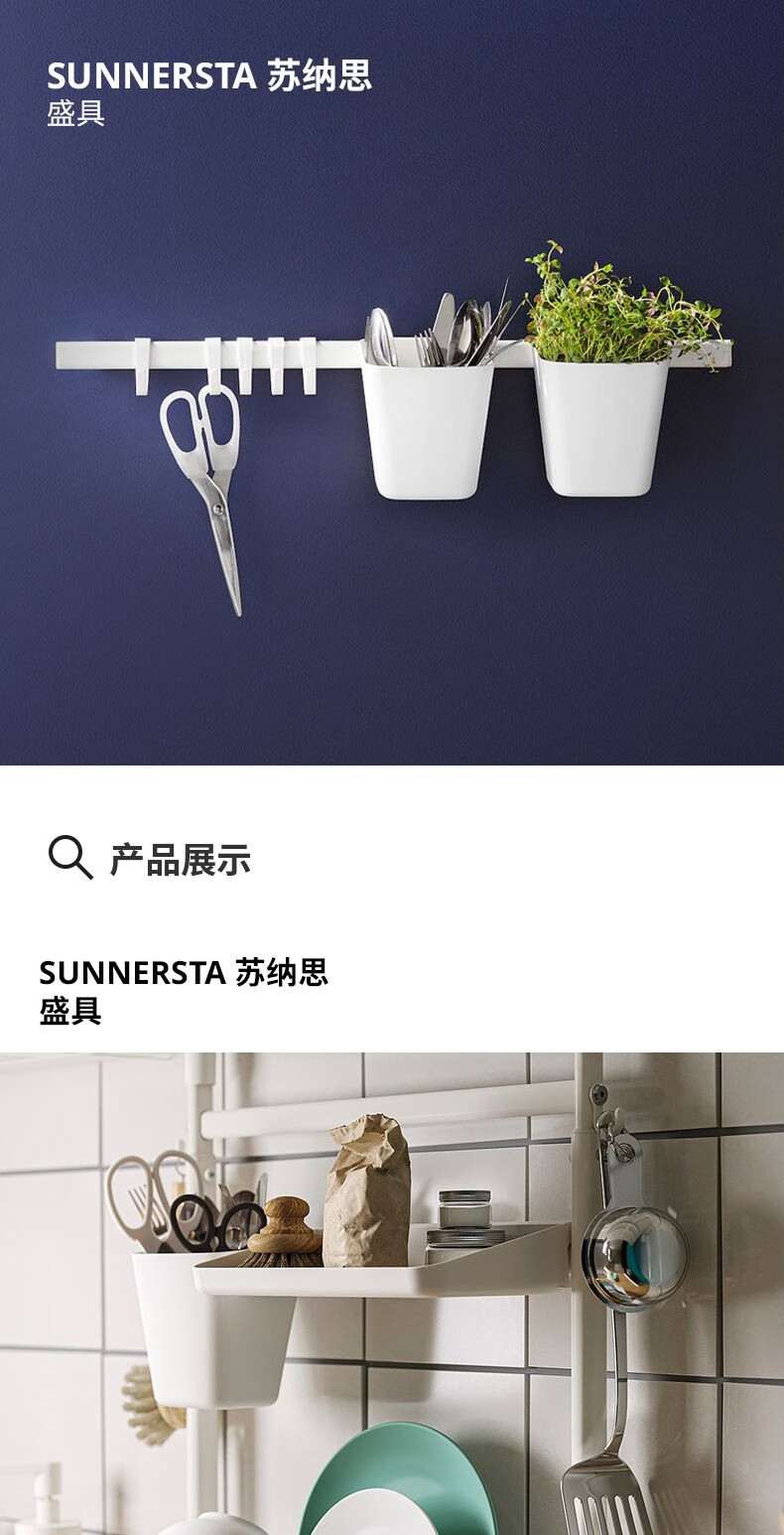 宜家(IKEA)SUNNERSTA苏纳思盛具现代北欧分类收纳盒多色收纳筐 白色盛具(不含挂钩)*2