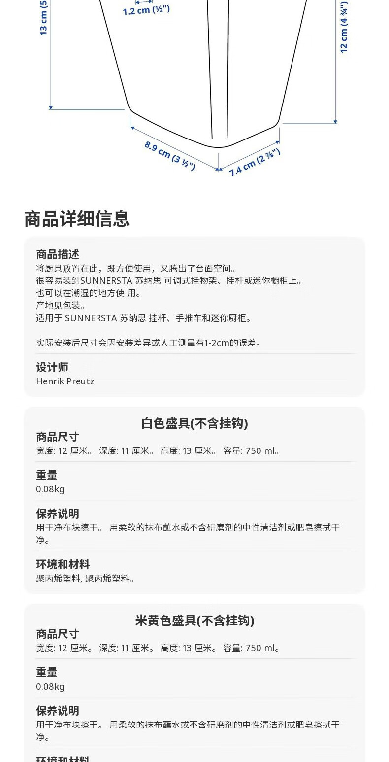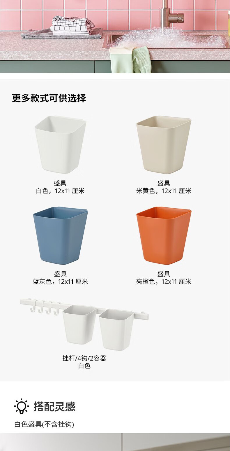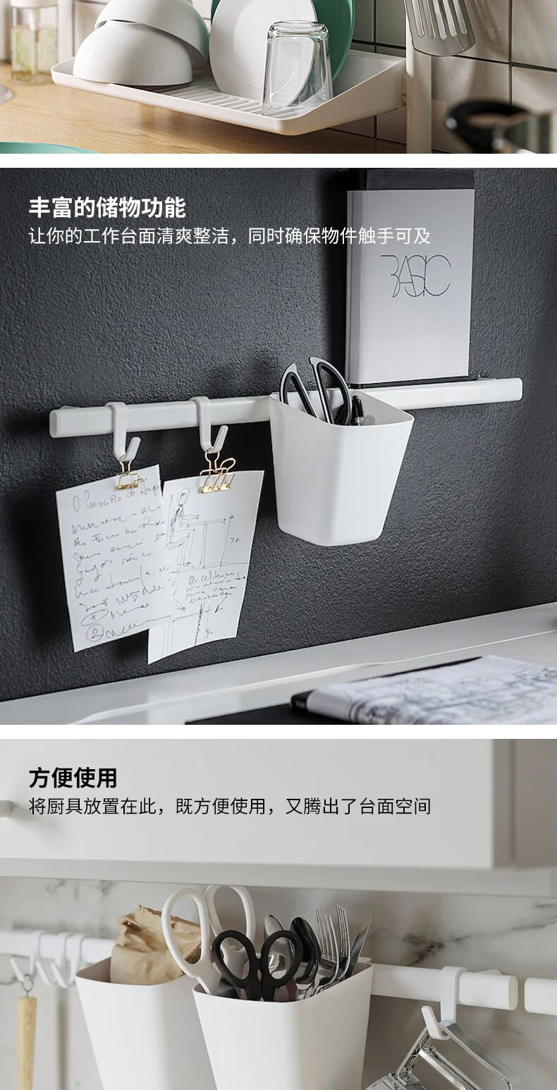 宜家(IKEA)SUNNERSTA苏纳思盛具现代北欧分类收纳盒多色收纳筐 白色盛具(不含挂钩)*2