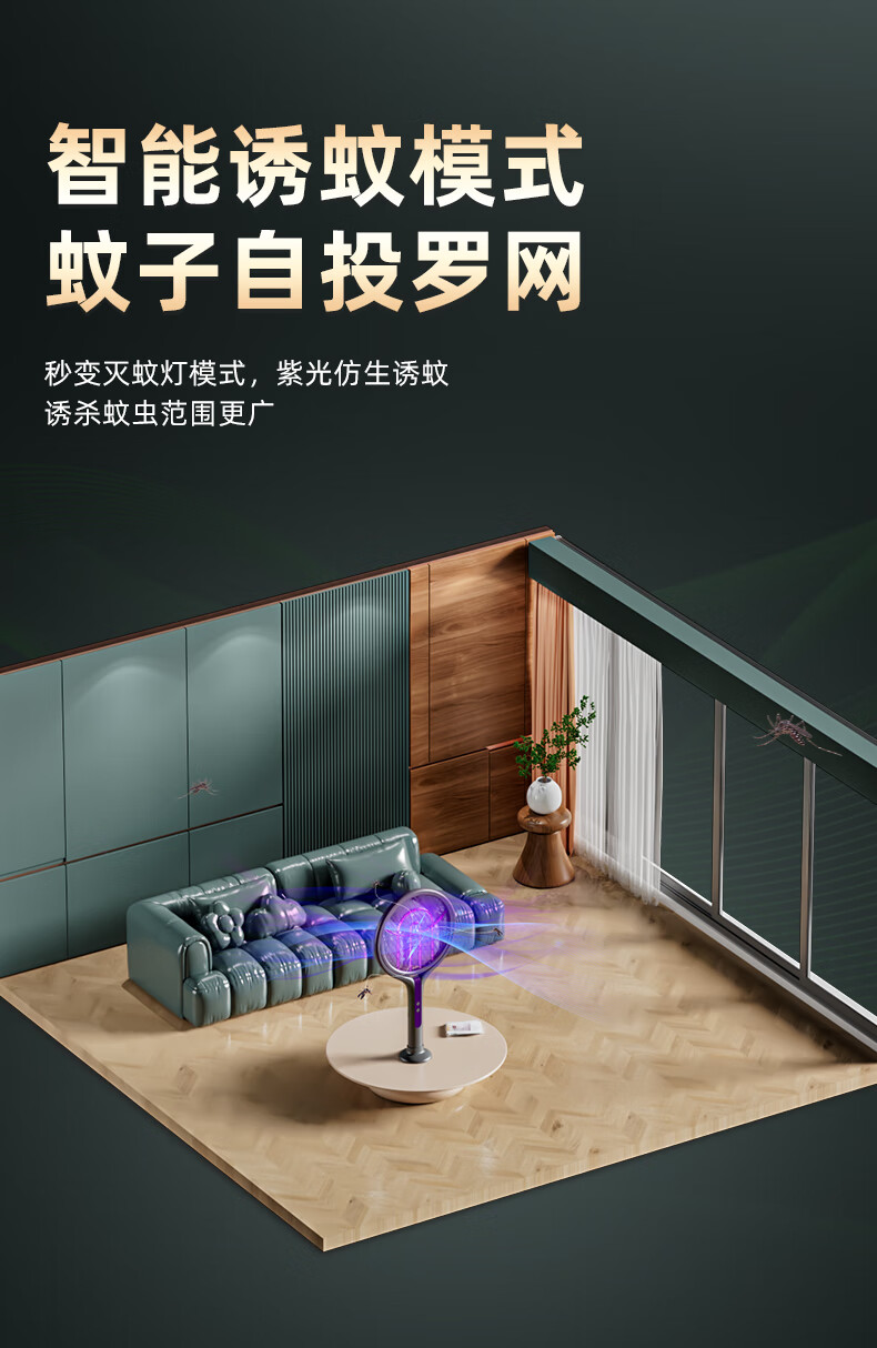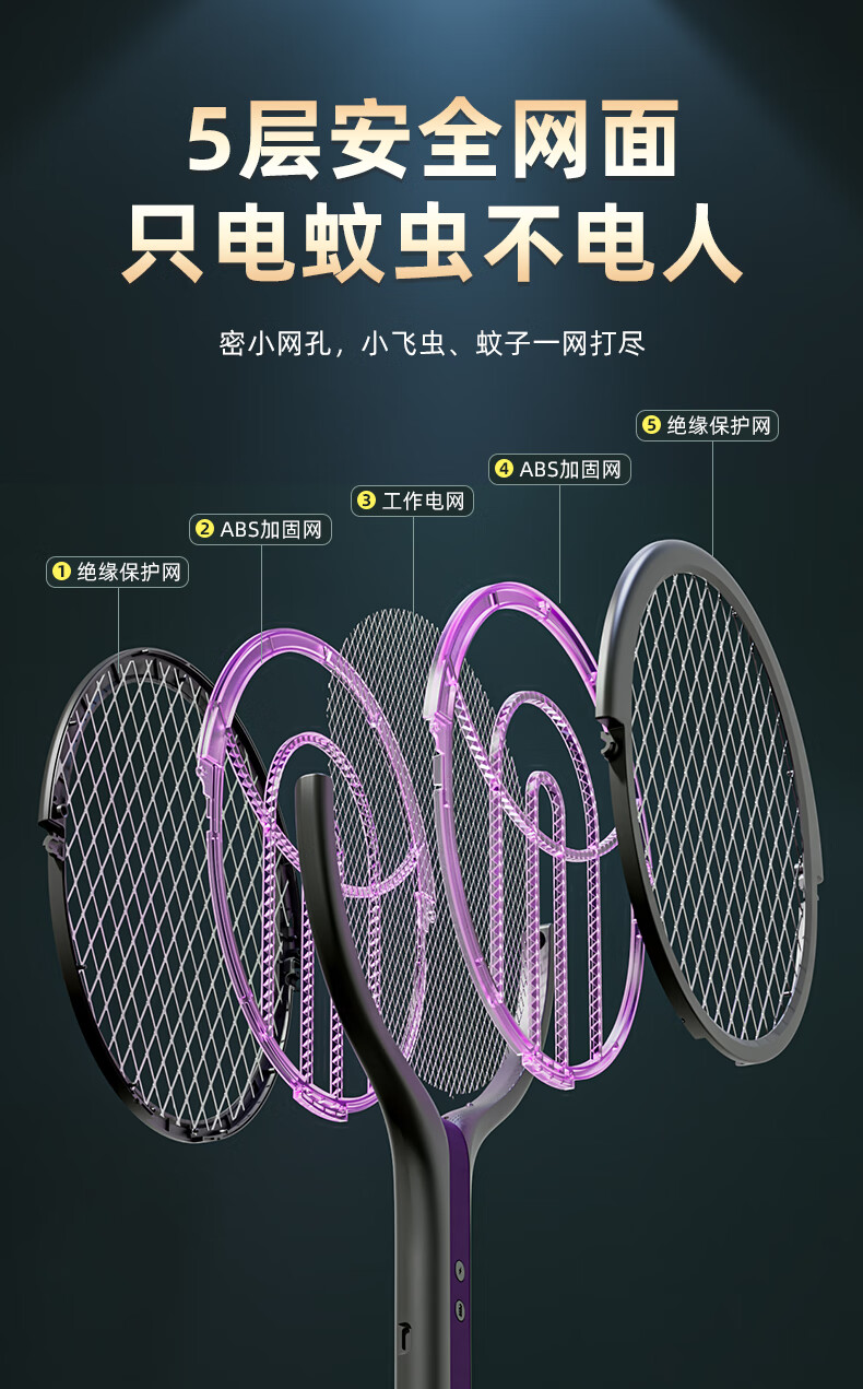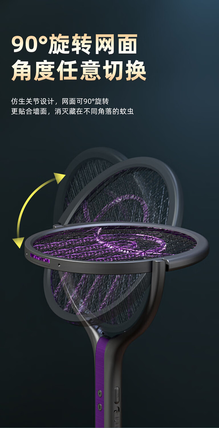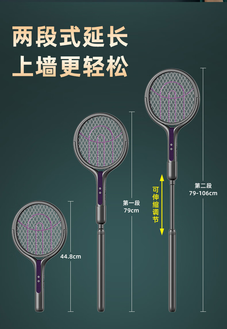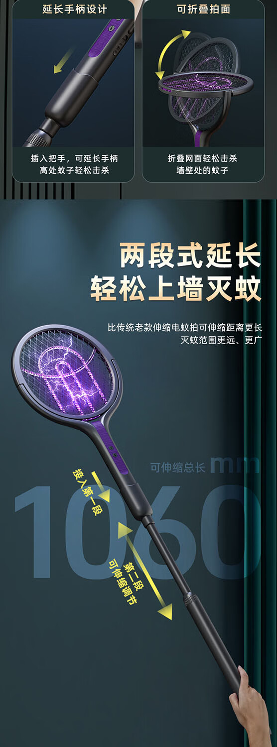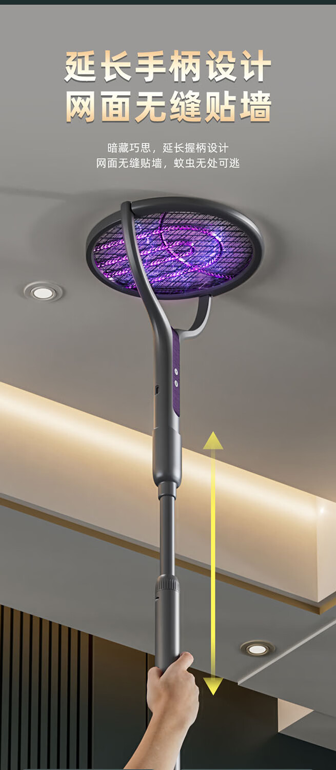 电蚊拍灭蚊灯二合一驱蚊灭蚊神器灭蚊拍苍蝇拍苍蝇神器灭蝇器 电蚊拍可伸缩延长至106cm