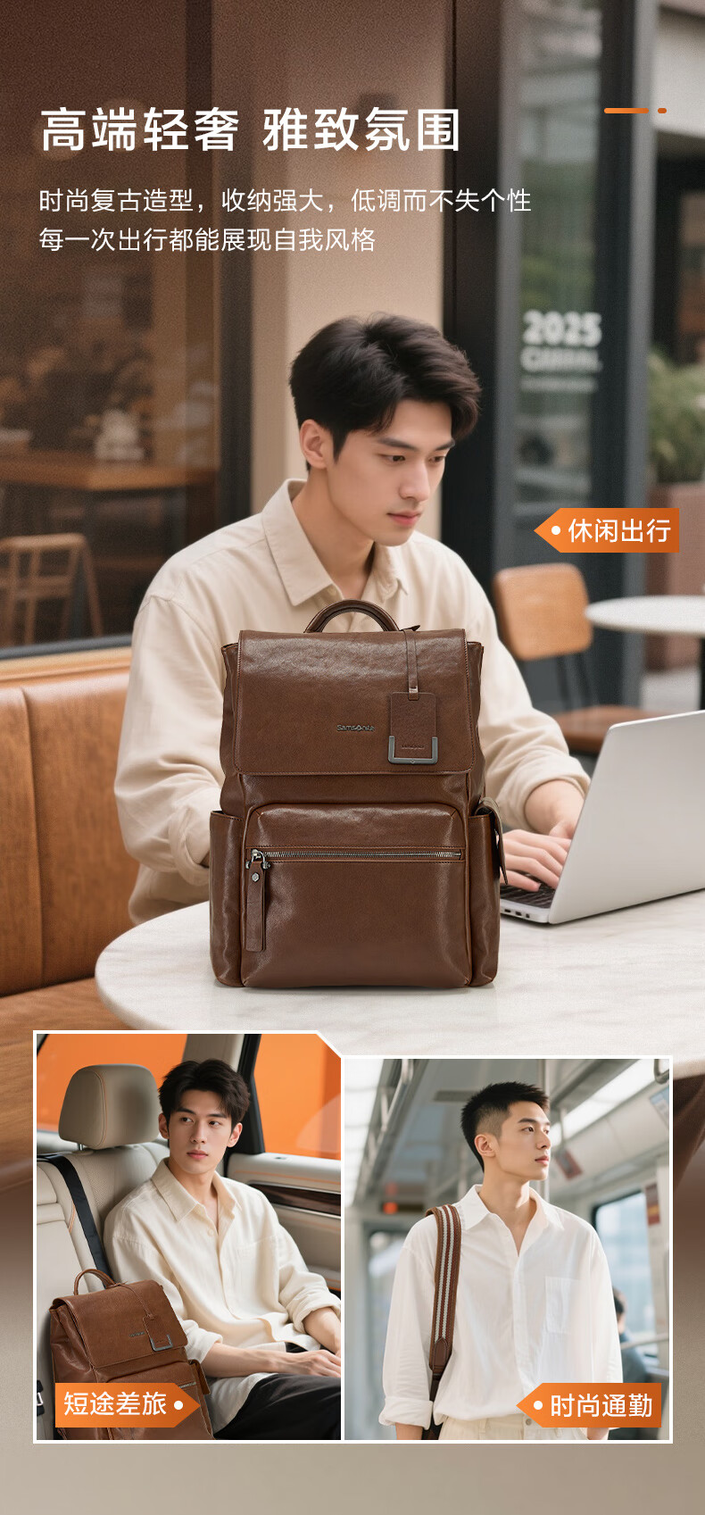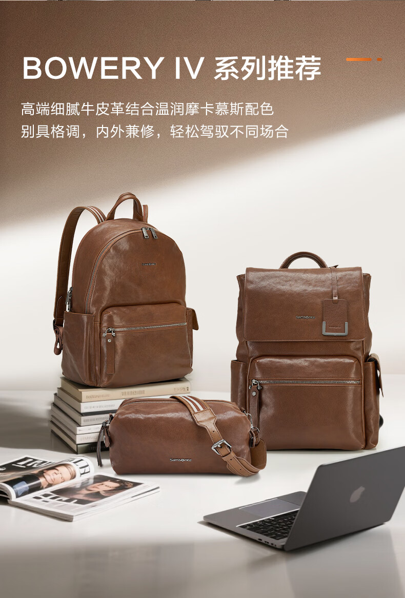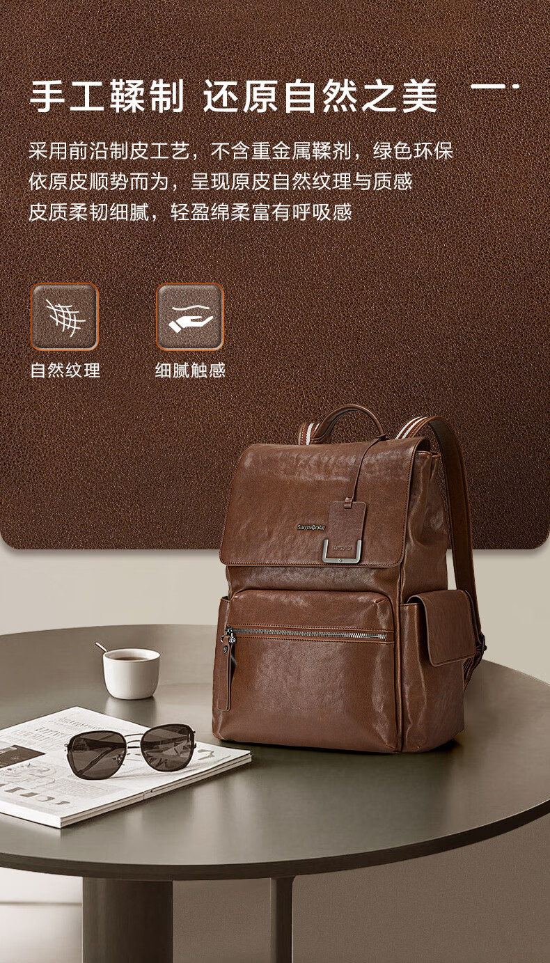新秀丽(Samsonite)男士轻奢双肩包大容量电脑包时尚复古轻便旅行背包男士礼物NS1