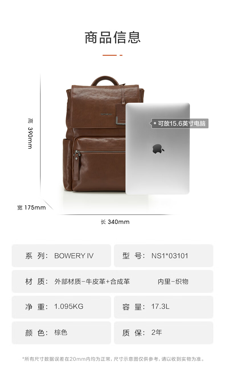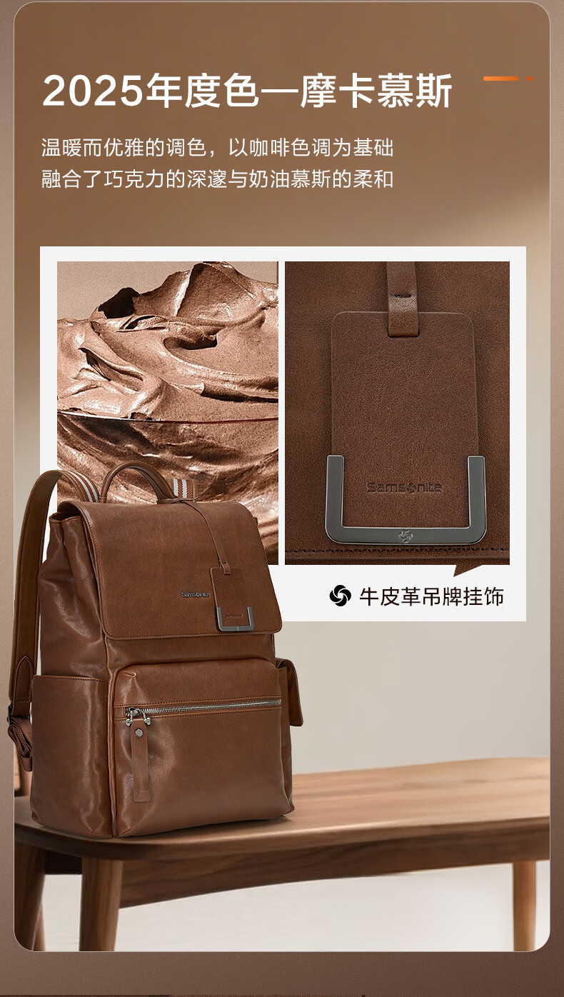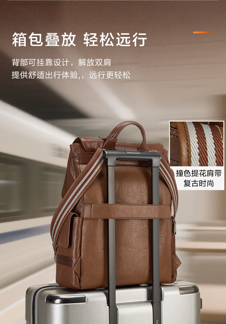 新秀丽(Samsonite)男士轻奢双肩包大容量电脑包时尚复古轻便旅行背包男士礼物NS1