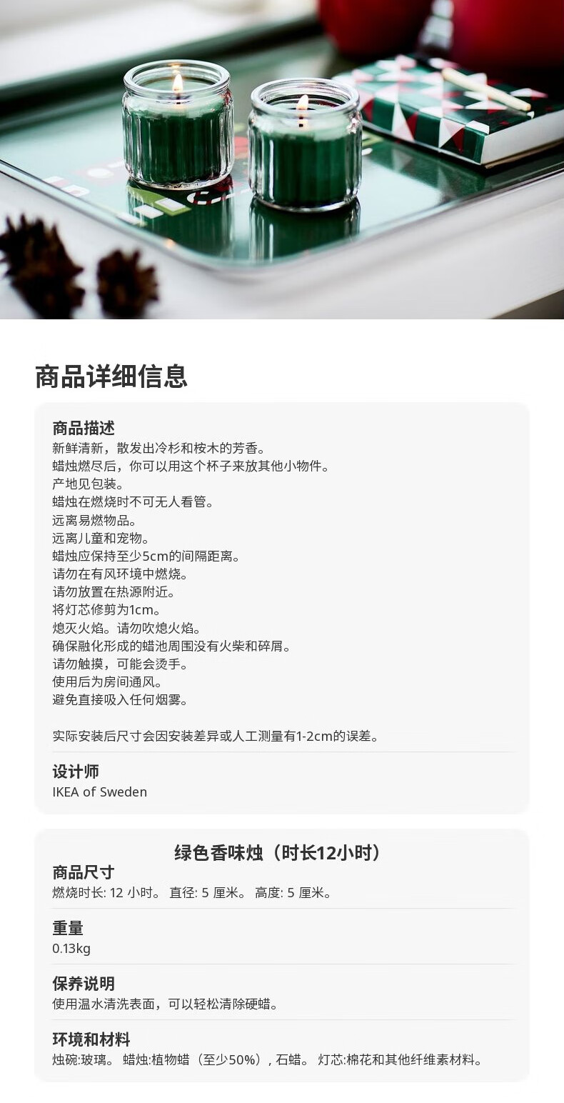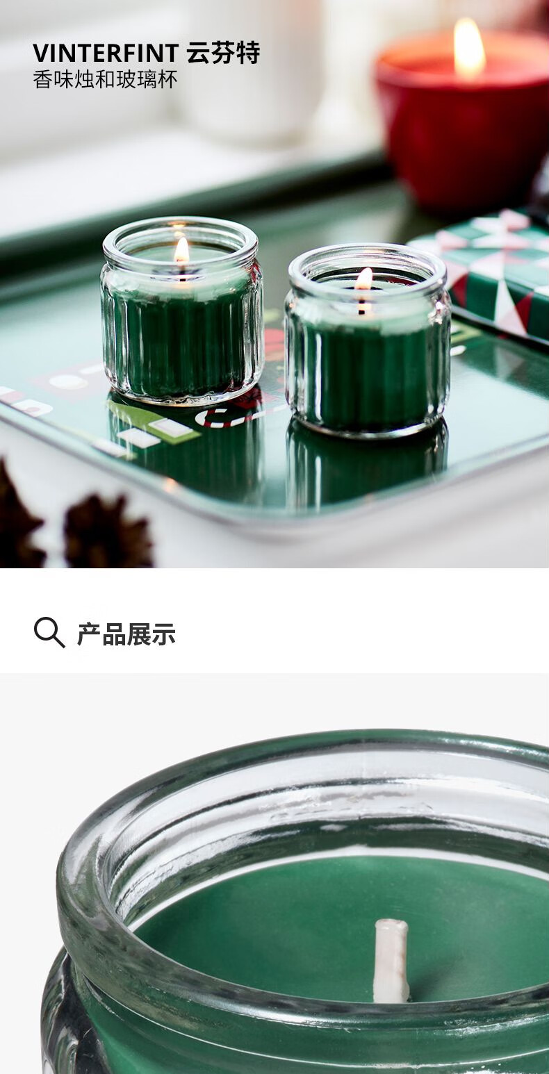 宜家(IKEA)【新品】VINTERFINT云芬特香味烛杯节日派对氛围装饰家用 香味烛和玻璃杯冷杉绿色12h