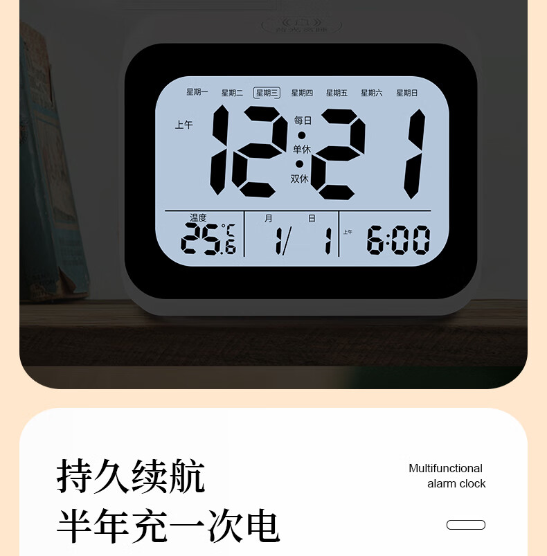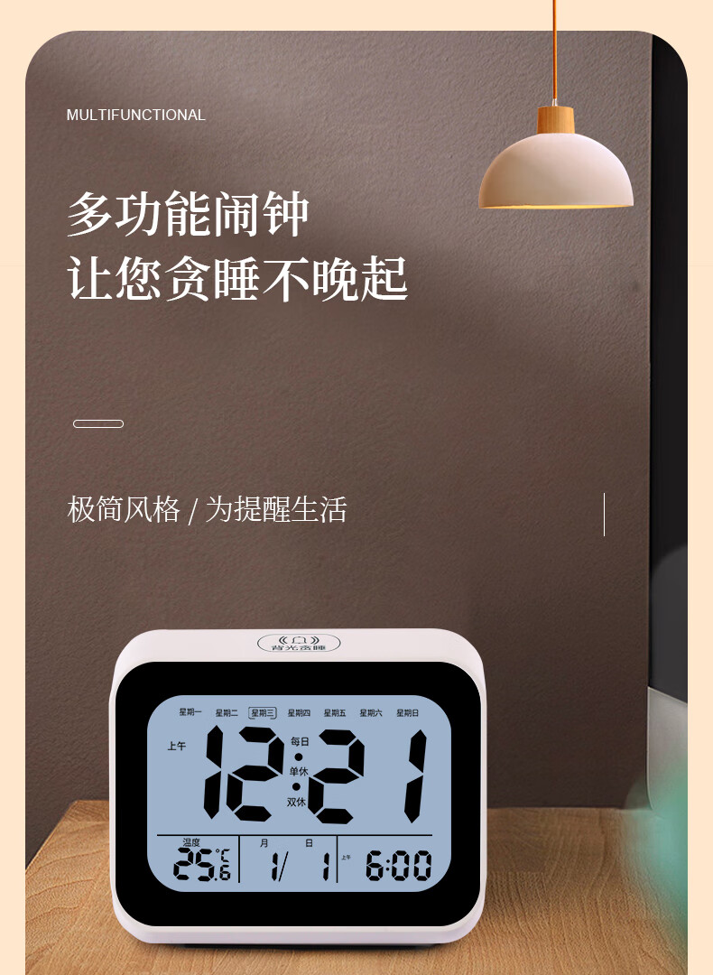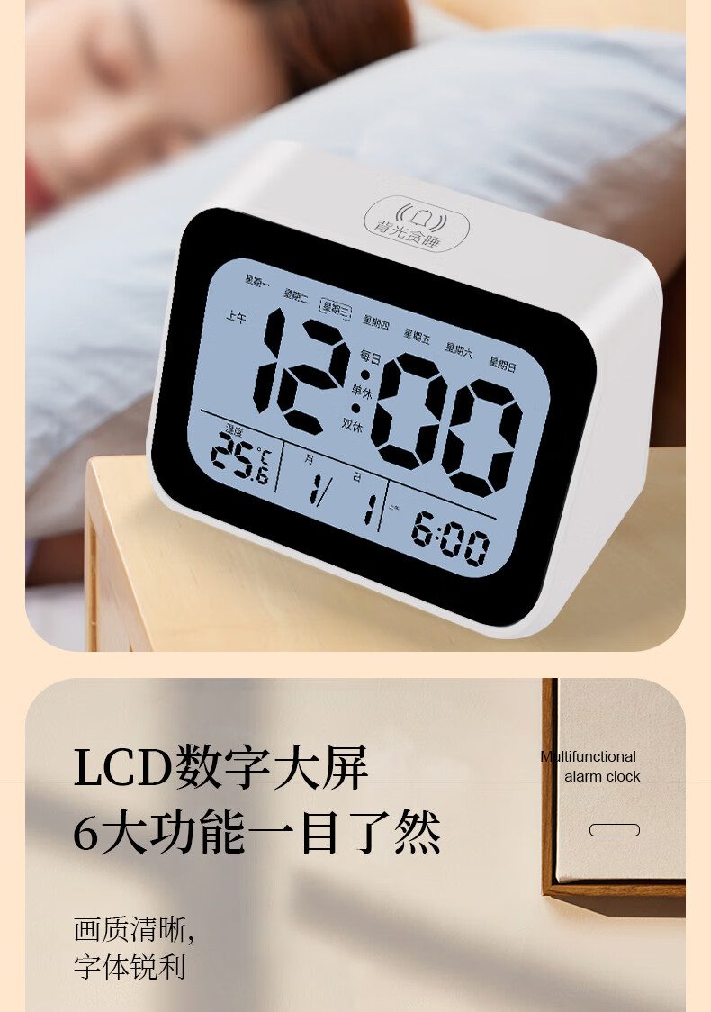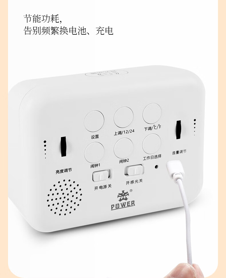 POWER霸王闹钟电子充电儿童卧室智能床头钟开学学生专用起床神器