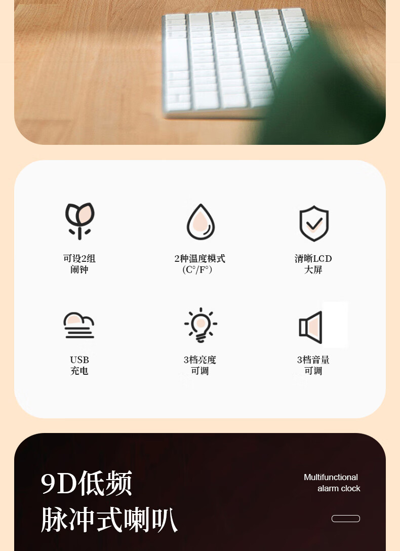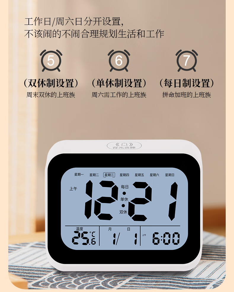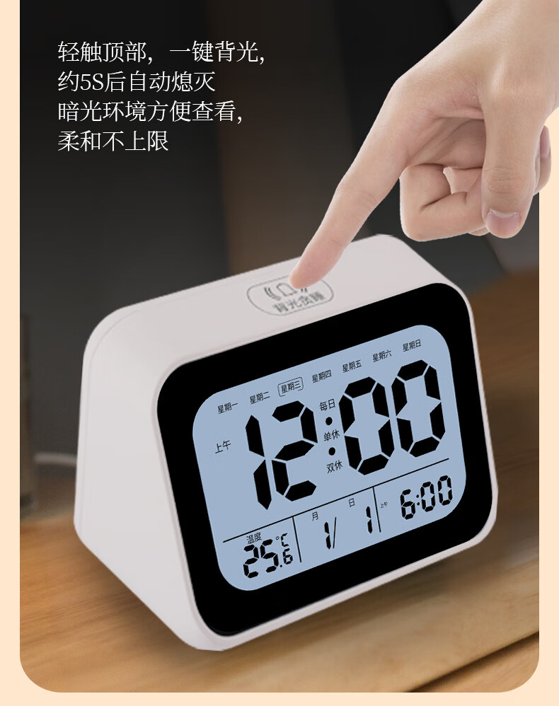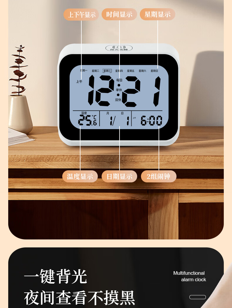 POWER霸王闹钟电子充电儿童卧室智能床头钟开学学生专用起床神器