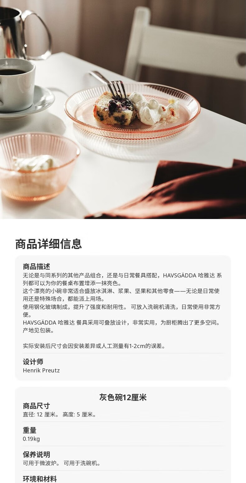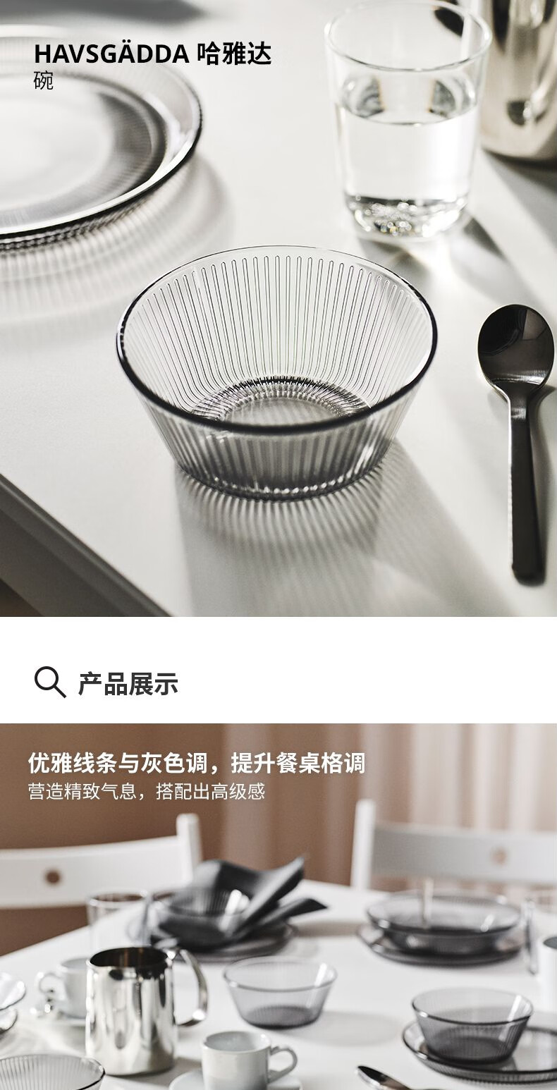 宜家(IKEA)【新品】HAVSGADDA哈雅达玻璃碗玻璃餐具饭碗吃饭碗 灰色碗12cm